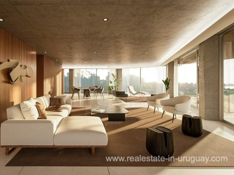 Auf den ersten 5 Etagen befinden sich 3- und 4-Schlafzimmer-Halbgeschosse (alle mit eigenem Bad) mit einer Gesamtfläche von 300 bis 500 m2, und die Etagen 6 und 7 nehmen die gesamte Etage mit einer Fläche von über 600 m2 ein. Zu jeder Einheit gehören auch ein von der Wohnung getrenntes Mehrzweckstudio und 4 Garagen.