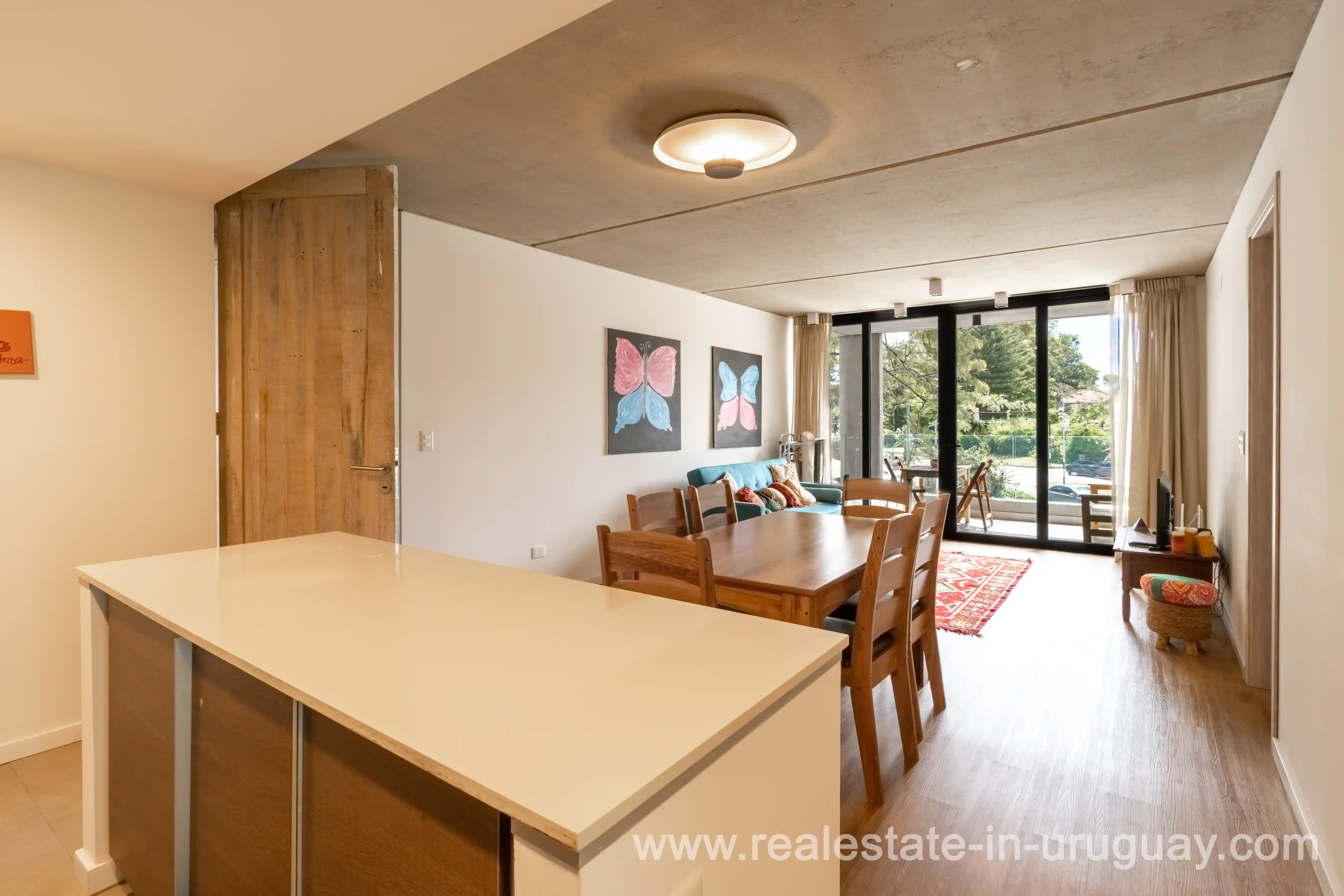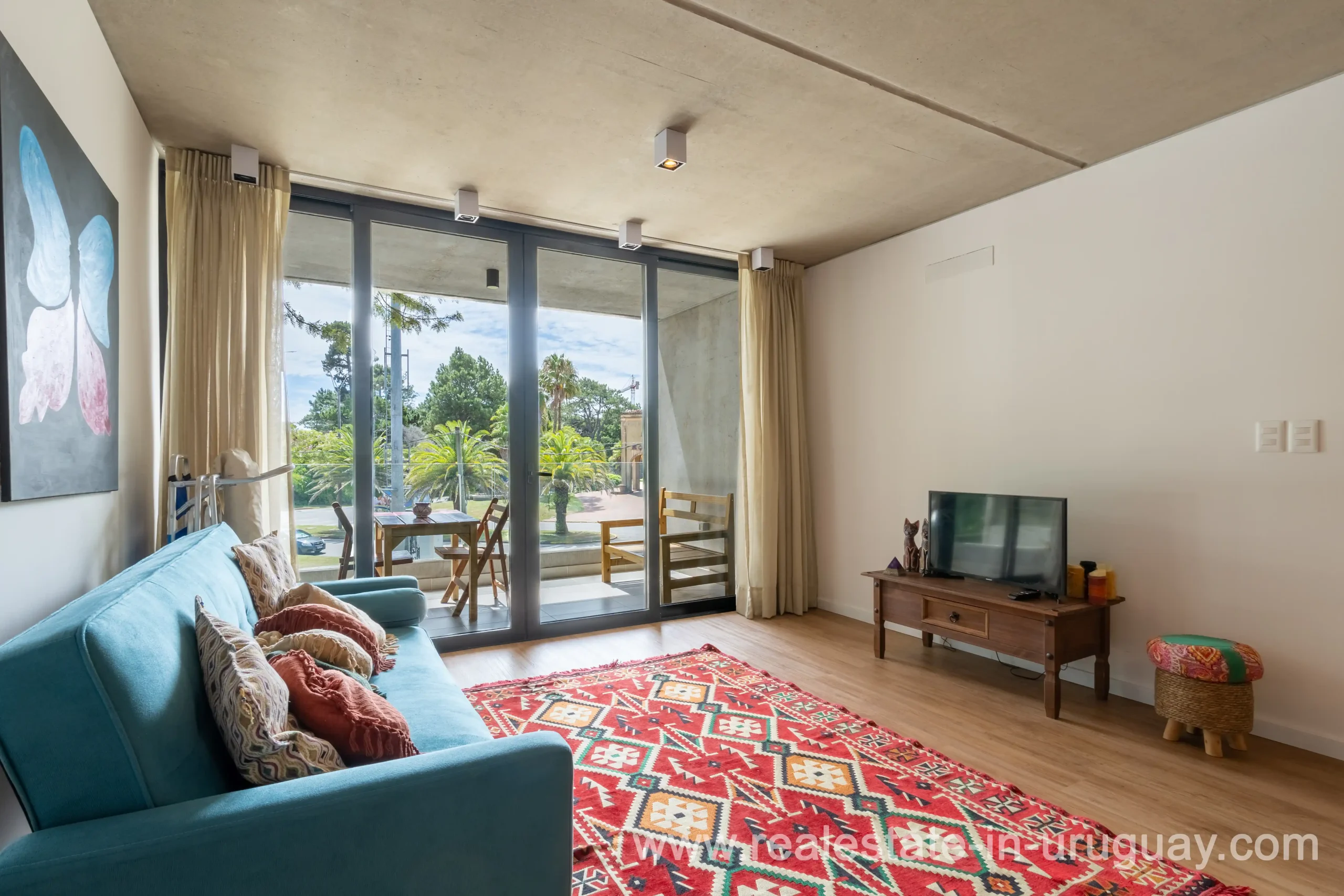 Das Be House in Punta del Este Apartment befindet sich in einem modernen, niedrigen Gebäude an der berühmten gastronomischen Allee „Gourmet Boulevard“ (Av. Pedragosa Sierra). Wohn-Esszimmer mit Zugang zur Terrasse. Zwei-Schlafzimmer-Apartment, eines davon en suite. Zwei vollständige Badezimmer. Küche. Das Gebäude zeichnet sich durch seine grüne Aussicht aus, umgeben von Bäumen und Annehmlichkeiten wie einem Außenpool, beheiztem Pool, Spa und Fitnessraum. Der Preis beinhaltet nicht die 5%ige Unterkunftsgebühr.