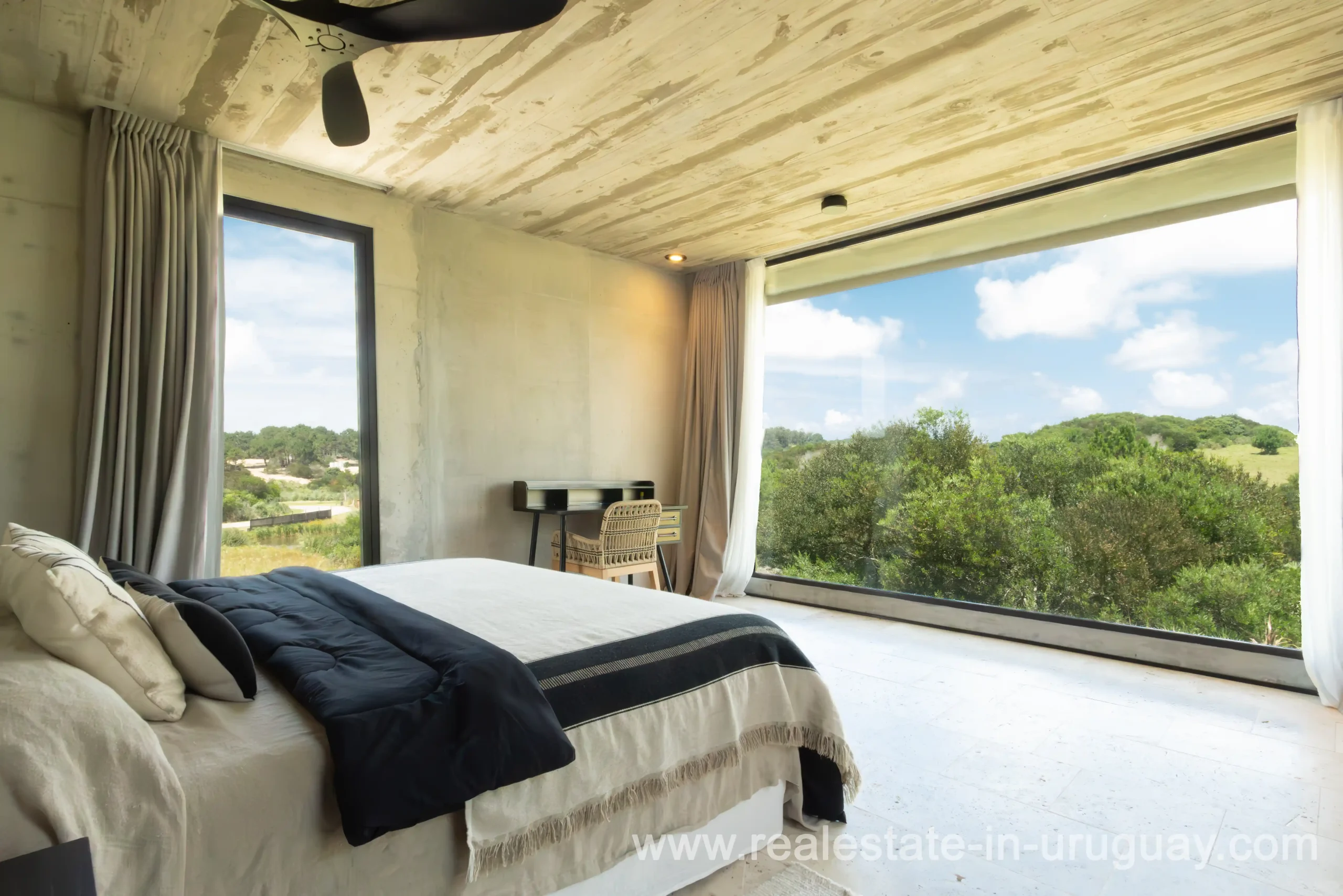 Im rechten Flügel des Hauses befinden sich eine Toilette und zwei Schlafzimmer mit eigenem Bad. Im linken Flügel befinden sich ein Fernsehzimmer und eine Hauptsuite mit begehbarem Kleiderschrank und Badezimmer.