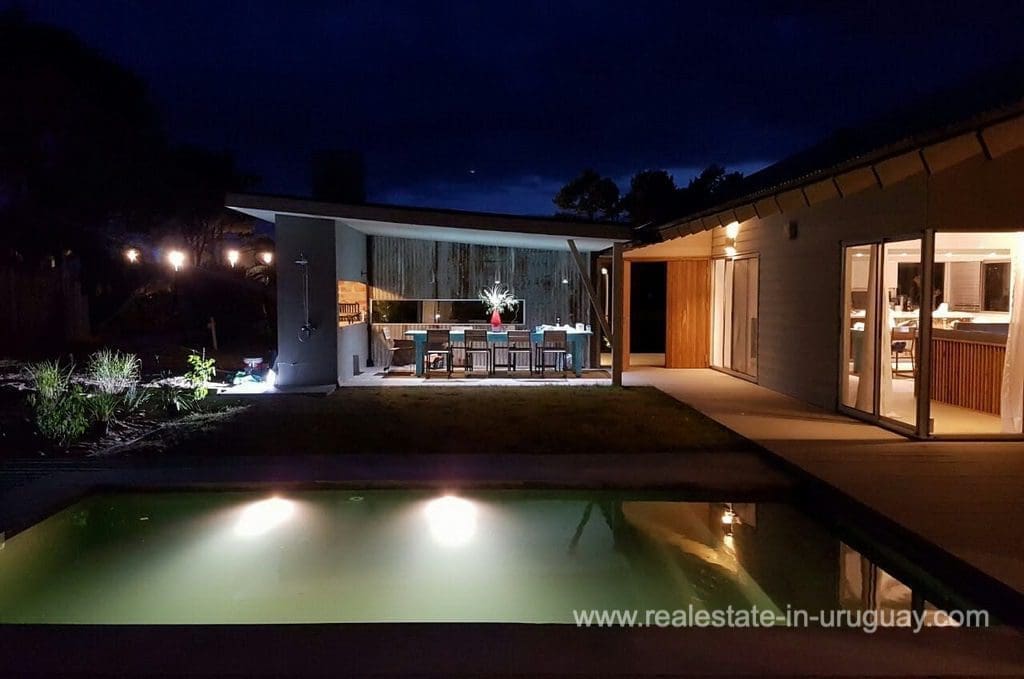 Dieses brandneue einstöckige moderne Haus in Pinar del Faro mit hellem und modernem Design befindet sich in Pinar del Faro am Eingang von Jose Ignacio in einer bewachten Anlage mit Sicherheit und Annehmlichkeiten. Es verfügt über einen unabhängigen Zugang zum Grill- und Poolbereich und einen Eingang zum Haupthaus, das aus einem Wohn-/Esszimmer, einer integrierten Küche und einem WC besteht. Es gibt eine separate Einheit mit Außenzugang und drei Schlafzimmern, von denen eines über ein eigenes Bad verfügt. Eine dritte Einheit besteht aus einer völlig unabhängigen Suite sowie einem angrenzenden Waschraum, einem Swimmingpool mit Terrasse und einer Sonnenterrasse, die die drei Einheiten miteinander verbindet, so dass es sich um ein praktisches und komfortables Anwesen handelt, um den Sommer und die Ferien in José Ignacio zu verbringen. Pinar del Faro ist eine geschlossene Wohnanlage, die bis ins kleinste Detail durchdacht ist, vom allgemeinen Plan, den Straßen, der Infrastruktur und der Einrichtung bis hin zu den alltäglichen Details, die einen magischen und anderen Ort schaffen, wobei Privatsphäre und Lärmschutz berücksichtigt werden. Es wurden drei mit Palmen bepflanzte Plätze angelegt, die zusammen mit einer Uferpromenade, einem Spa, einem Tennisclub, einem Schwimmbad und einer Rezeption, die sich um alle Belange kümmert, wunderschön sein werden.
