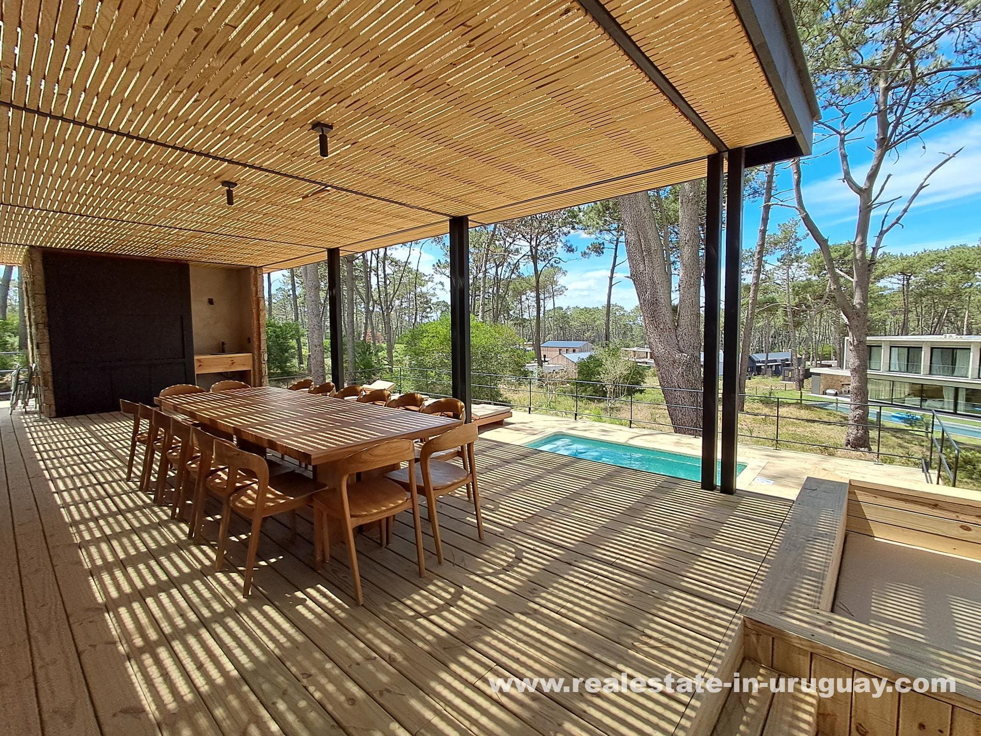Das Untergeschoss bietet vielseitige Räumlichkeiten, die auf Ihre Bedürfnisse zugeschnitten werden können, sei es als zusätzliches Schlafzimmer, Weinkeller, Büro oder Lagerraum. Im Außenbereich verfügt das Anwesen über einen herrlichen Swimmingpool, eine überdachte Galerie mit Grillbereich, einen Essbereich und eine Feuerstelle – ideal für gesellige Zusammenkünfte inmitten der Natur.