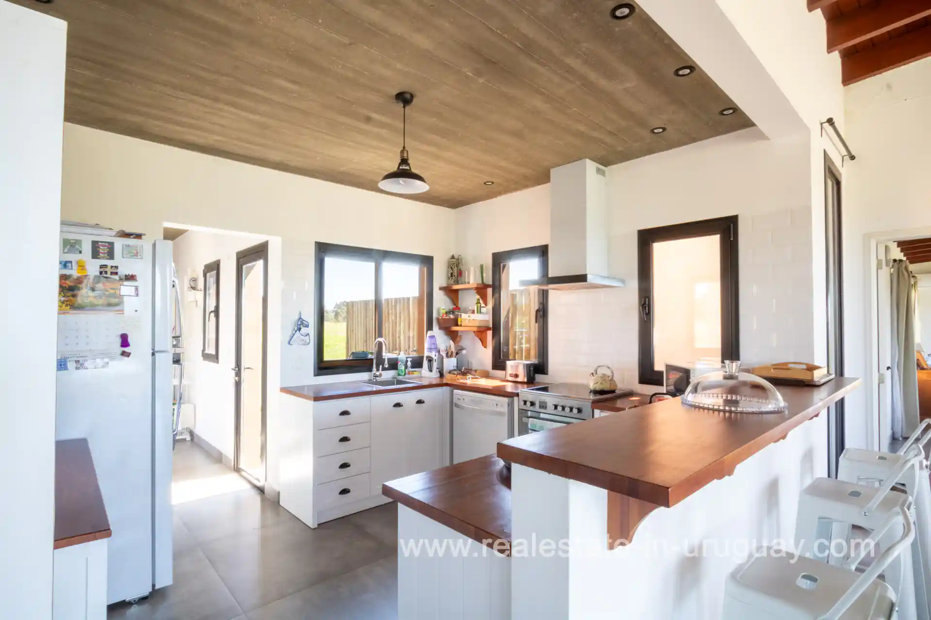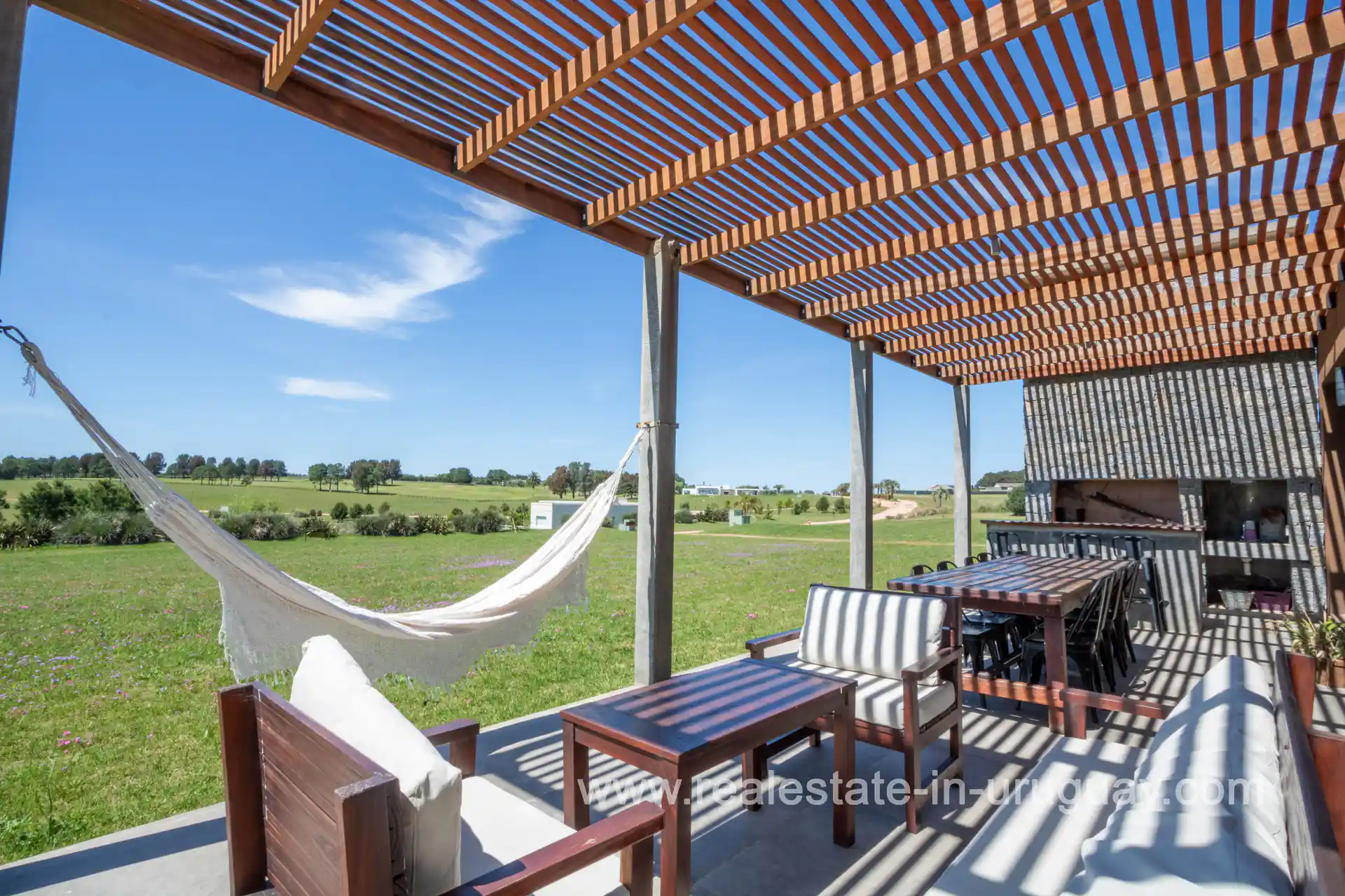 Gelegen im privaten Wohnviertel Pueblo Mio bei Manantiales, zeichnet sich diese Immobilie durch ihren makellosen Zustand und eine bebaute Fläche von 160 m² aus. Sie verfügt über einen geräumigen Wohn- und Essbereich, ausgestattet mit einem Holzofen, einer Garderobe und zwei großen Suiten, wobei die Hauptsuite einen begehbaren Kleiderschrank beinhaltet. Des Weiteren gibt es einen Hauswirtschaftsraum und zwei Garagen. Die Beheizung erfolgt mittels einer Wärmepumpe mit Fußbodenheizung und zentraler Warmwasserversorgung. Die nordwestliche Ausrichtung gewährleistet exzellenten Lichteinfall, was es zu einem idealen Ort für ganzjähriges Wohnen macht. Das Wohnviertel bietet eine breite Palette an Annehmlichkeiten, darunter ein Clubhaus mit Schwimmbad, Reitanlagen, ein Fitnessstudio, Sportplätze und Wassersportmöglichkeiten im Sommer, sowie Mietunterkünfte, die den Hauseigentümern zur Verfügung stehen.