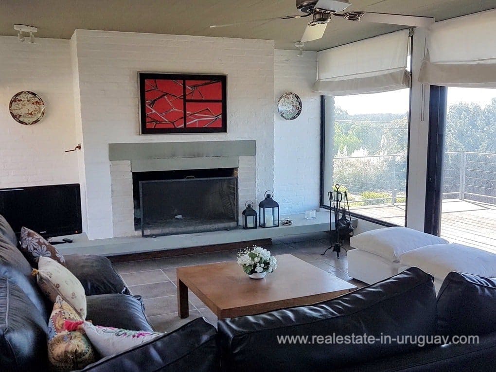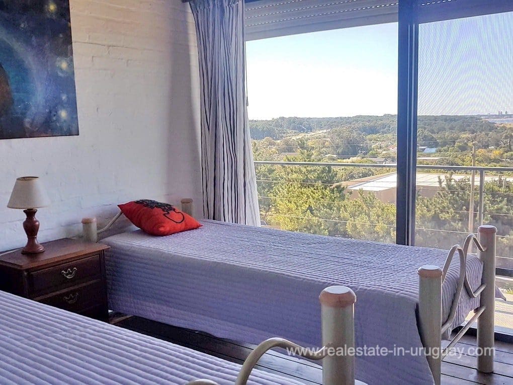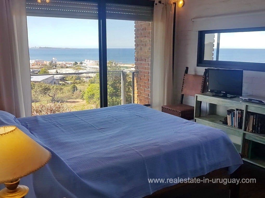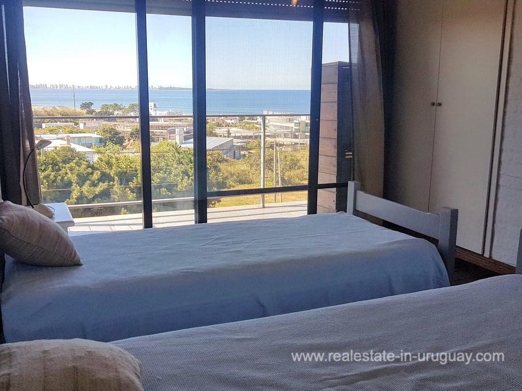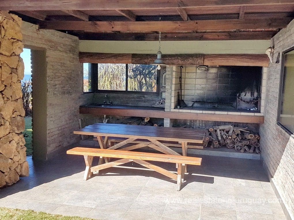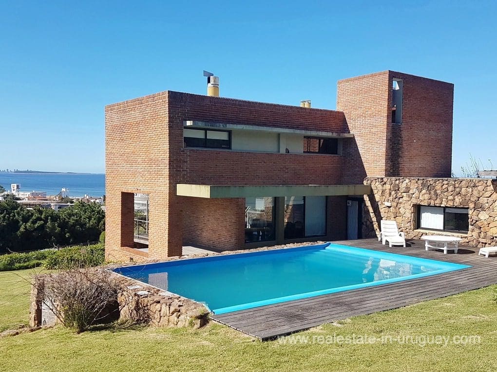 Dieses dreistöckige Haus mit Meerblick in Las Grutas in der Nähe von Punta Ballena wurde von dem Architekten Gómez Platero entworfen und vor 13 Jahren gebaut. Es ist nach Osten ausgerichtet und hat einen Vorgarten und einen Hintergarten. Im Untergeschoss gibt es eine geräumige Garage, einen Abstellraum, ein Personalzimmer mit Bad und einen Zugang über eine Innentreppe zum Erdgeschoss. Im Erdgeschoss gibt es ein WC, eine Küche mit Zugang zu einem Grill, ein geräumiges Wohnzimmer mit Kamin und eine Essecke. In der obersten Etage befinden sich drei Schlafzimmer mit eigenem Bad, die alle Meerblick bieten. Im Garten gibt es auch einen Swimmingpool.