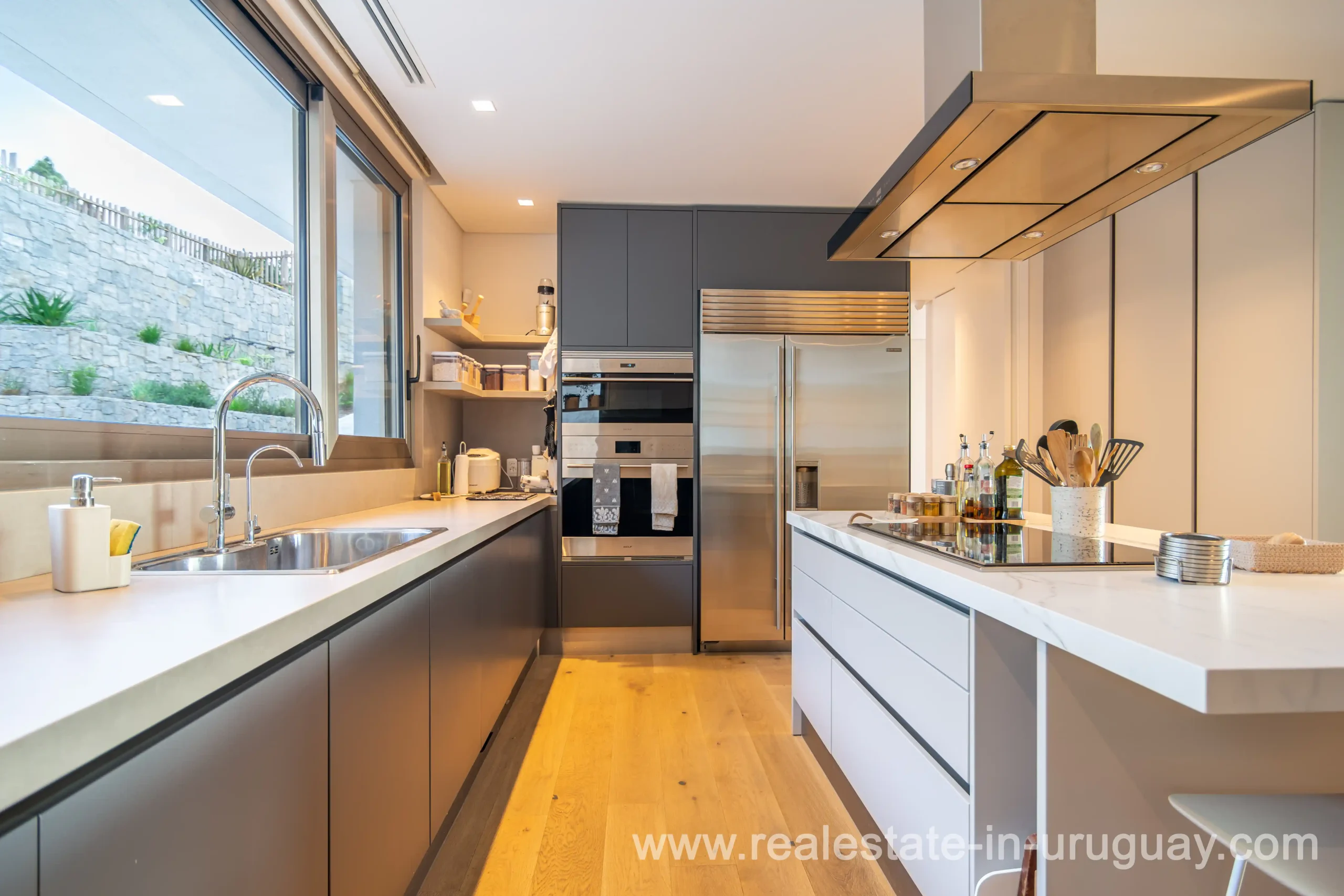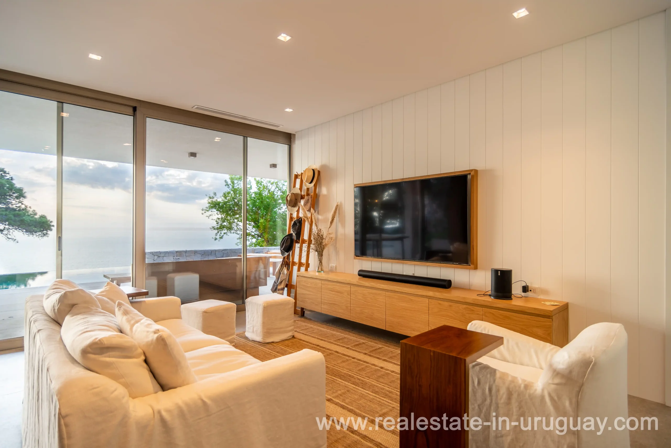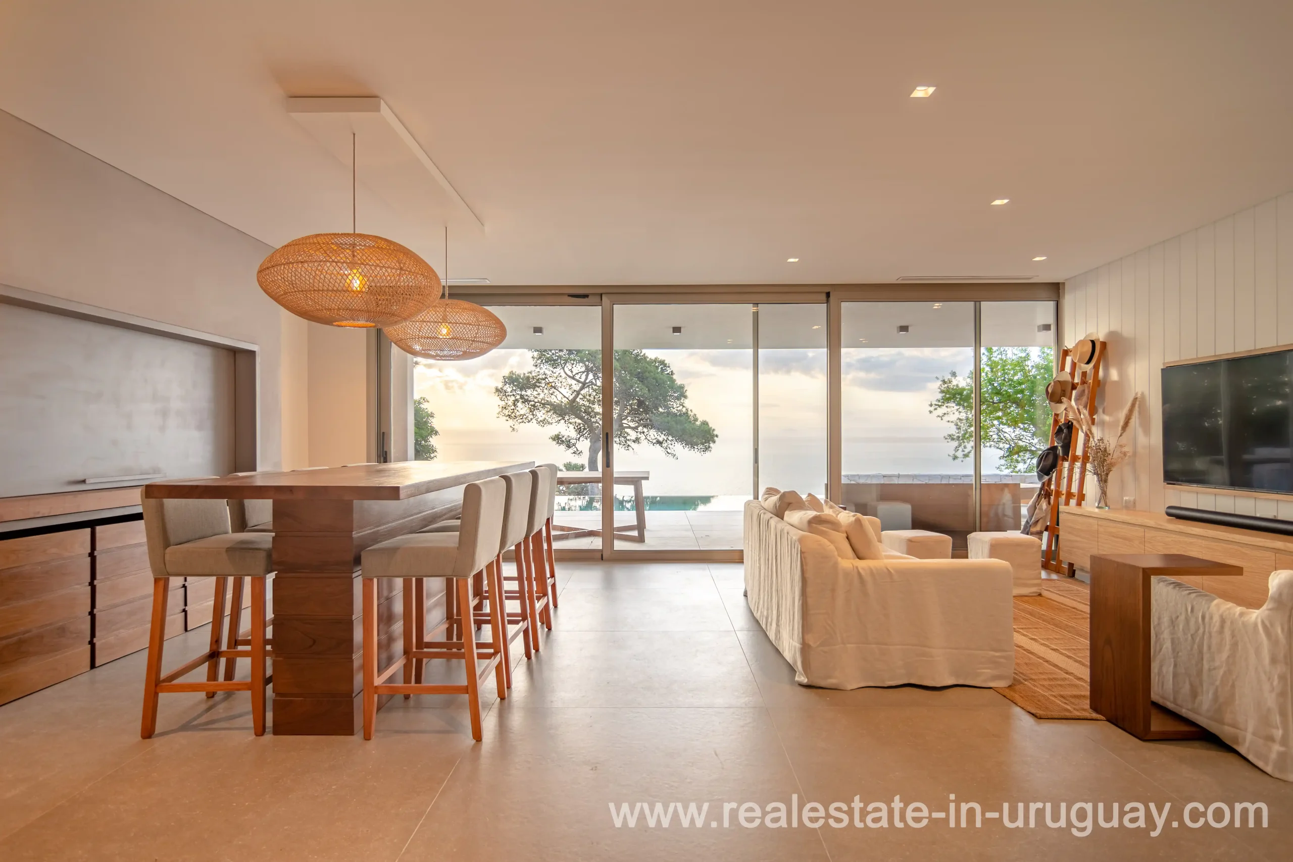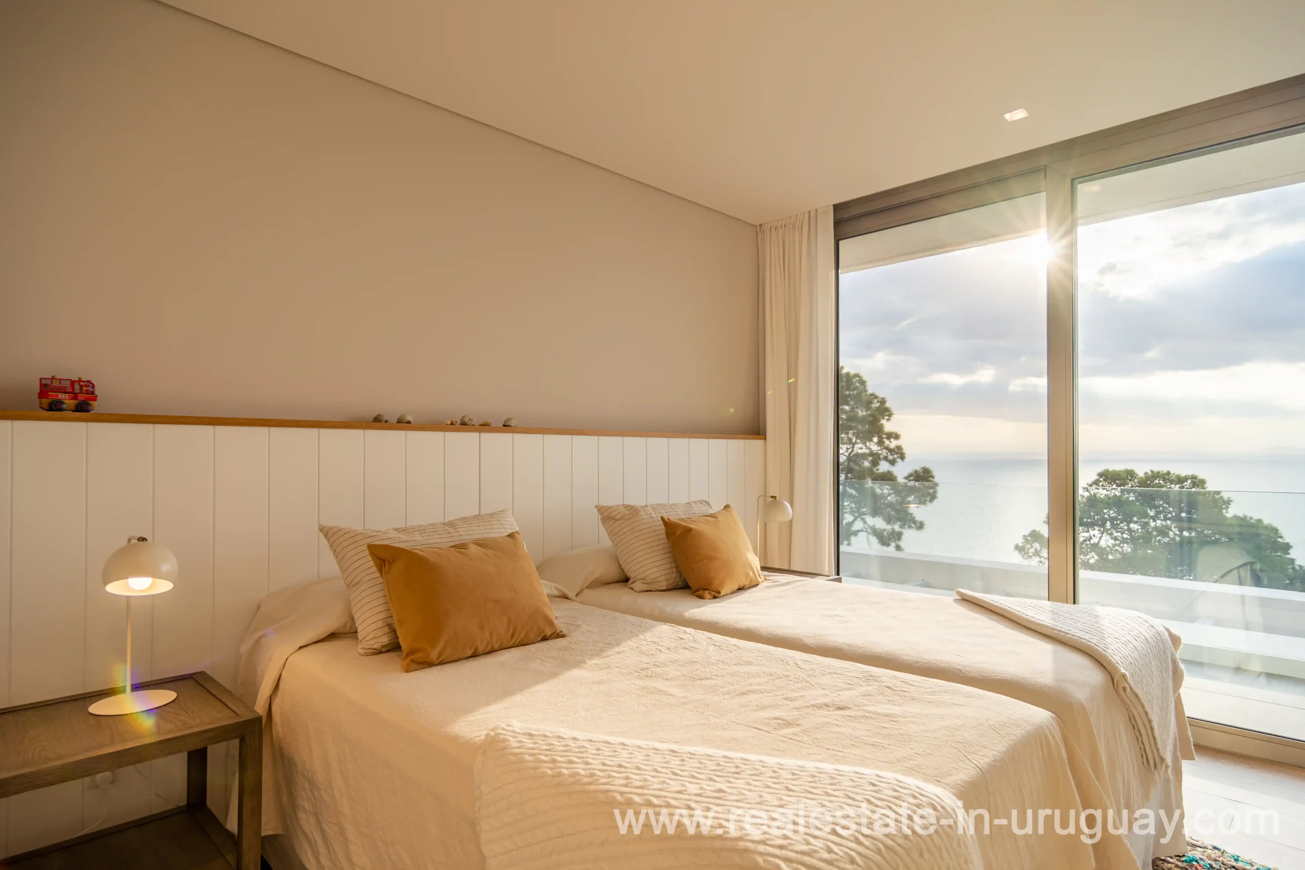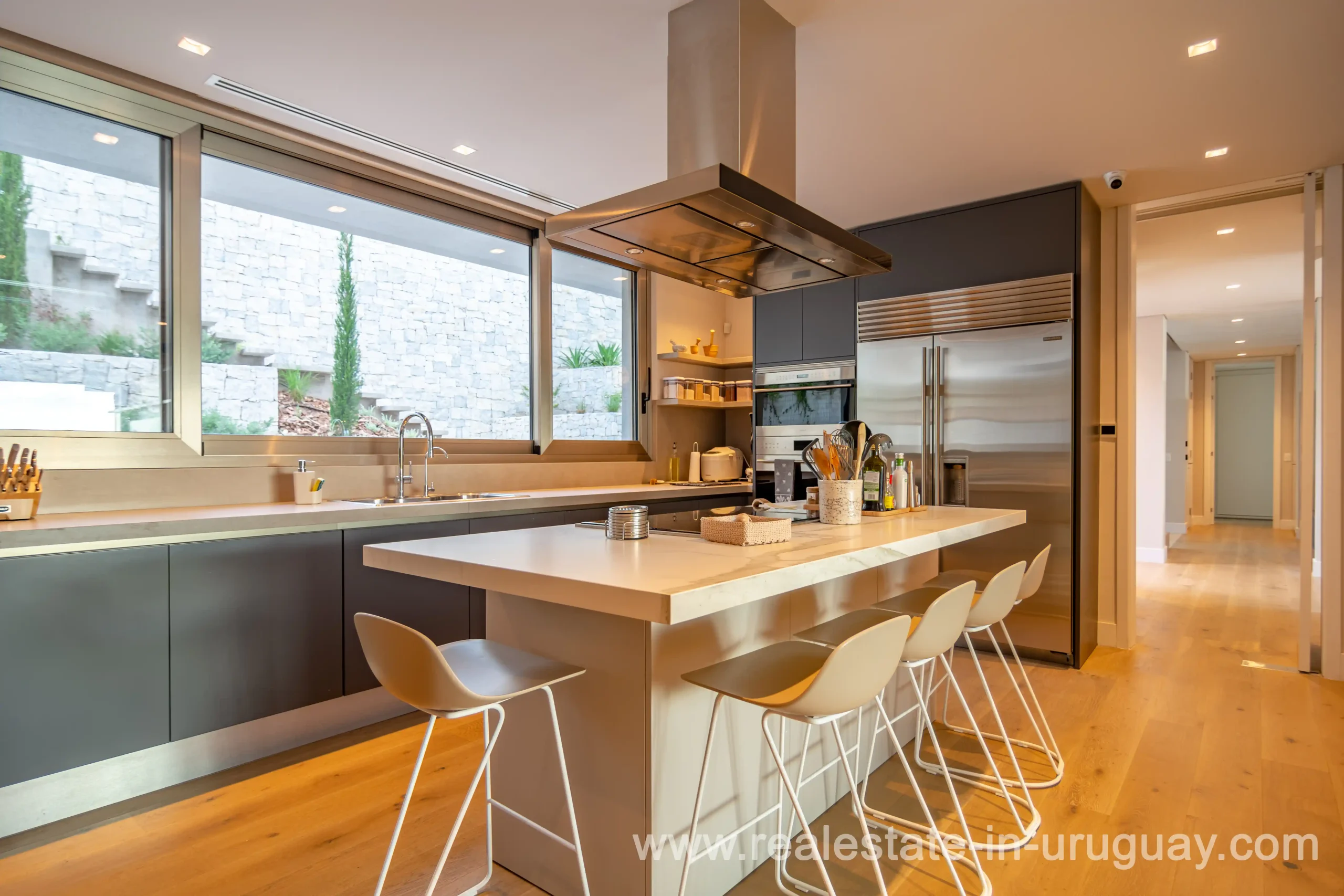 Dieses dreistöckige Haus befindet sich in einer der exklusivsten Gegenden des Landes und bietet atemberaubende Ausblicke auf das Meer, die Hügel und spektakuläre Sonnenuntergänge. Es verfügt über einen privaten Meerzugang über einen Steg. Die Residenz umfasst vier Schlafzimmer mit eigenem Bad und hervorragendem Meerblick. Im Erdgeschoss befinden sich ein Fitnessraum mit Bad und Personalunterkünfte sowie ein großzügiger Außenbereich mit einem großen Grill, einem Ofen, einer hohen Bar und Sitzgelegenheiten. Von hier aus gelangen Sie auf eine Außenterrasse mit beheiztem Pool und Liegebereich. Im ersten Stock befindet sich eine große, voll ausgestattete Küche, die mit einer Lounge und einem Wohn-Esszimmer mit Panoramablick auf das Meer und einem Balkon verbunden ist. Ein Schlafzimmer mit eigenem Bad und privater Terrasse befindet sich ebenfalls auf dieser Ebene. Im Obergeschoss befinden sich drei weitere Schlafzimmer mit eigenem Bad, darunter eine Master-Suite mit einem geräumigen Ankleidezimmer, einem luxuriösen Badezimmer und einem privaten Balkon zum Entspannen. Die Immobilie verfügt über einen Aufzug, Personal für Reinigung und Sicherheit, was den Bewohnern Komfort und Schutz bietet.