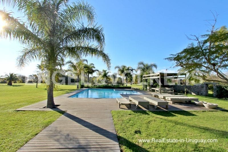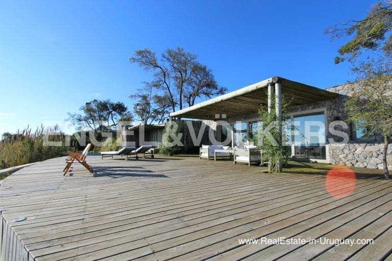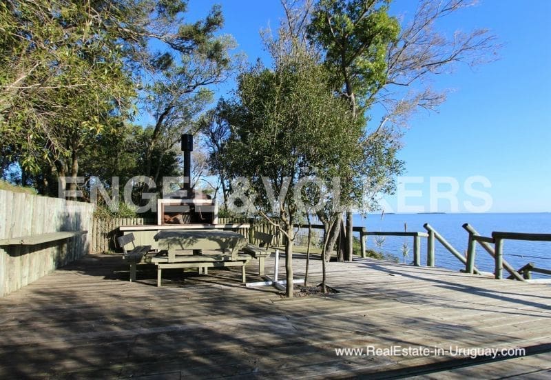 Dieses gut gebaute Anwesen am Wasser in Colonia del Sacramento Uruguay ist ein funkelndes Juwel in der abgeschiedenen Landschaft Uruguays. Auf 2 Hektar direkt am Fluss Plate gelegen, ist dieses Haus von außergewöhnlichem südamerikanischem Charme. Das aus Stein, Zement und klassischem, aber modernem Design errichtete Haus verfügt über 5 Schlafzimmer, 5 Badezimmer, von denen 3 en-suite sind, und eine Küche, die mit modernsten Geräten ausgestattet ist. Ein geräumiges Wohnzimmer bietet einen fantastischen Blick auf den Fluss und kann im Sommer in einen luftigen „Wohlfühlort“ verwandelt werden. Das Hauptschlafzimmer bietet Privatsphäre mit 2 begehbaren Schränken und 2 Bädern. Verschiedene Terrassen laden zum Entspannen ein, egal ob Sie Sonne oder Schatten suchen. Das große Grundstück umfasst einen Swimmingpool und einen schönen Garten mit Zugang zu einer Terrasse von 400m2 und einem separaten Gästebungalow mit Wohnzimmer, Küche, Schlafzimmer und Bad und Grill mit Blick auf den privaten Strand. Dieses Herrenhaus zeichnet sich durch seine Lage, sein Design und seinen Charakter aus.