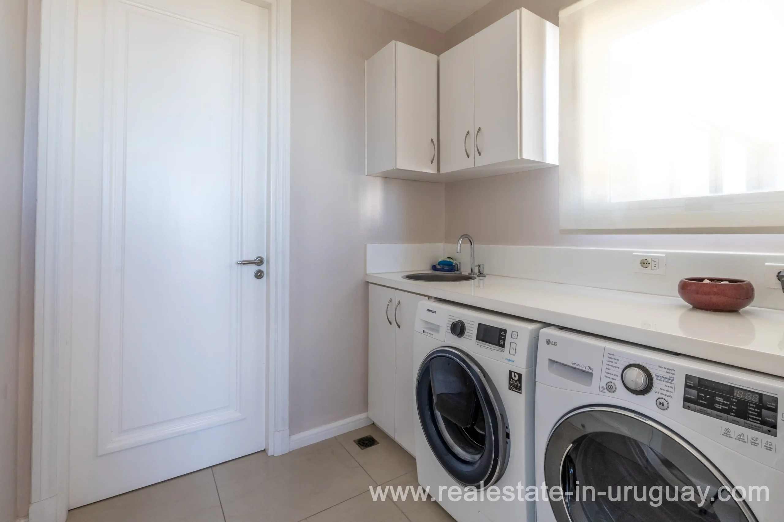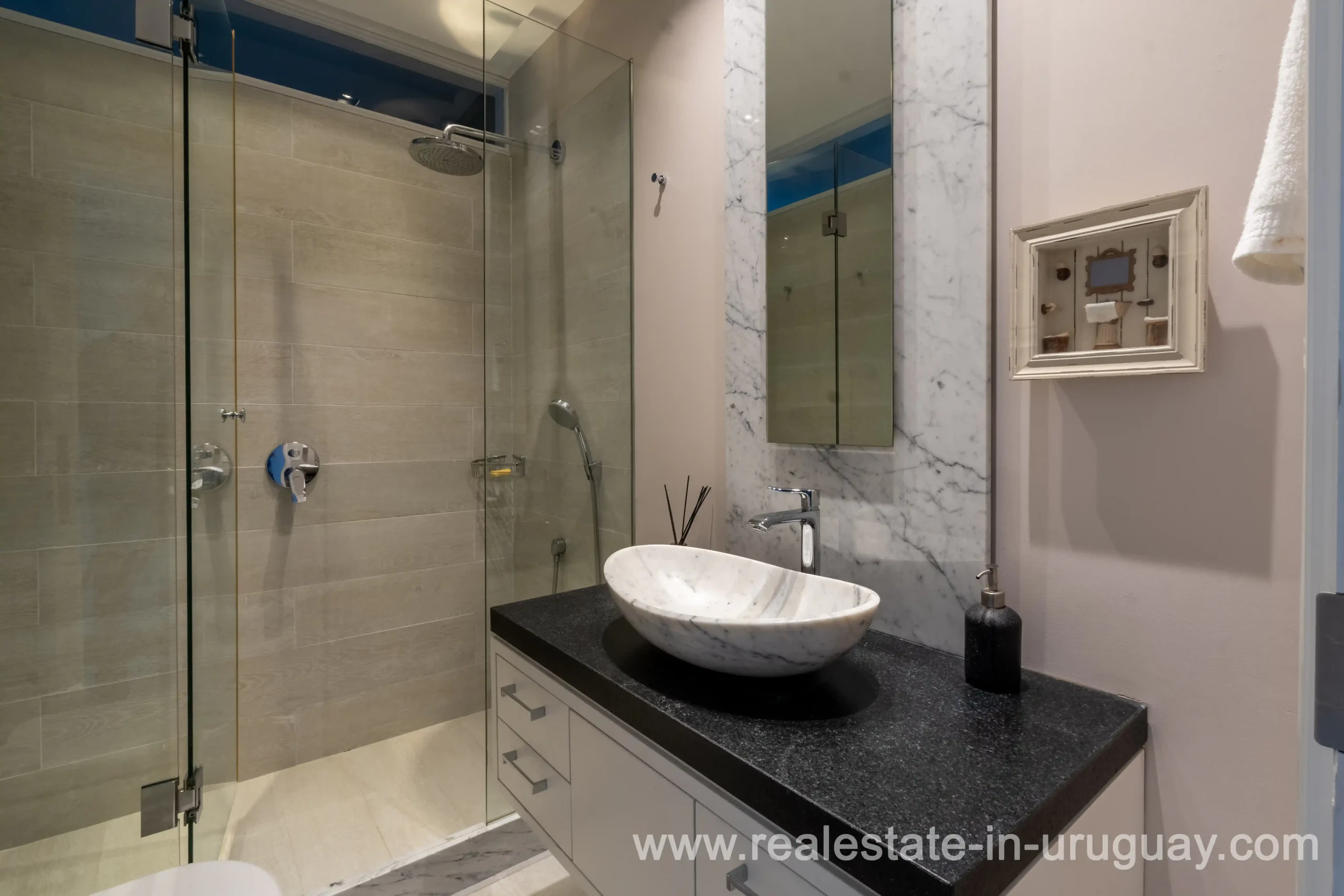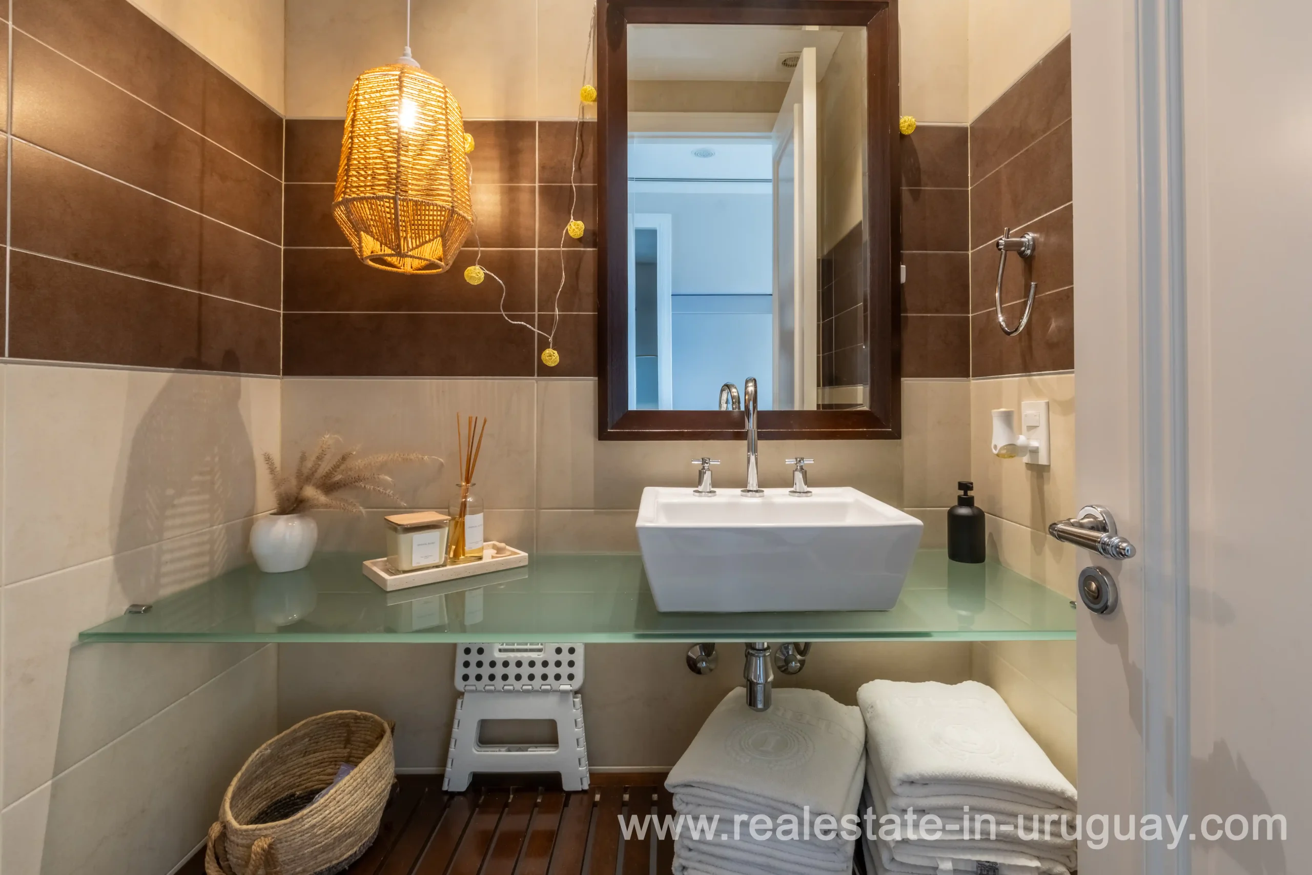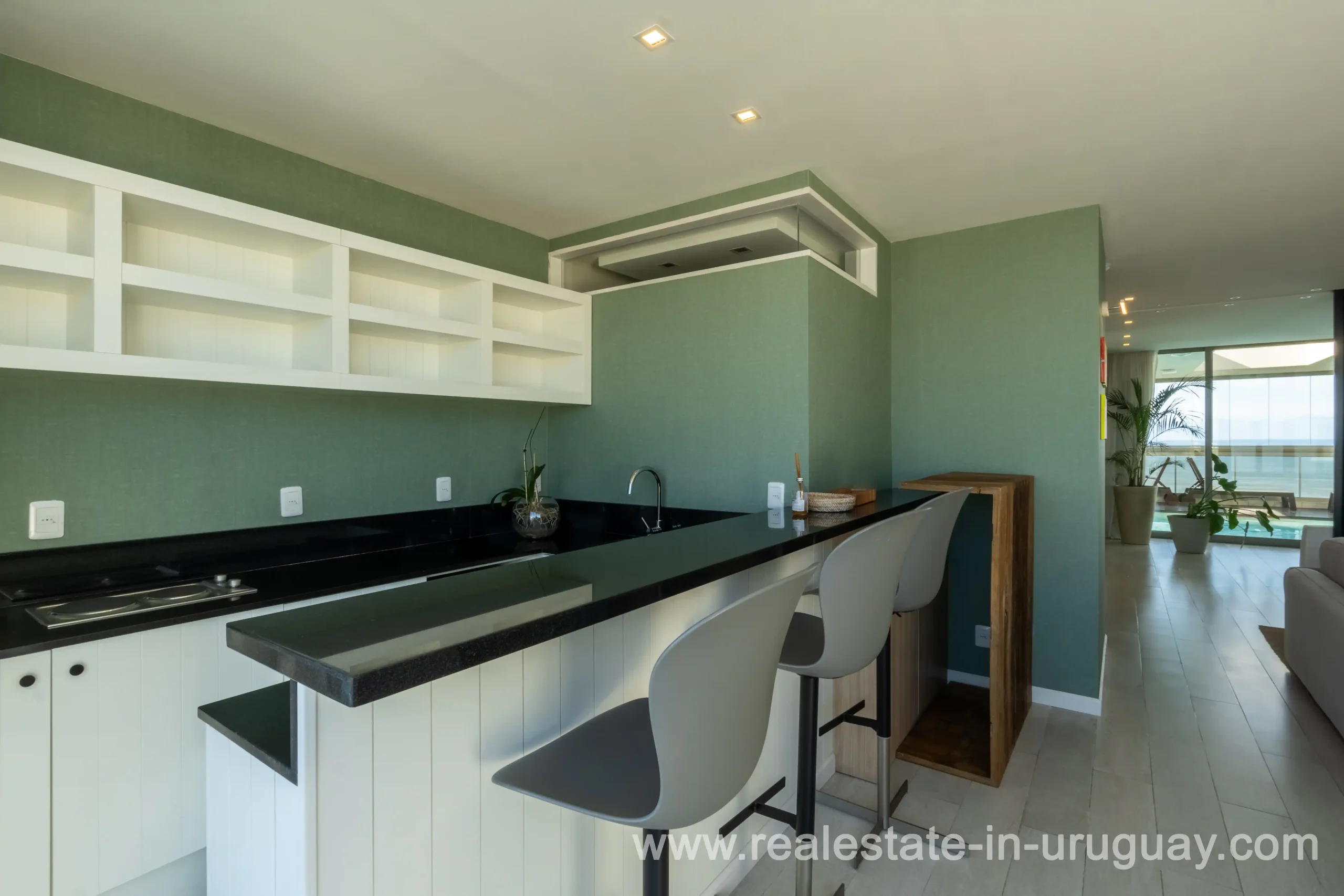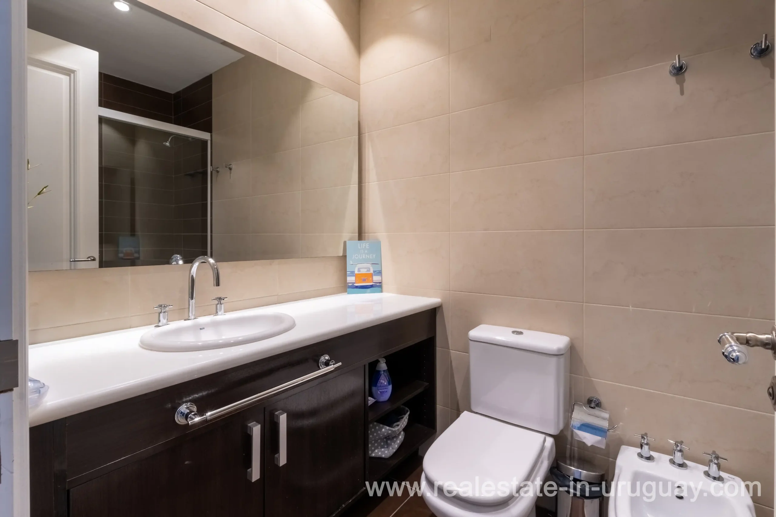 Dieses luxuriöse Duplex-Penthouse in der Nähe der Halbinsel in Punta Del Este liegt gegenüber der Playa Brava und bietet Meerblick sowie eine sehr gute Anbindung an alle Annehmlichkeiten, die Punta del Este zu bieten hat. Die spektakuläre Penthouse-Wohnung ist ideal für den Urlaub oder zum ganzjährigen Wohnen. Es besteht aus zwei Stockwerken und verfügt über großzügige Terrassen und einen großen privaten Swimmingpool. Auf der Hauptzugangsebene befinden sich ein helles Wohn-/Esszimmer mit einem vorderen Balkon, fünf Schlafzimmer mit eigenem Bad, ein Aufenthaltsraum, eine große Hauptküche, ein Gästebad, eine komplette Personalunterkunft und ein Hauswirtschaftsraum. Im Obergeschoss befinden sich ein großer, geschlossener Grill, eine zweite Küche, ein komplettes Badezimmer, ein Spielzimmer und eine geräumige Außenterrasse mit einem Swimmingpool und einem atemberaubenden Meerblick. Alle Zimmer sind mit Fußbodenheizung und Klimaanlage ausgestattet. Die Wohnung verfügt über fünf geschlossene Parkplätze und Abstellräume. Darüber hinaus bietet das Gebäude alle Arten von Dienstleistungen, darunter ein Freibad, ein beheiztes Hallenbad, einen Whirlpool, einen Fitnessraum mit modernsten Geräten, eine Sauna, gemeinschaftliche Spielbereiche für Jugendliche und Kinder, einen Kinosaal, ein Business Center, einen Tennisplatz, einen Mehrzweck-Synthetik-Sportplatz (Fußball, Volleyball und Basketball), drei Grills, die einzeln oder gemeinsam genutzt werden können, einen Friseursalon, ein Solarium, einen täglichen Zimmerservice, einen Wäscheservice und einen Strandservice.
