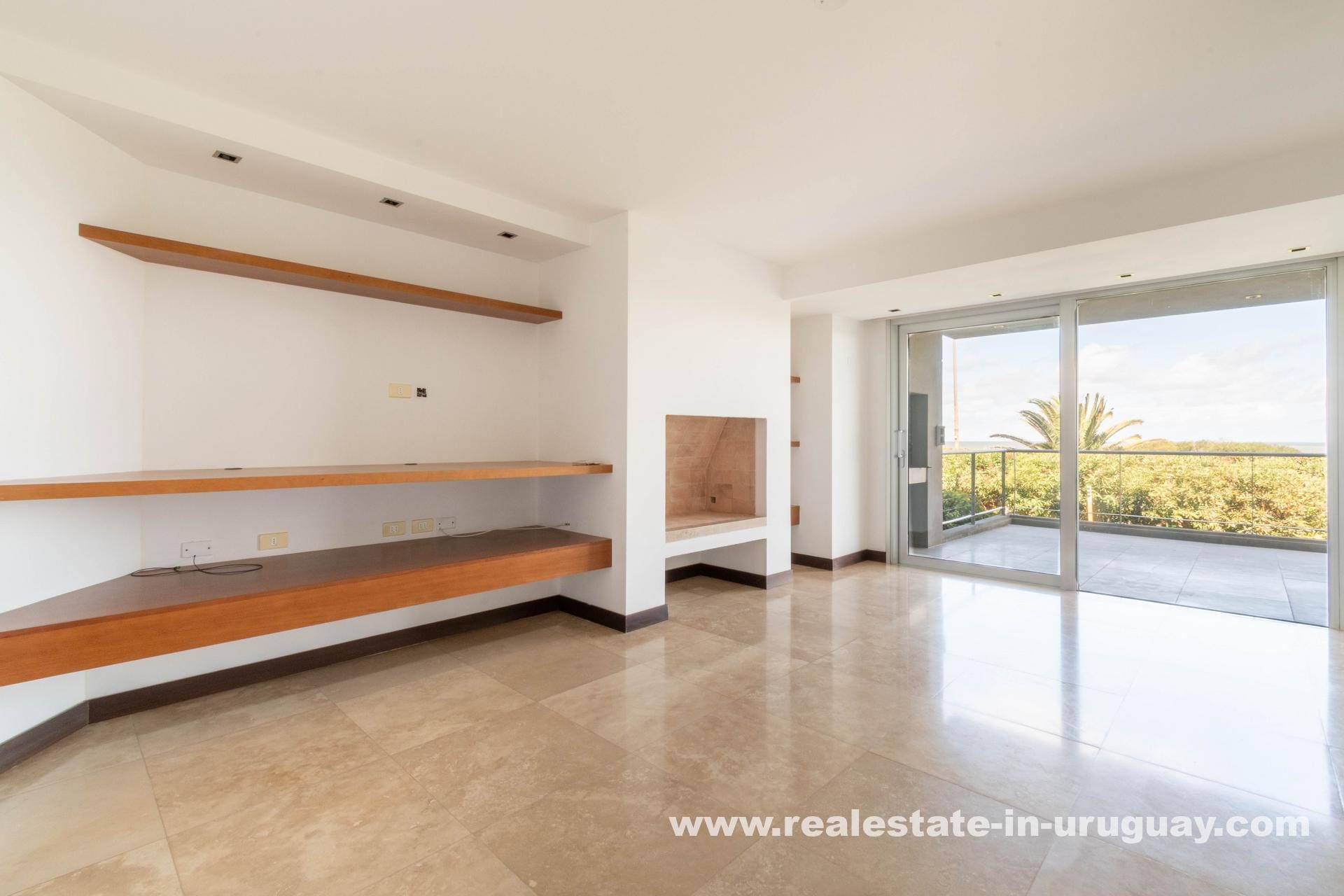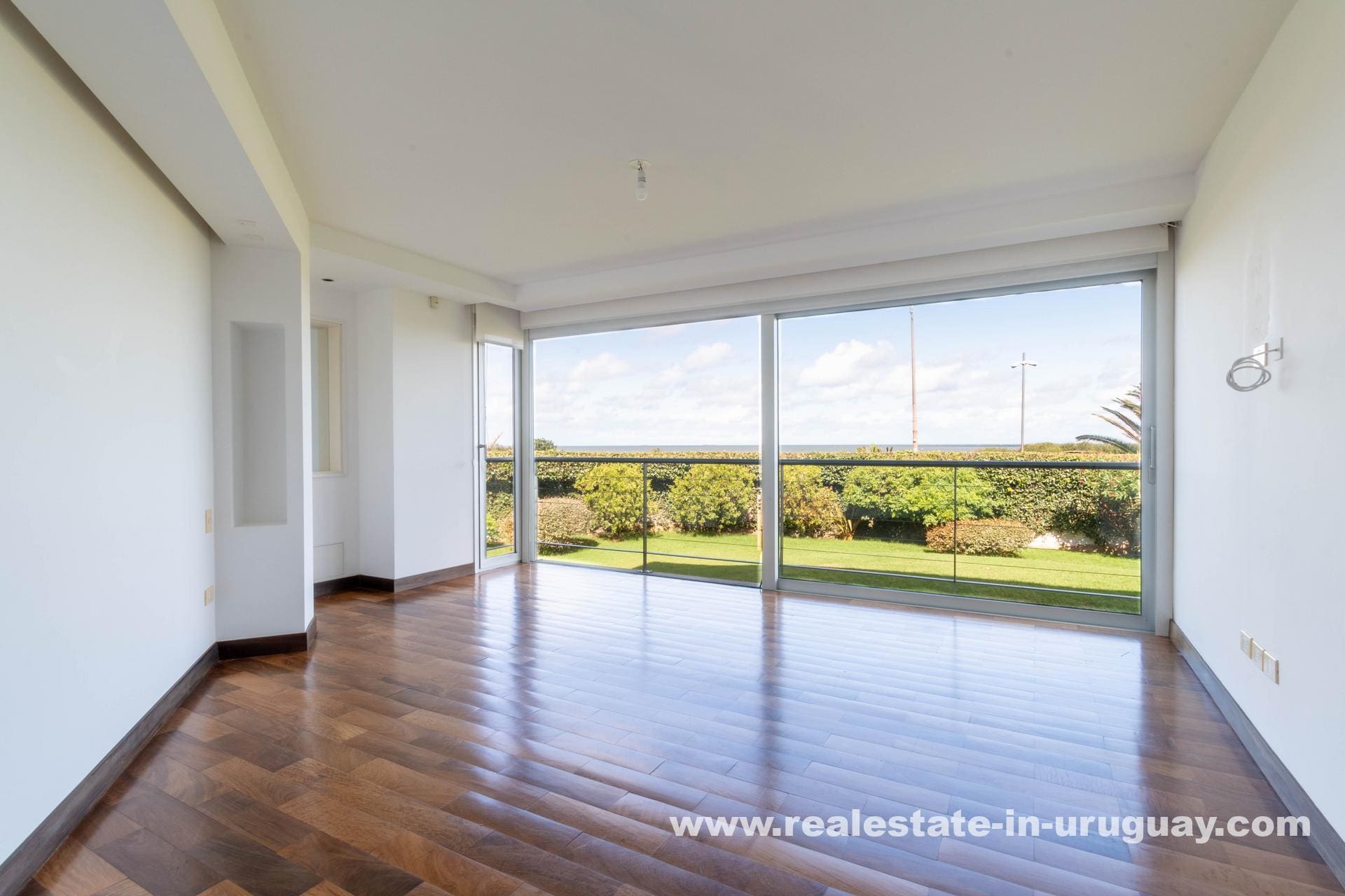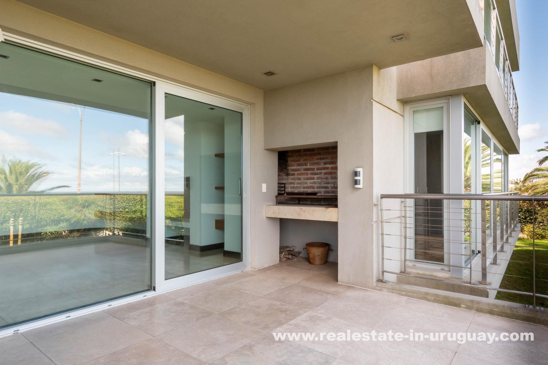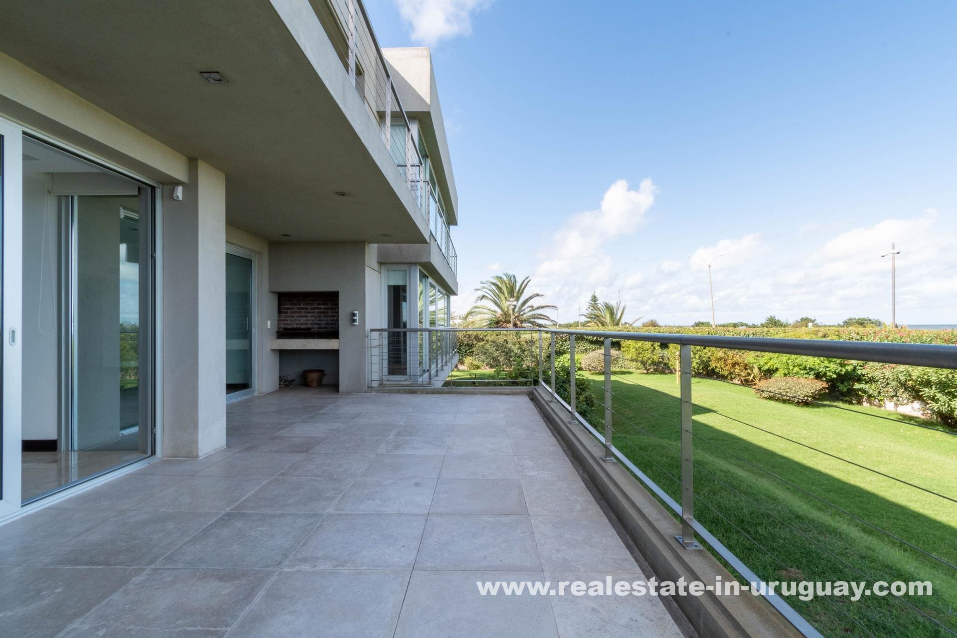 Erleben Sie den Inbegriff zeitgenössischen Luxus mit diesem exquisiten modernen Apartment an der prestigeträchtigen Rambla de Carrasco. Dieses exklusive Gebäude im minimalistischen Stil bietet einen unvergleichlichen Blick auf das Meer. Beim Betreten empfängt Sie ein eleganter Flur, der zu einem geräumigen Wohnzimmer mit atemberaubendem Meerblick und Zugang zu einer komfortablen Terrasse führt. Die Immobilie verfügt über ein Familienzimmer mit Holzofen und Zugang zu einer zweiten Terrasse, die mit einem Grill und einem privaten Garten ausgestattet ist.