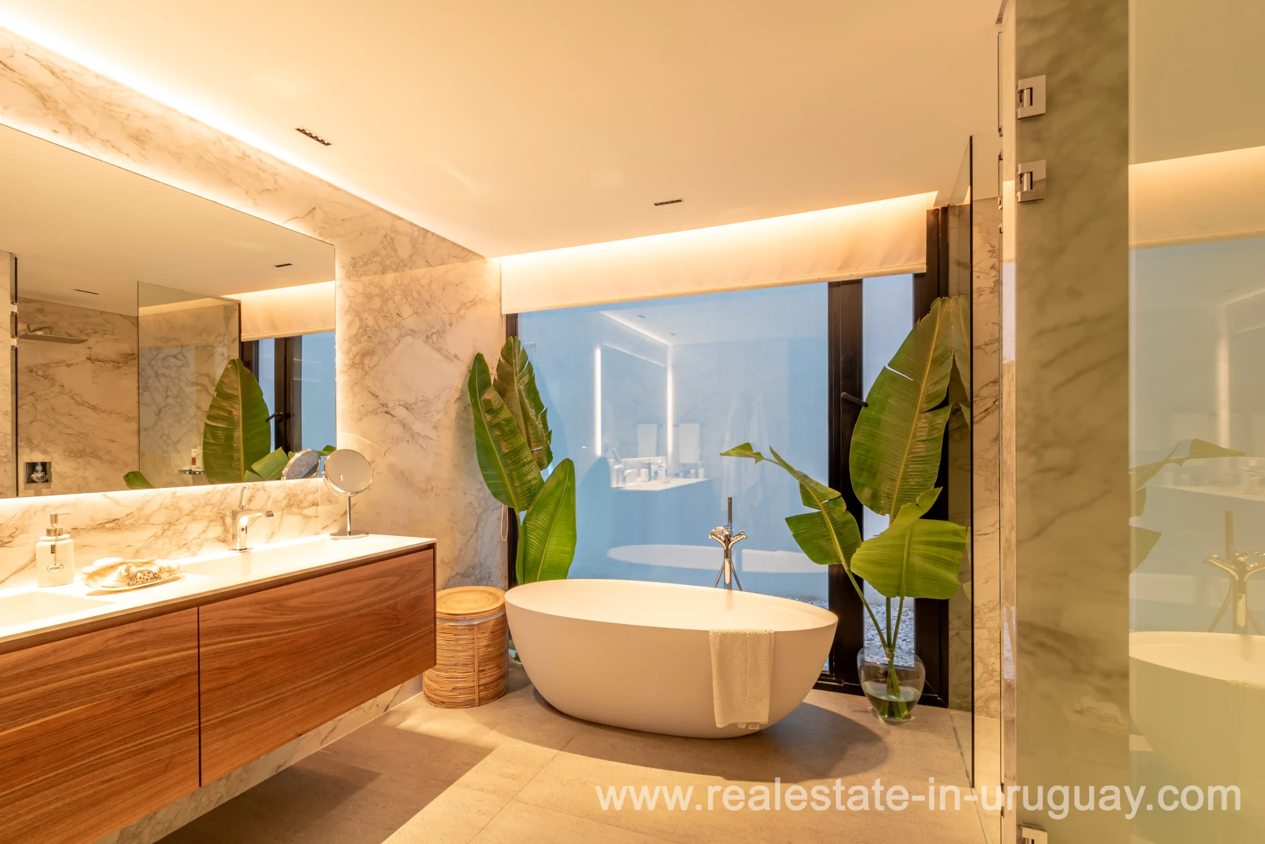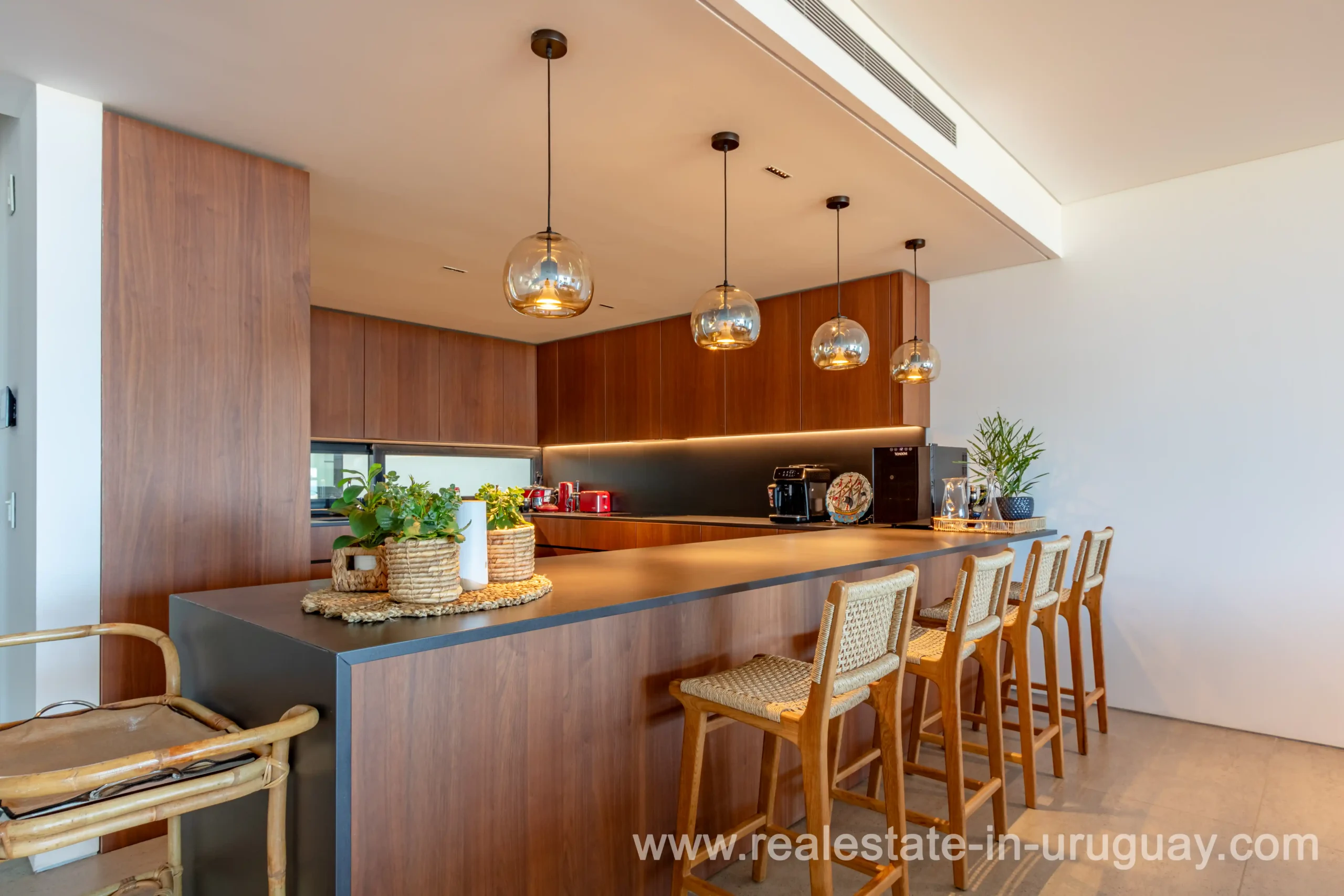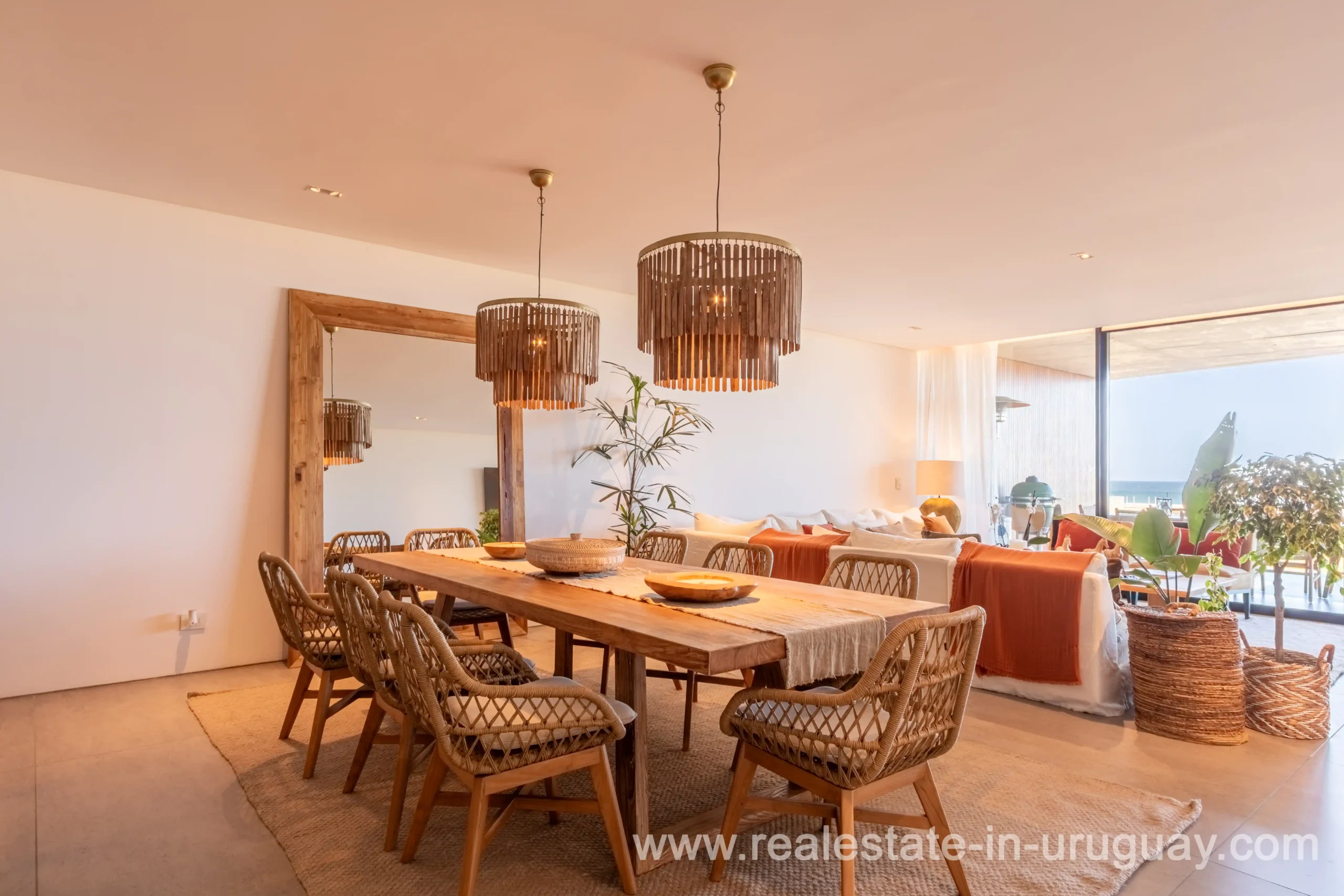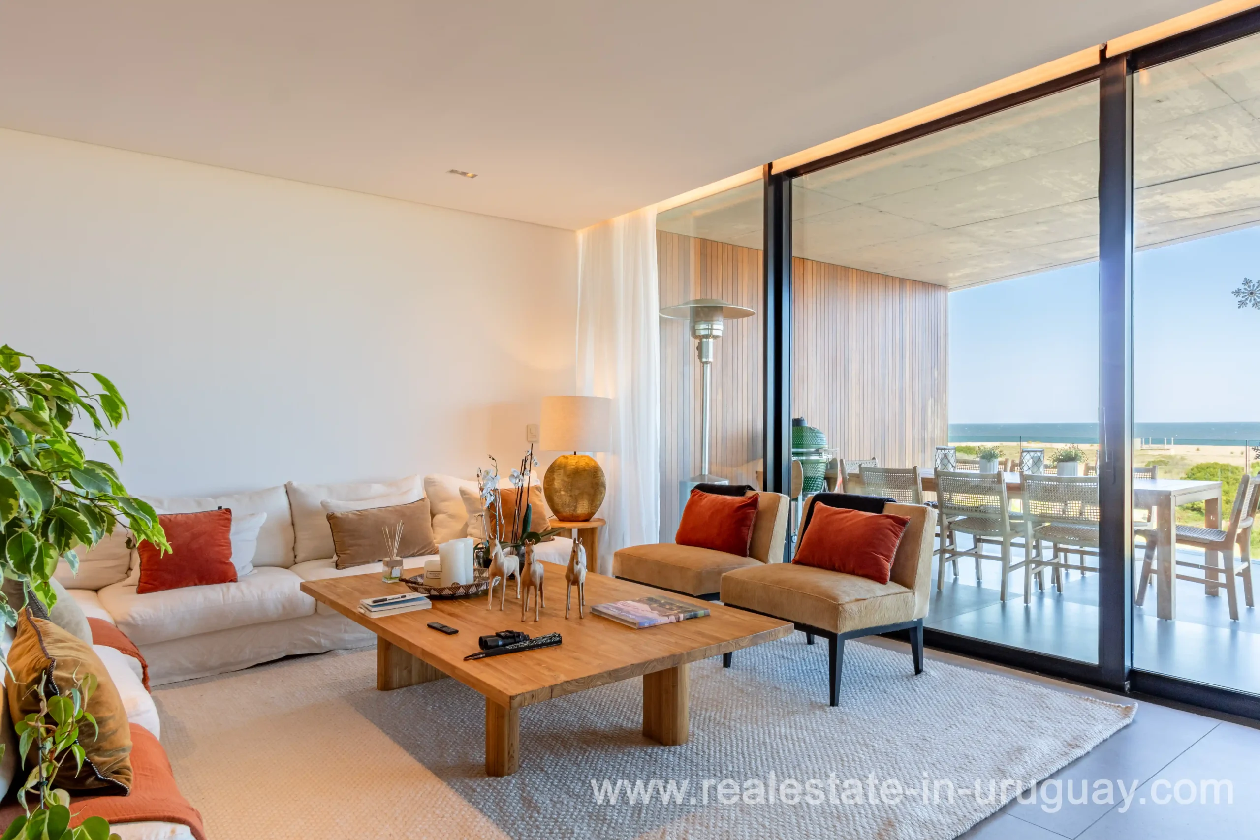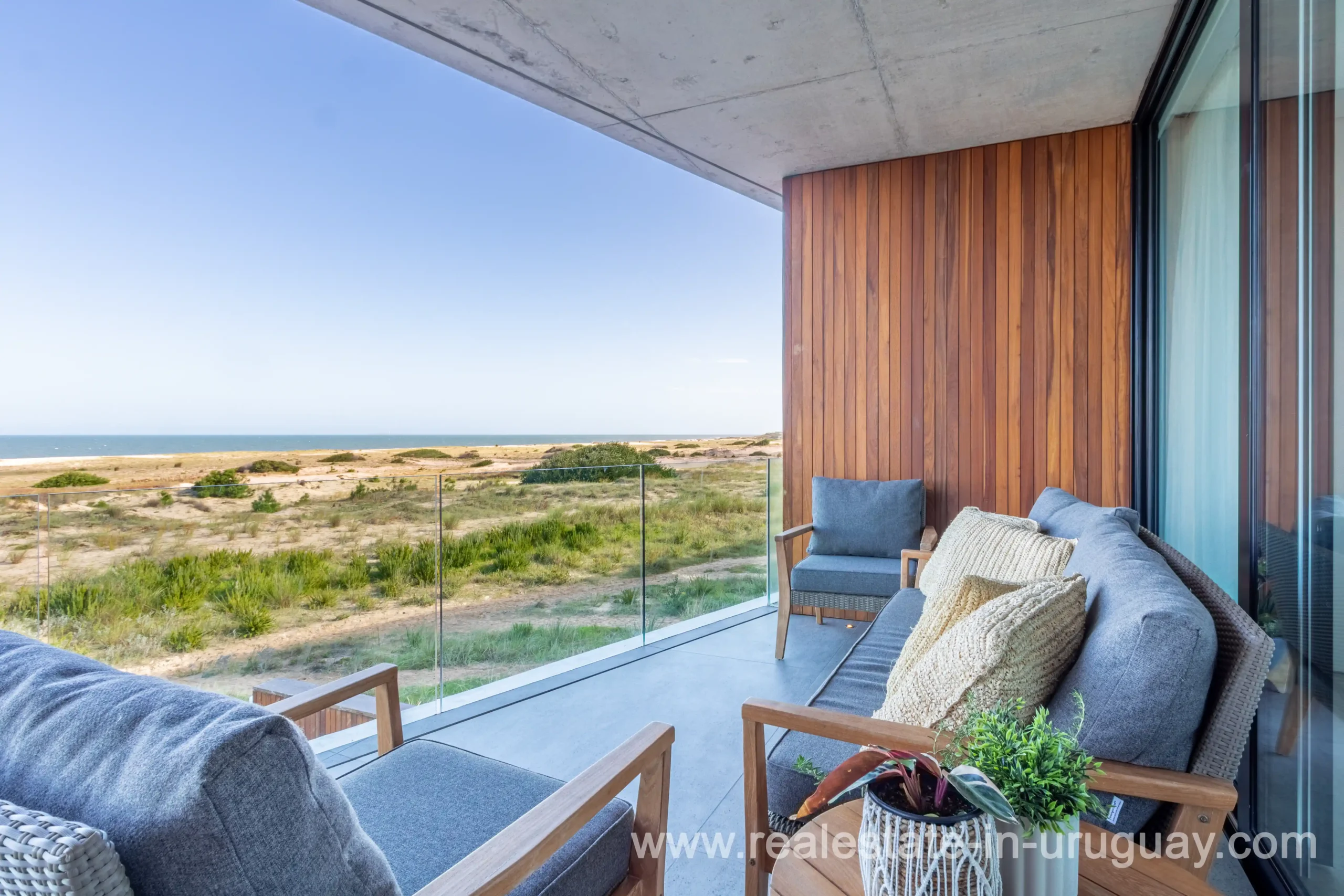 Das Colette-Gebäude liegt am exklusiven Strand von Manantiales, direkt am Meer, in einem einzigartigen Anwesen in Punta del Este. Dieses besondere Apartment in The Colette verfügt über 3 Schlafzimmer sowie ein Dienstmädchenzimmer und ein Fernsehzimmer. Es ist wunderschön eingerichtet und komplett ausgestattet. Sie verfügt über eine der besten Küchenkonfigurationen des Gebäudes, mit schlichten Farben und großer Weitläufigkeit, die sogar einen direkten Meerblick ermöglicht. Die Innenfläche beträgt 263m2, plus 59m2 Terrasse. Es verfügt über 2 komfortable, unabhängige Garagen. Die Anlage verfügt über mehrere Gemeinschaftsbereiche im Freien. Nach vorne hin sind der Swimmingpool und der Park vor den vorherrschenden Winden geschützt. Zum Meer hin sind die gemeinschaftlich bepflanzten Terrassen mit Wohnräumen und außergewöhnlichen Aussichten. Es besteht aus insgesamt 46 luxuriösen Apartments, die alle über einen eigenen Balkon und Meerblick verfügen. Das Gebäude verfügt auch über ein Hallenbad, einen Fitnessraum und ein Spa. Als Materialien für die Außenverkleidung wurden Sichtbeton, Holz und lokaler Stein gewählt. Das Colette wurde mit Respekt vor der Natur und seiner Umgebung entworfen.