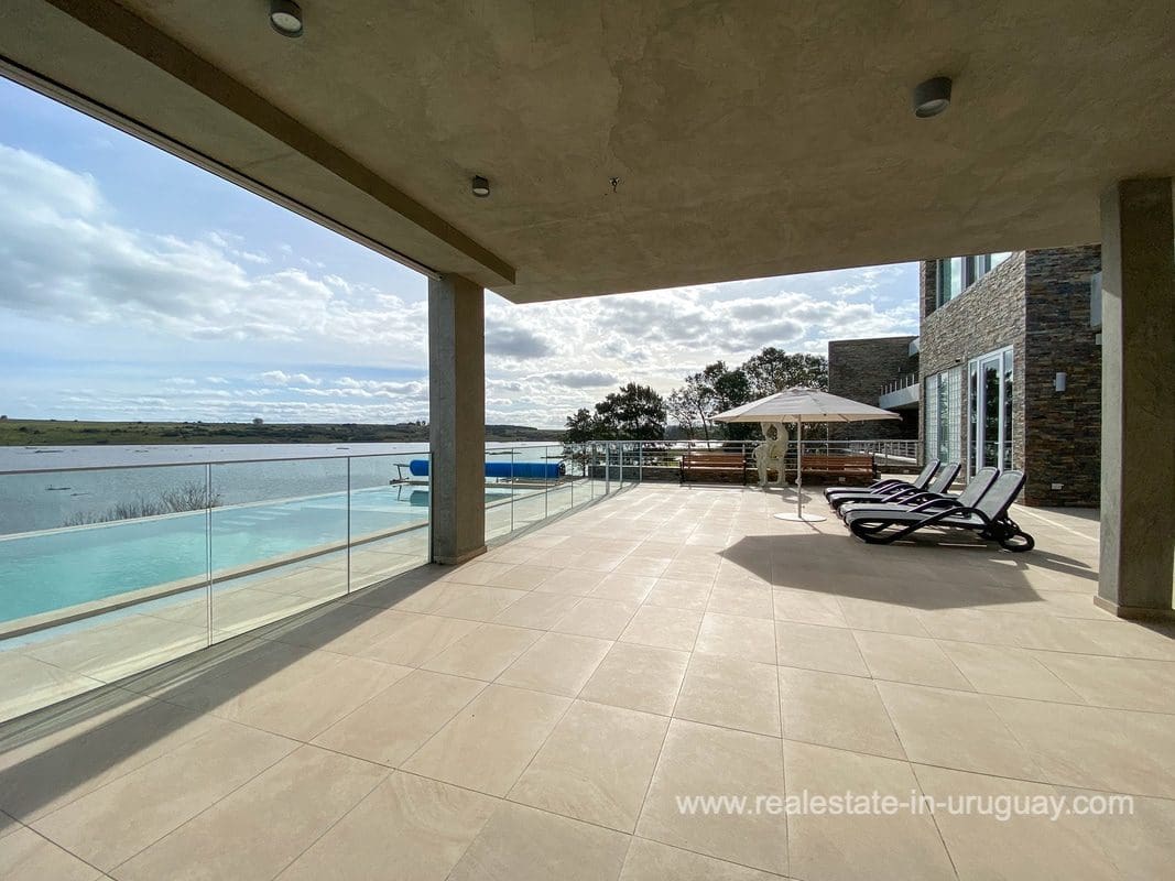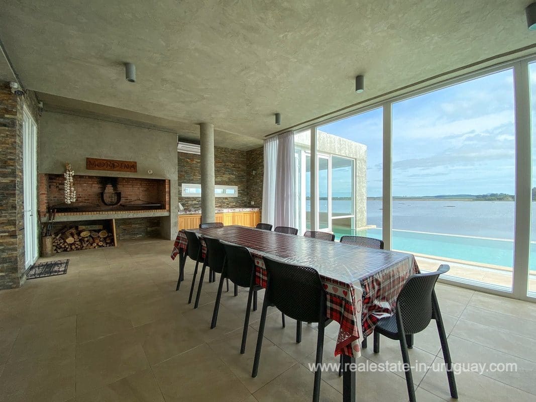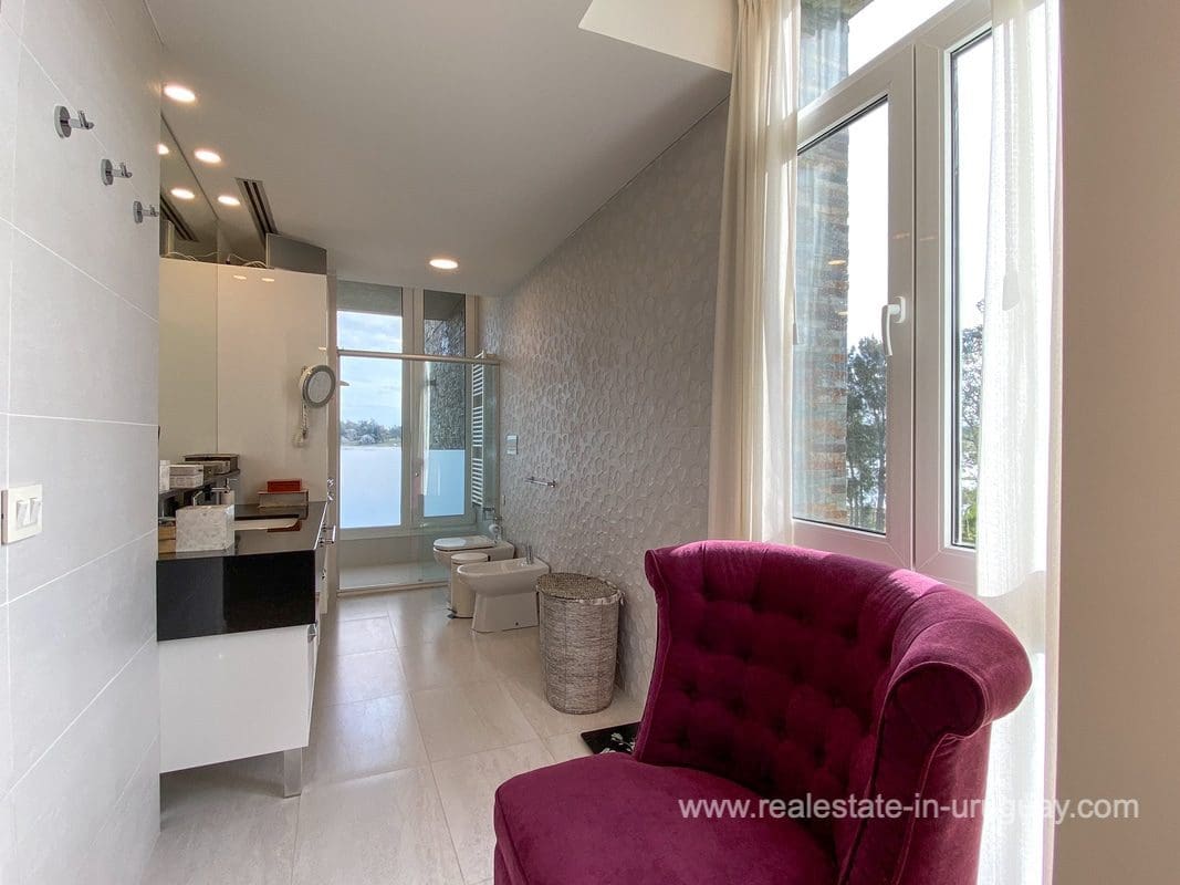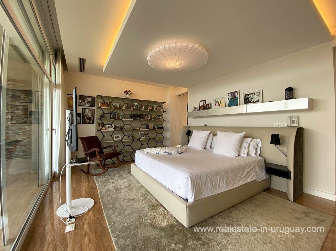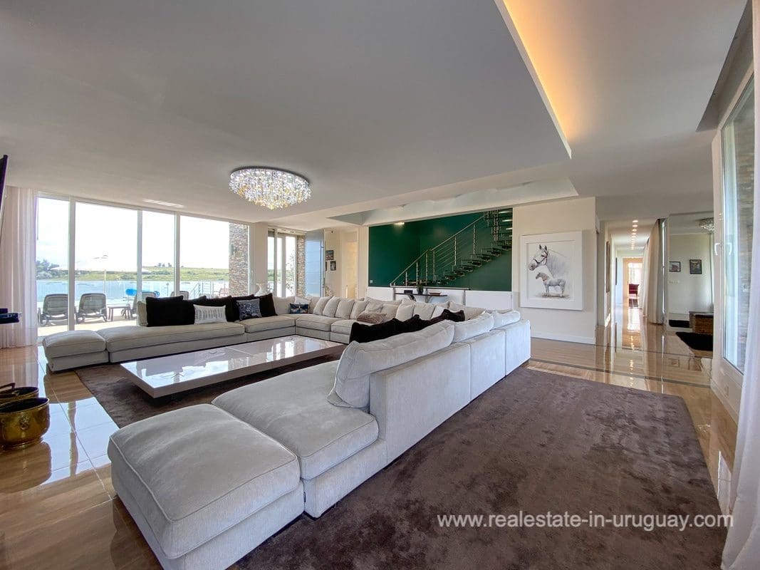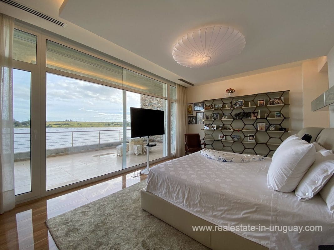 This modern house on Laguna del Sauce is located in a unique spot offering amazing sunset views and boasts a special, distinct and daring design. It is situated on a 18-hectare plot with a building measuring 1,200m2 with six bedrooms, making this a large property. Built in 2017, it has electric radial heating, electric blinds, a heated swimming pool, two staff apartments, and two water wells, and was all designed by the architect, Eleonora de Leon. Laguna del Sauce is the largest body of water in the town with tributaries from the rivers Sauce, Mallorquina, Potrero, and Pan de Azúcar. The east side of Laguna del Sauce has become an exclusive international neighborhood and has some beautiful local places, like the Las Cumbres resort and Pueblo Edén to the north of the lagoon and Solanas and Punta Ballena to the south nearby. Its strategic location is just 16km from the coast and the shopping center, 21km from Laguna del Sauce Airport, 25km from the Punta del Este peninsula, and 110km from Montevideo. An ideal place for someone looking to be on the water and having some land around the house.