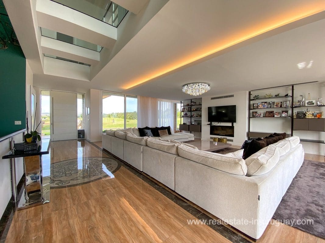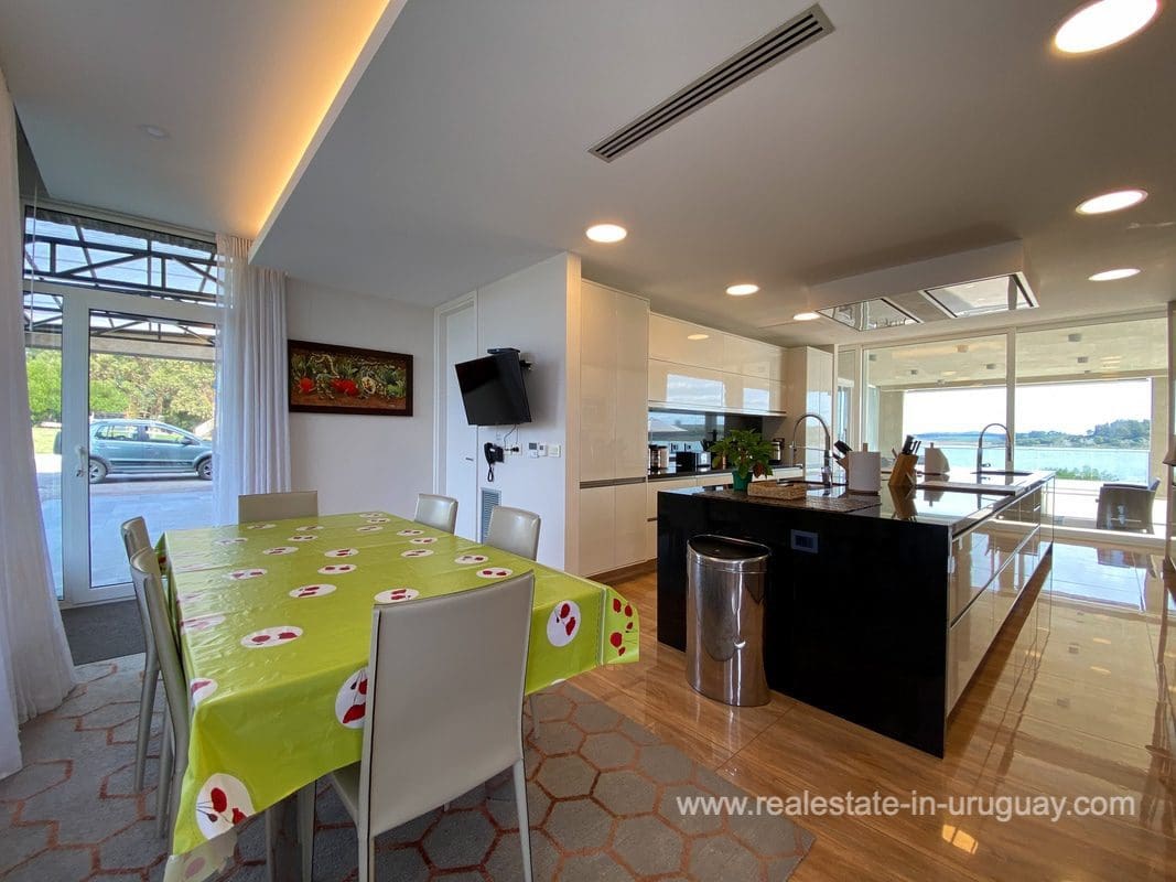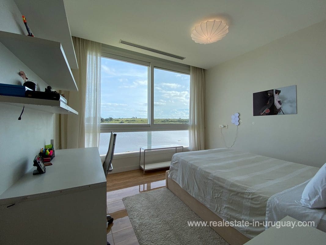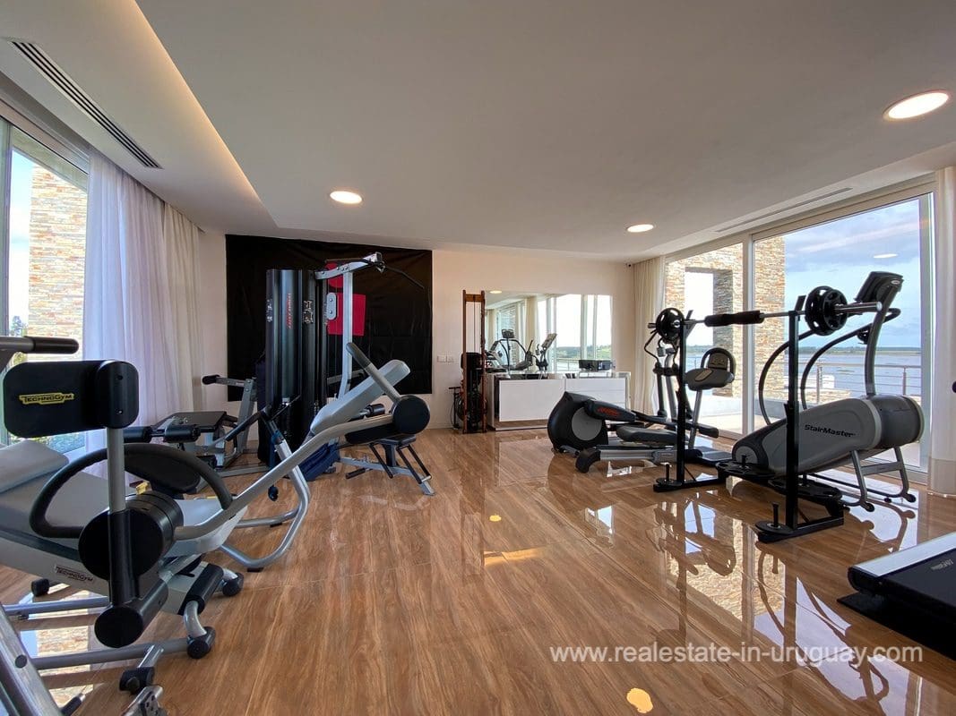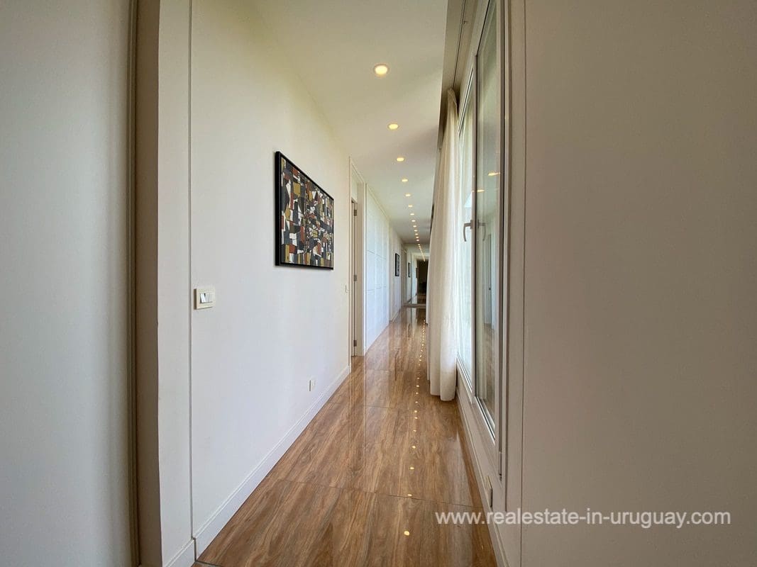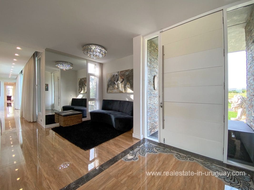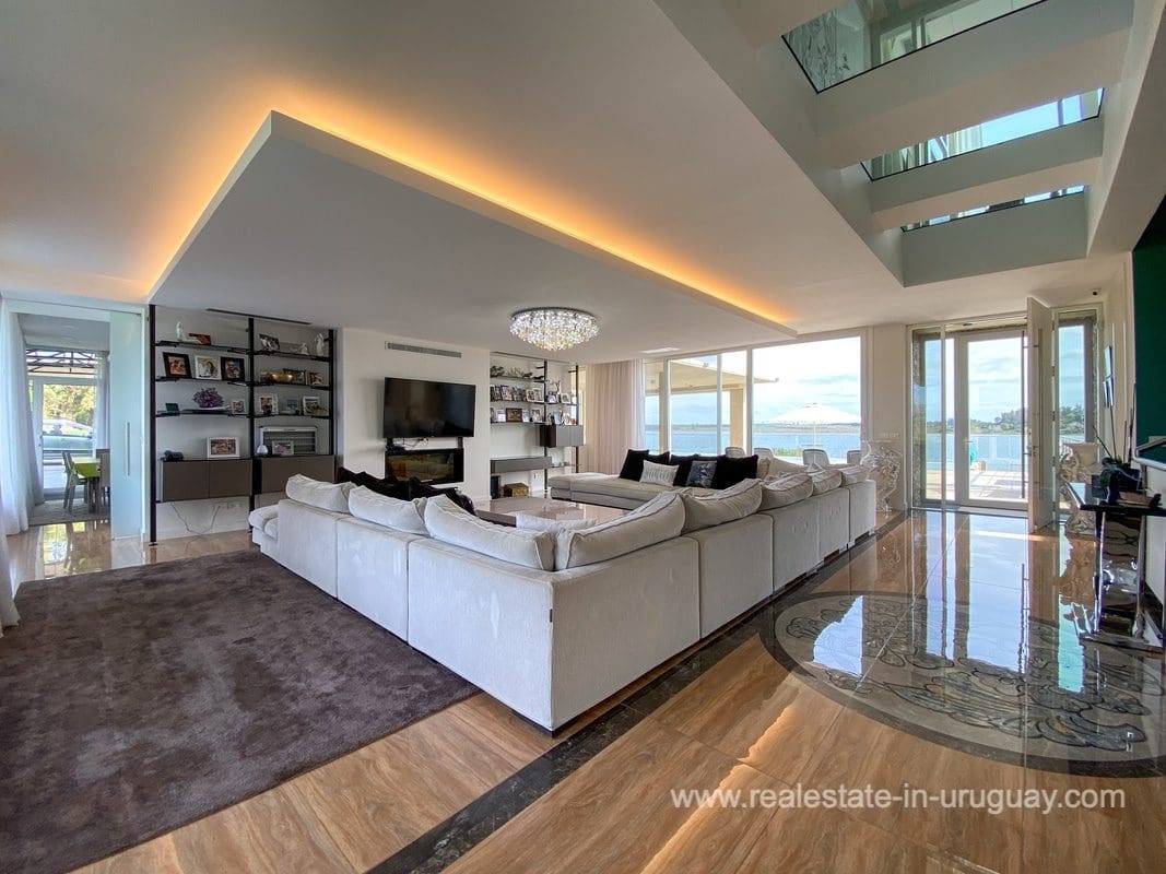 This modern house on Laguna del Sauce is located in a unique spot offering amazing sunset views and boasts a special, distinct and daring design. It is situated on a 18-hectare plot with a building measuring 1,200m2 with six bedrooms, making this a large property. Built in 2017, it has electric radial heating, electric blinds, a heated swimming pool, two staff apartments, and two water wells, and was all designed by the architect, Eleonora de Leon. Laguna del Sauce is the largest body of water in the town with tributaries from the rivers Sauce, Mallorquina, Potrero, and Pan de Azúcar. The east side of Laguna del Sauce has become an exclusive international neighborhood and has some beautiful local places, like the Las Cumbres resort and Pueblo Edén to the north of the lagoon and Solanas and Punta Ballena to the south nearby. Its strategic location is just 16km from the coast and the shopping center, 21km from Laguna del Sauce Airport, 25km from the Punta del Este peninsula, and 110km from Montevideo. An ideal place for someone looking to be on the water and having some land around the house.