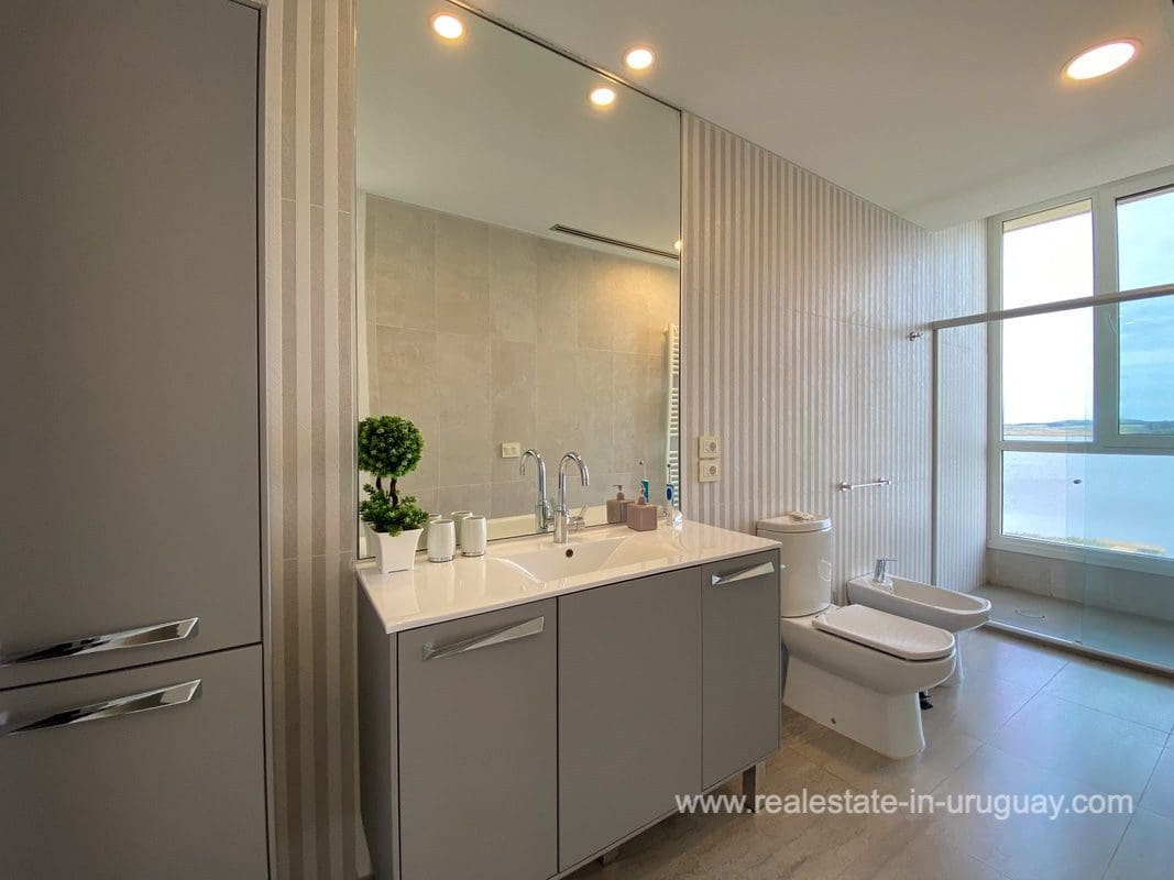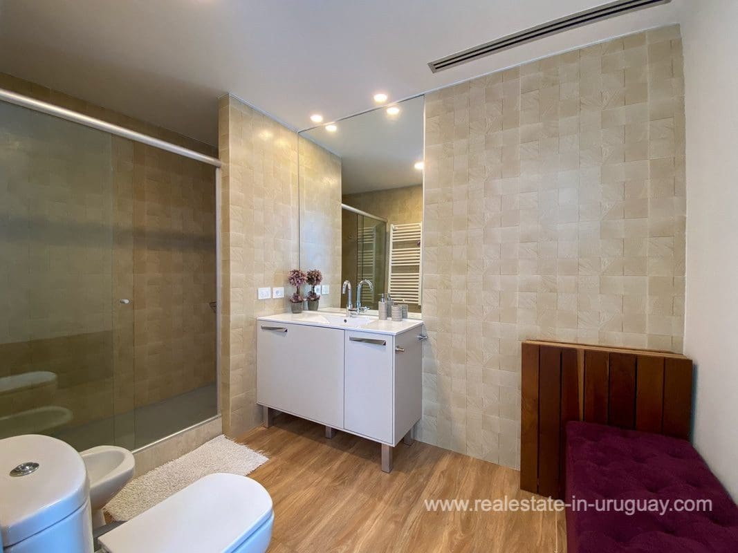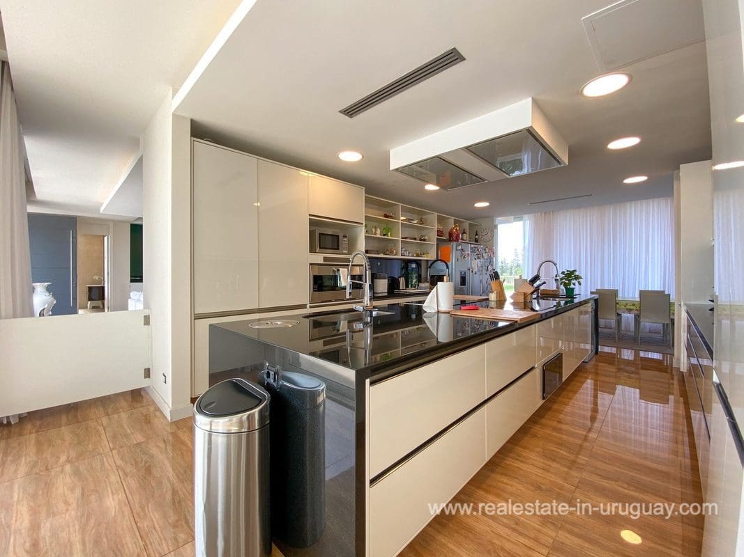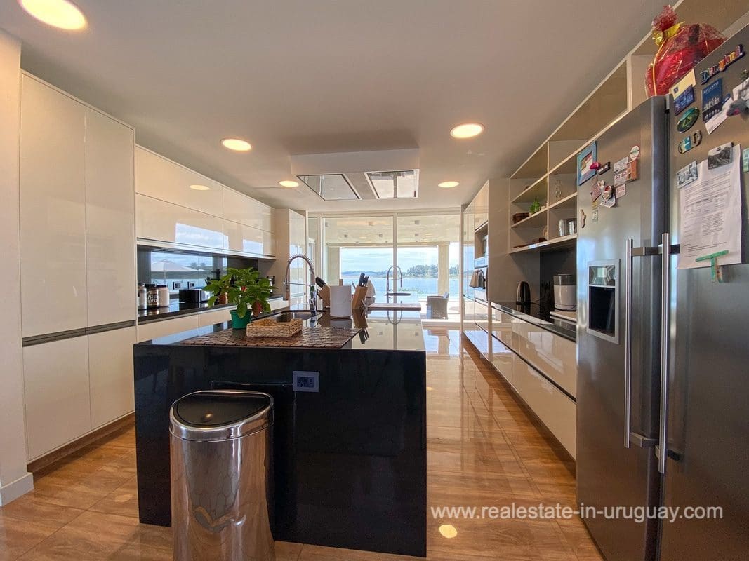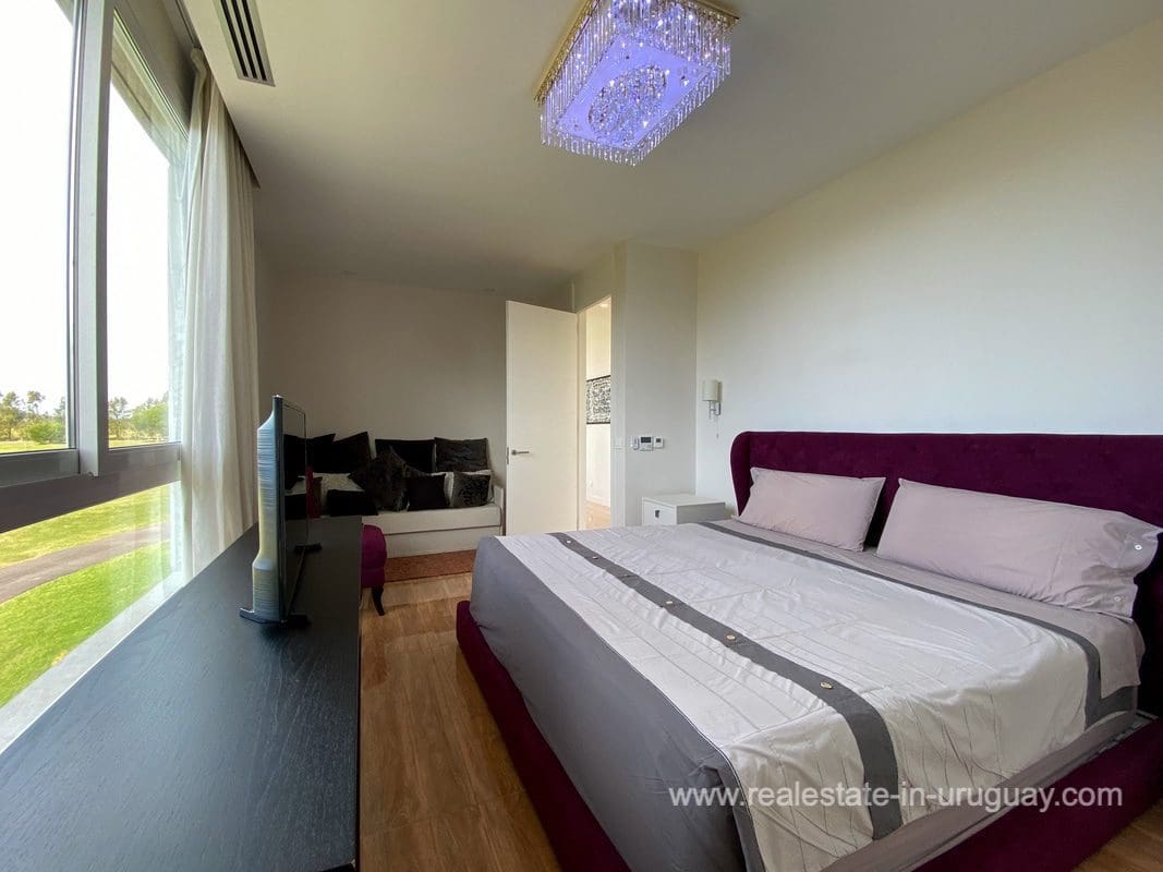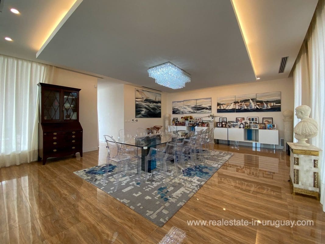 This modern house on Laguna del Sauce is located in a unique spot offering amazing sunset views and boasts a special, distinct and daring design. It is situated on a 18-hectare plot with a building measuring 1,200m2 with six bedrooms, making this a large property. Built in 2017, it has electric radial heating, electric blinds, a heated swimming pool, two staff apartments, and two water wells, and was all designed by the architect, Eleonora de Leon. Laguna del Sauce is the largest body of water in the town with tributaries from the rivers Sauce, Mallorquina, Potrero, and Pan de Azúcar. The east side of Laguna del Sauce has become an exclusive international neighborhood and has some beautiful local places, like the Las Cumbres resort and Pueblo Edén to the north of the lagoon and Solanas and Punta Ballena to the south nearby. Its strategic location is just 16km from the coast and the shopping center, 21km from Laguna del Sauce Airport, 25km from the Punta del Este peninsula, and 110km from Montevideo. An ideal place for someone looking to be on the water and having some land around the house.