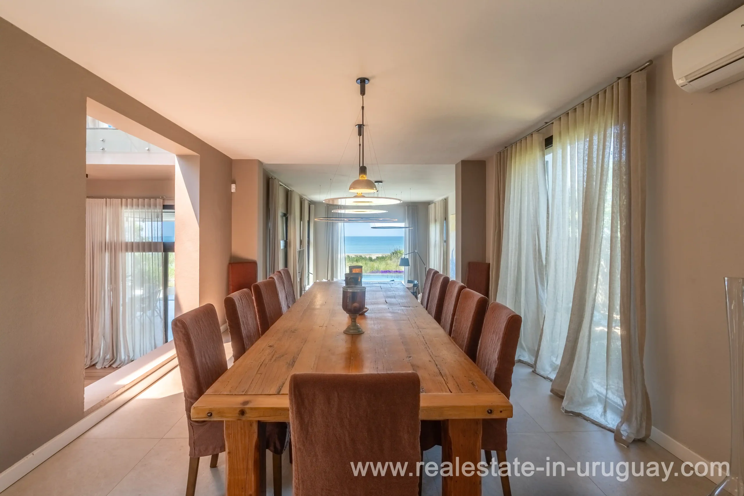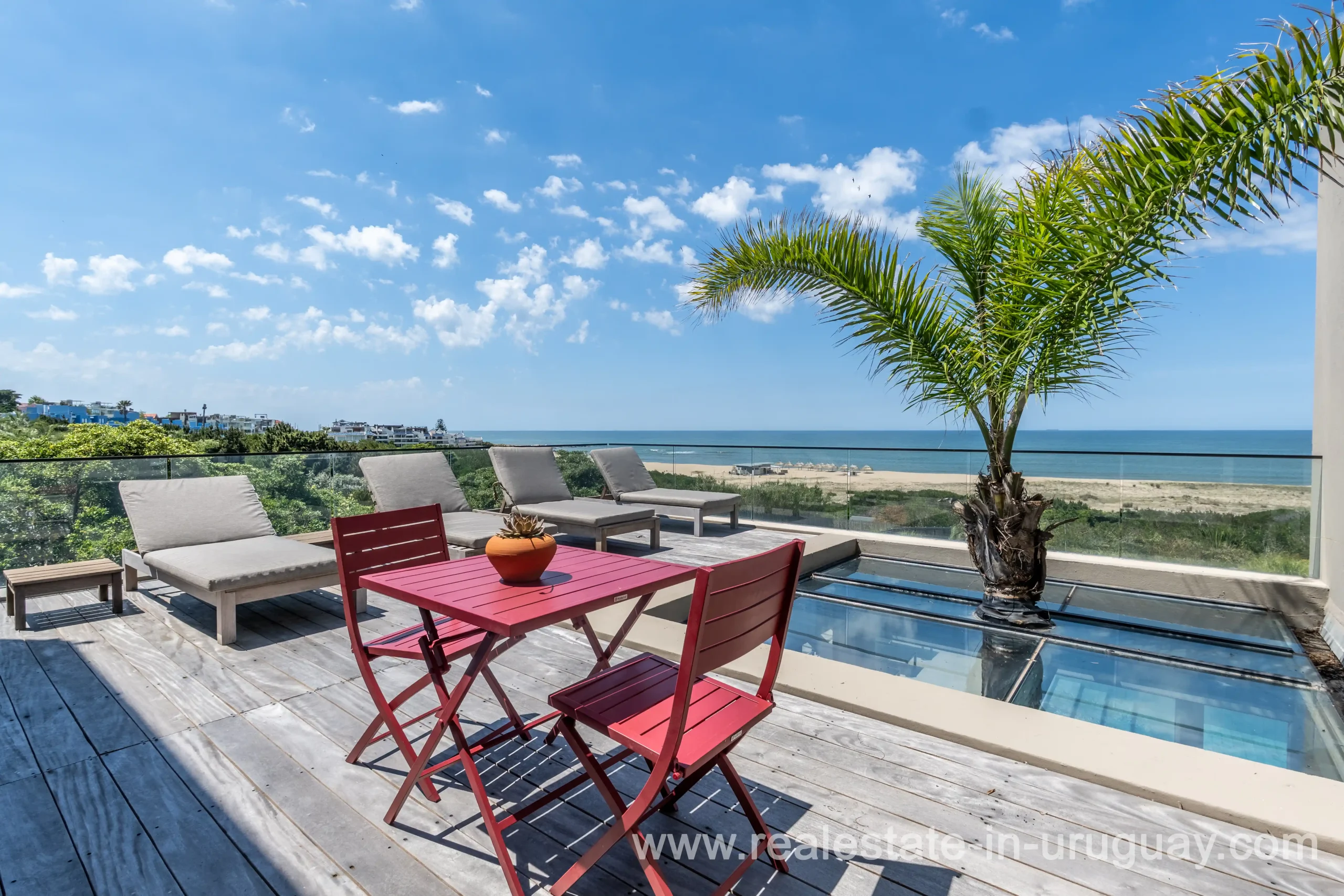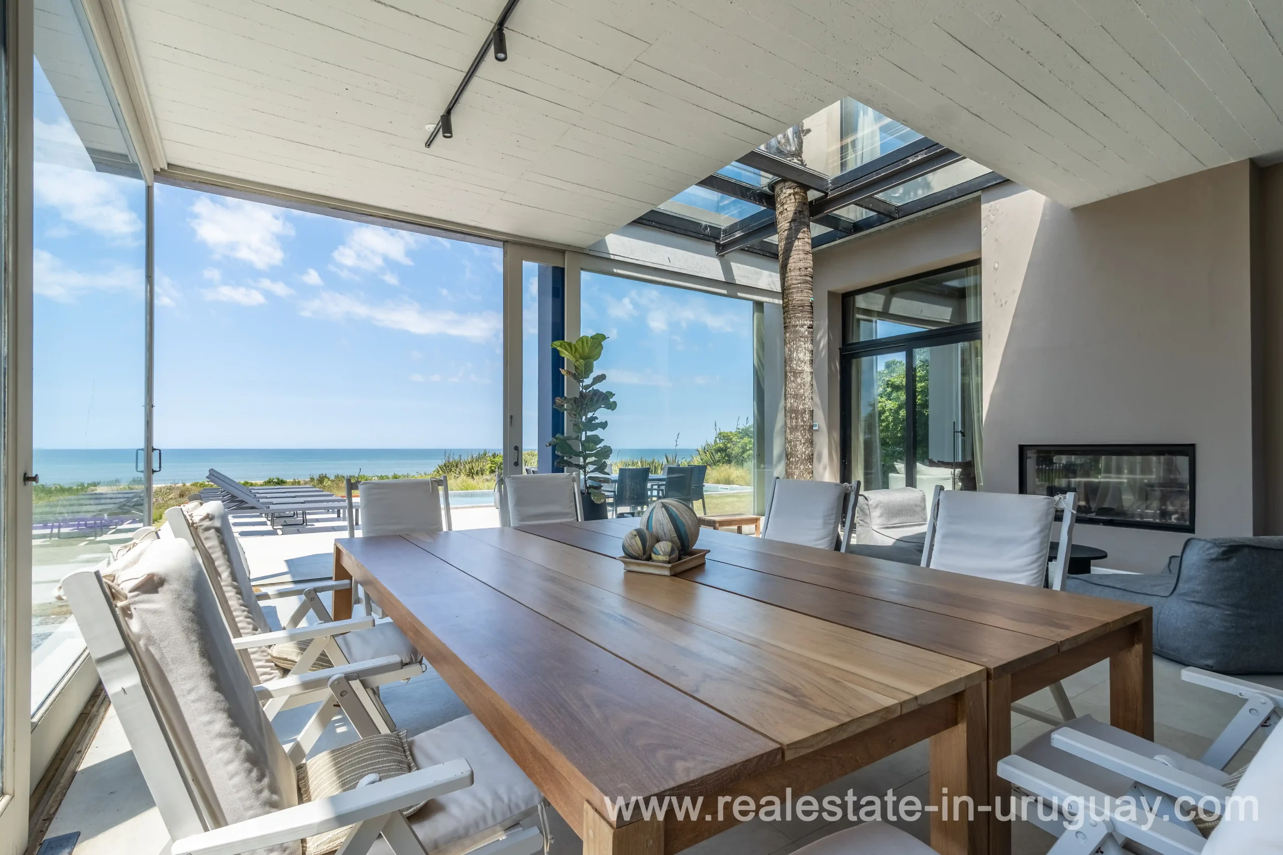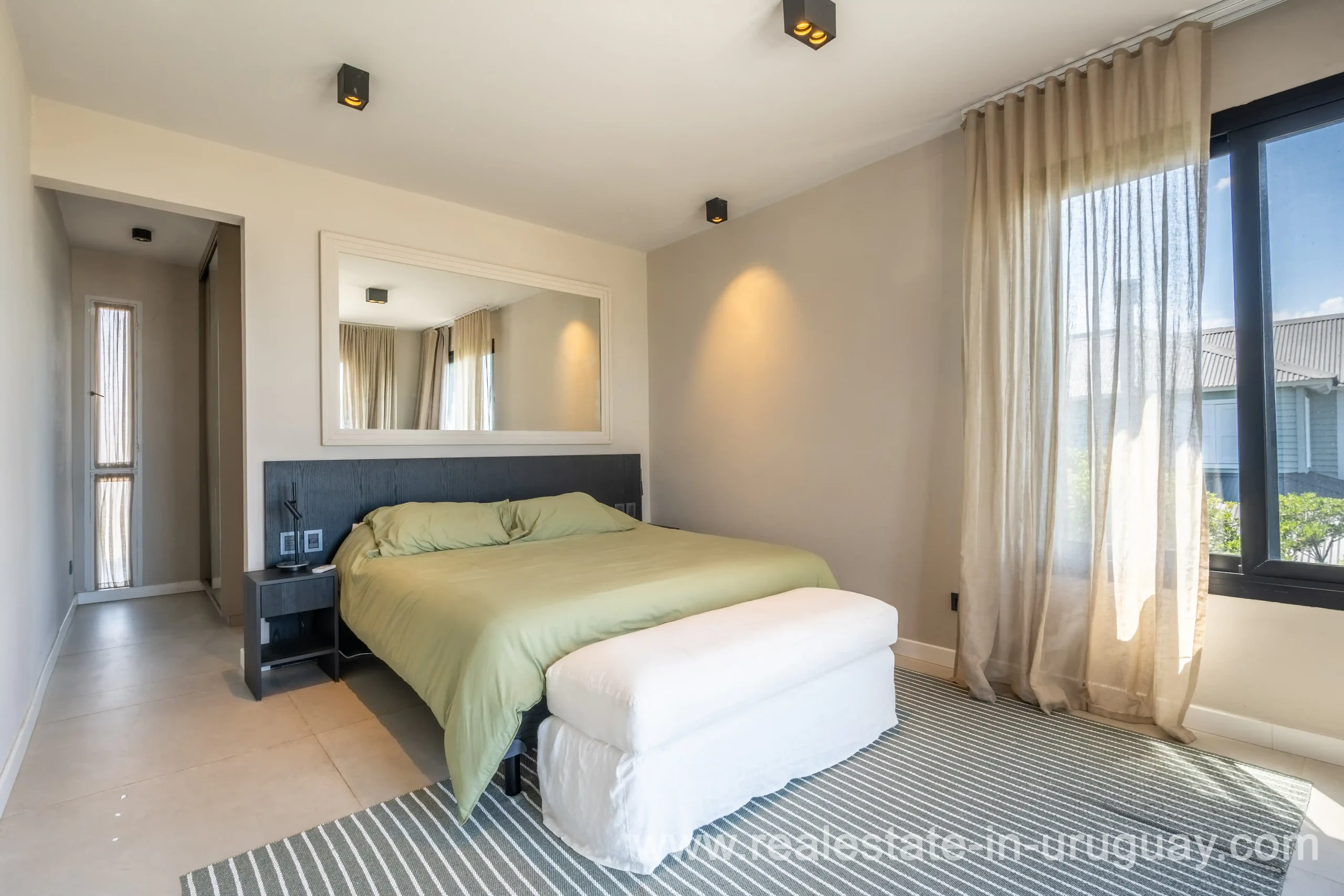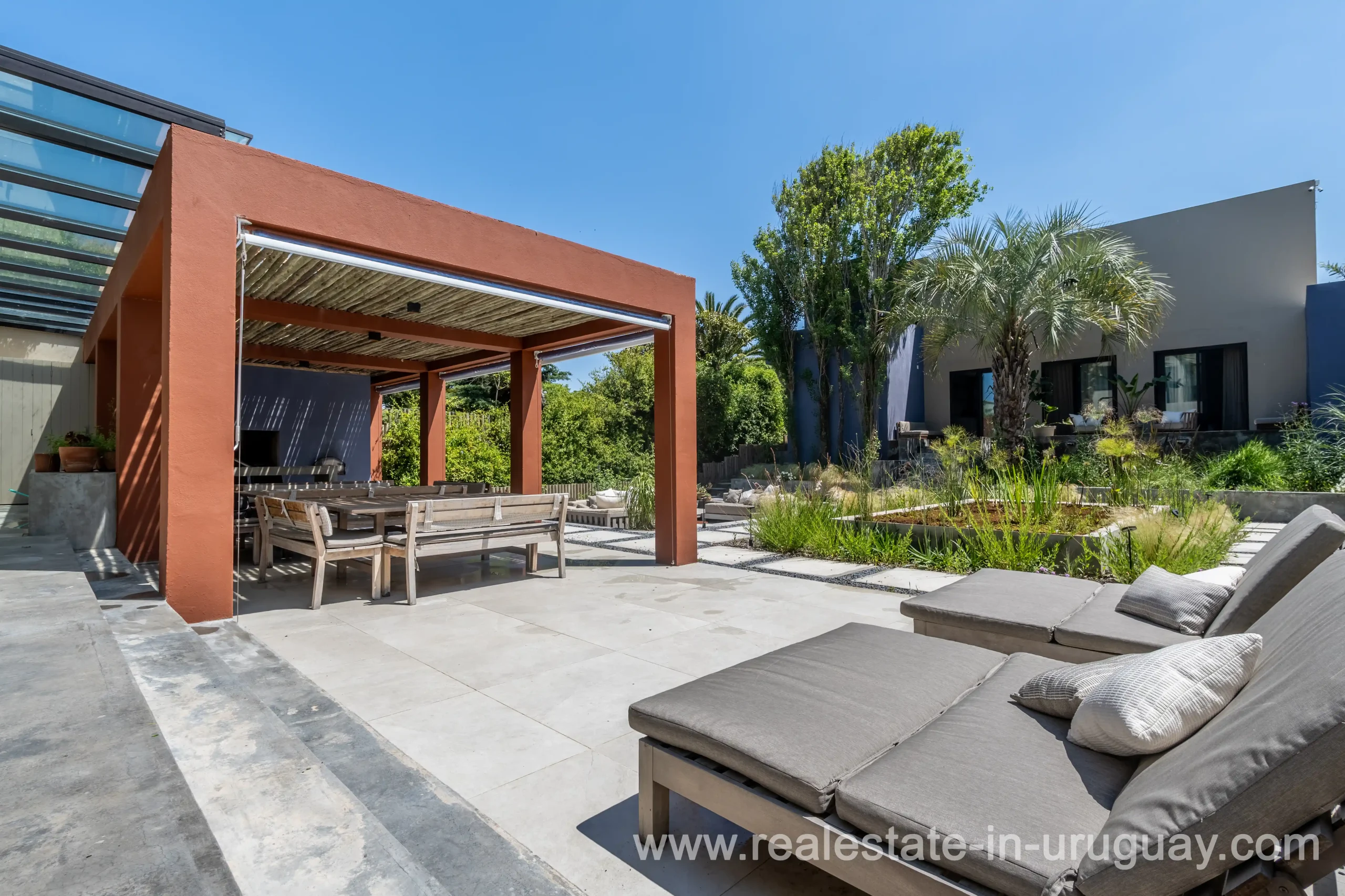 Dieses moderne Strandhaus in Manantiales wurde von einer der renommiertesten und bekanntesten Architektinnen von heute, Alexa Sanguinetti, entworfen. Dieses architektonische Meisterwerk bietet geräumige und gemütliche Zimmer mit traumhaftem Meerblick. Der Haupteingang ist sehr privat, ein wunderschöner Innenhof mit einem ausreichend großen, windgeschützten Swimmingpool und einem schönen Grillbereich, nur wenige Meter entfernt. Das Haupthaus verfügt über ein geräumiges Wohnzimmer mit Kamin und großen Fenstern sowie ein Esszimmer, die beide durch ihre Geräumigkeit und Höhe bestechen, eine voll ausgestattete, praktische Küche und vier Doppelschlafzimmer mit eigenem Bad. Im Poolbereich befinden sich zwei weitere Schlafzimmer, die sich ein Badezimmer teilen, sowie ein Haus für den Hausmeister. Sowohl aufgrund seiner Lage als auch seines Designs und seiner Aufteilung ist dies eine einzigartige Residenz, die unvergessliche Urlaubstage bietet.