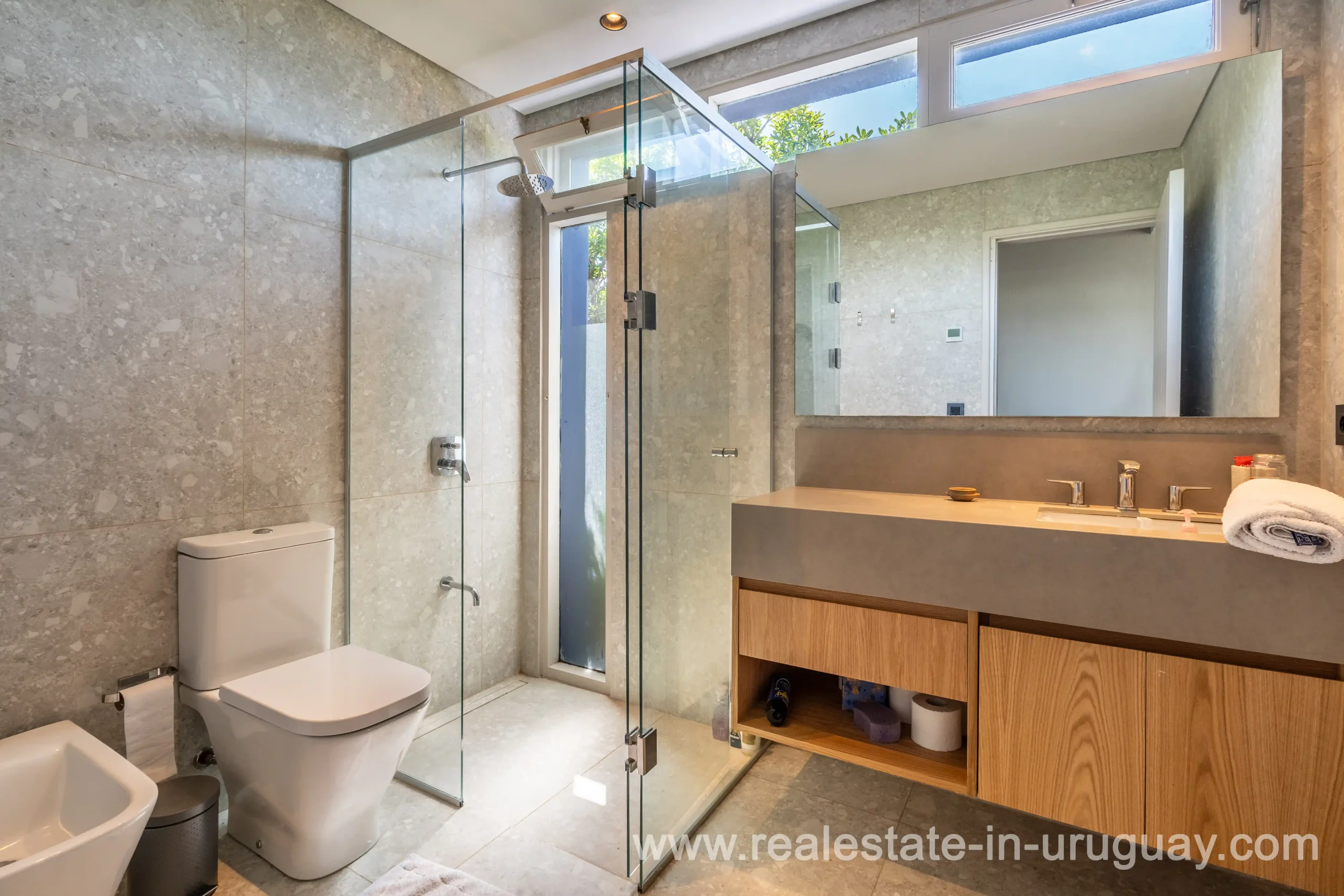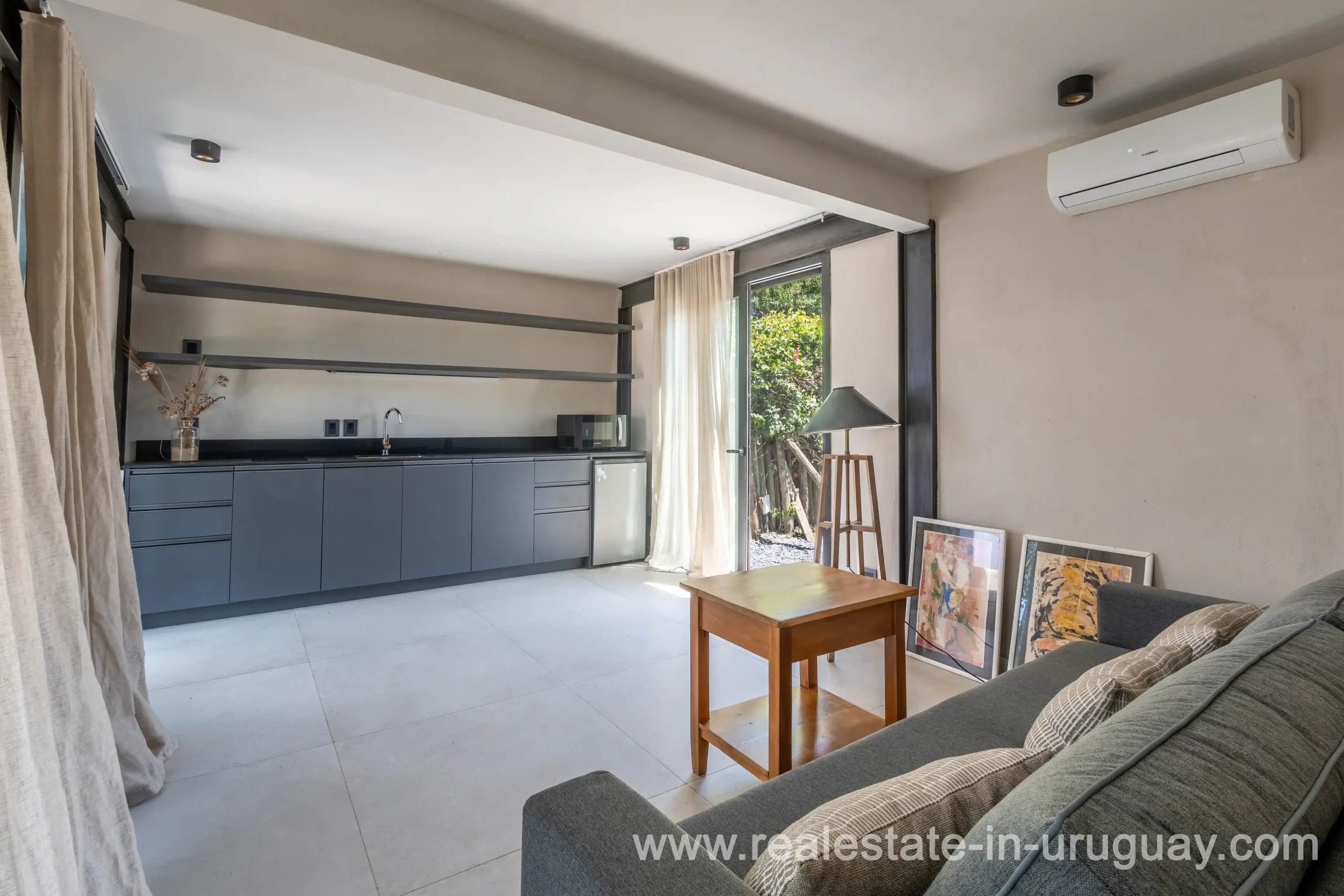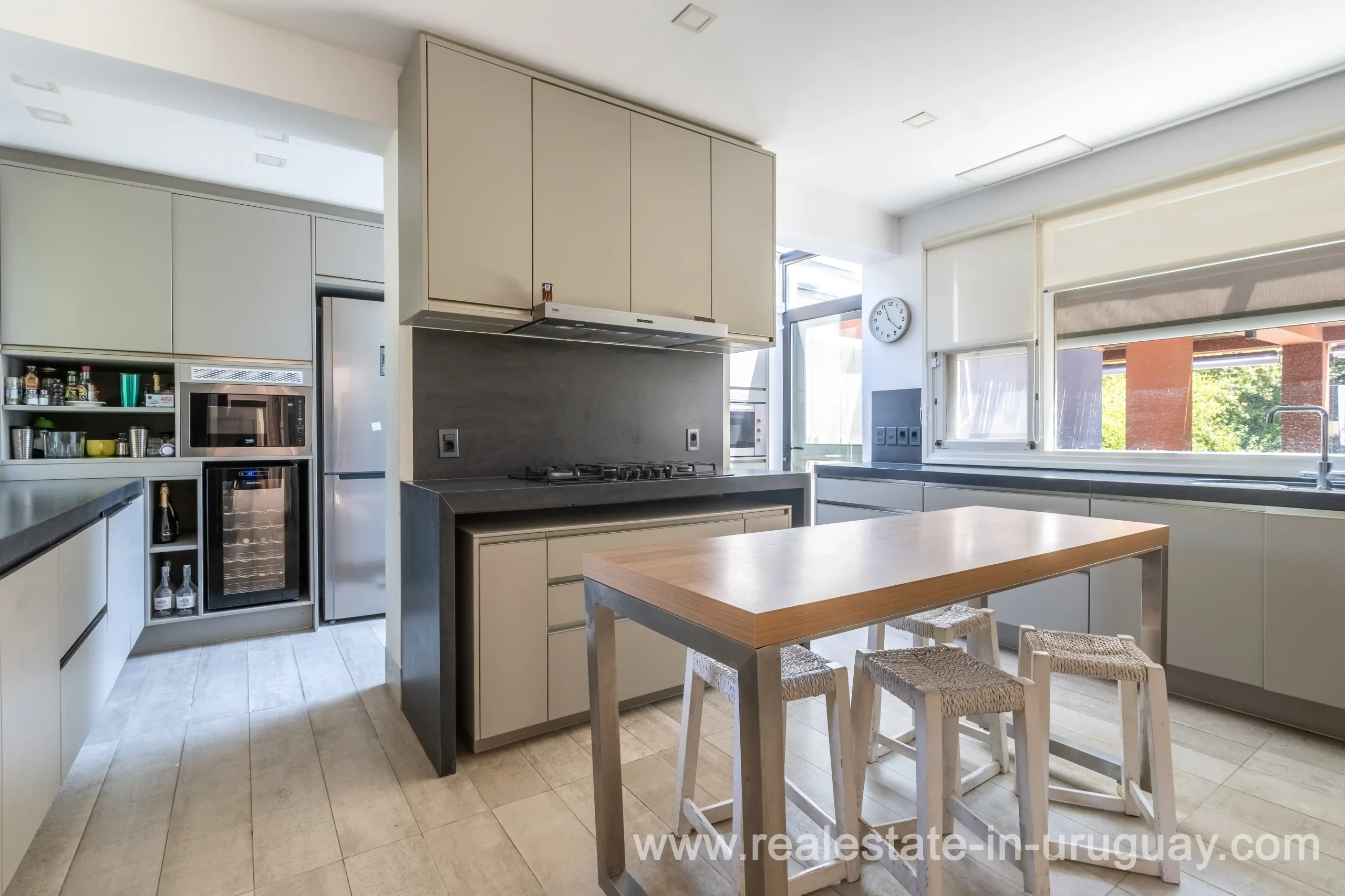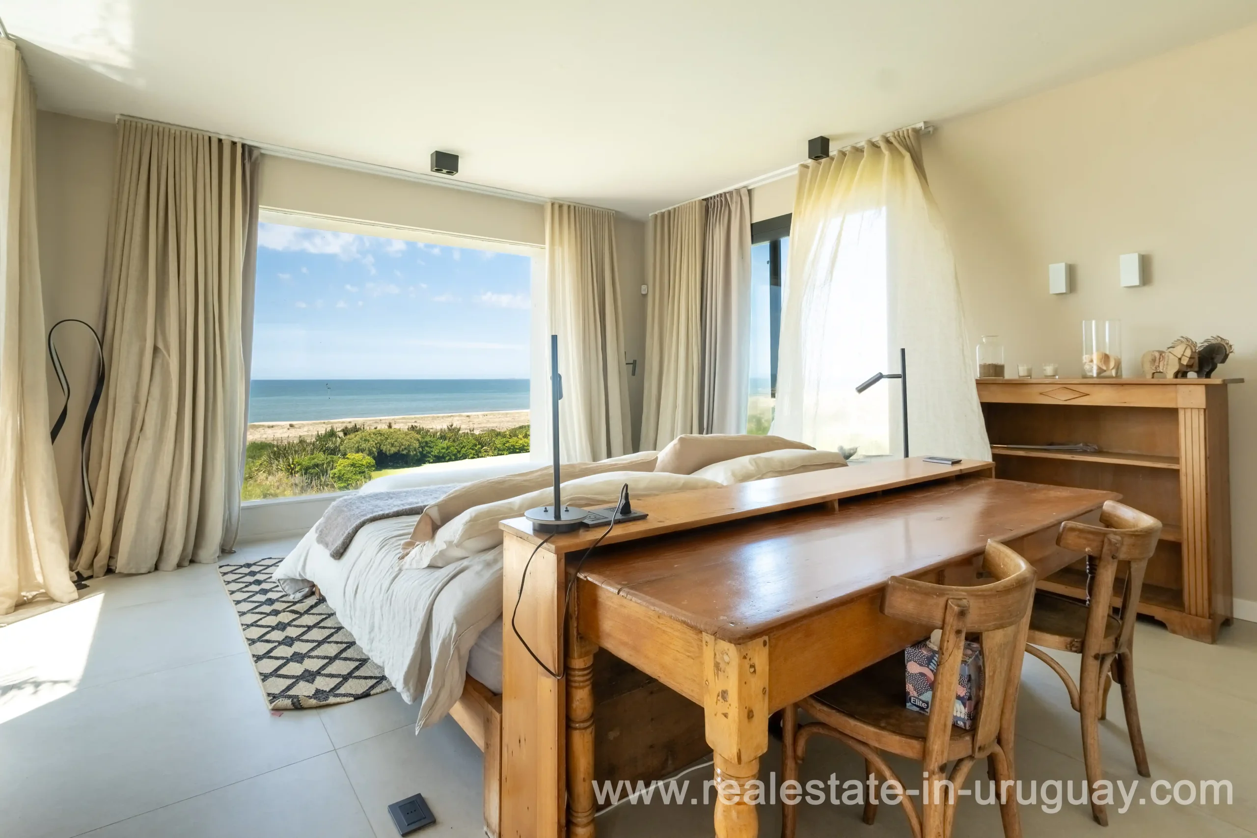 Dieses moderne Strandhaus in Manantiales wurde von einer der renommiertesten und bekanntesten Architektinnen von heute, Alexa Sanguinetti, entworfen. Dieses architektonische Meisterwerk bietet geräumige und gemütliche Zimmer mit traumhaftem Meerblick. Der Haupteingang ist sehr privat, ein wunderschöner Innenhof mit einem ausreichend großen, windgeschützten Swimmingpool und einem schönen Grillbereich, nur wenige Meter entfernt. Das Haupthaus verfügt über ein geräumiges Wohnzimmer mit Kamin und großen Fenstern sowie ein Esszimmer, die beide durch ihre Geräumigkeit und Höhe bestechen, eine voll ausgestattete, praktische Küche und vier Doppelschlafzimmer mit eigenem Bad. Im Poolbereich befinden sich zwei weitere Schlafzimmer, die sich ein Badezimmer teilen, sowie ein Haus für den Hausmeister. Sowohl aufgrund seiner Lage als auch seines Designs und seiner Aufteilung ist dies eine einzigartige Residenz, die unvergessliche Urlaubstage bietet.