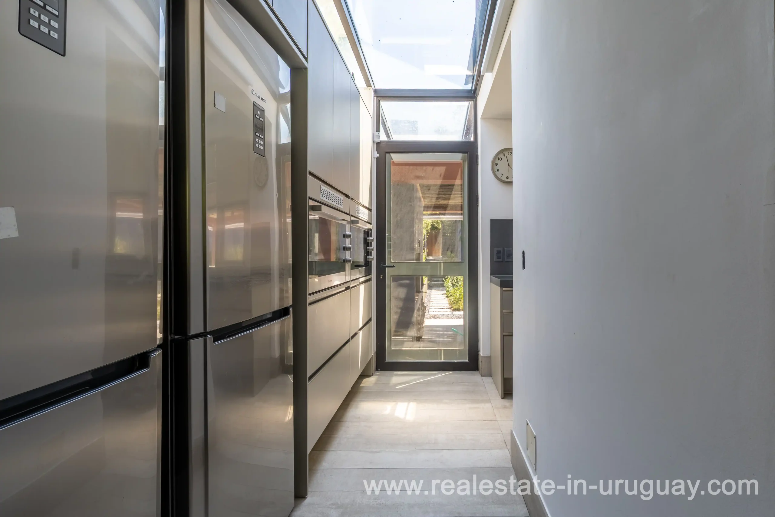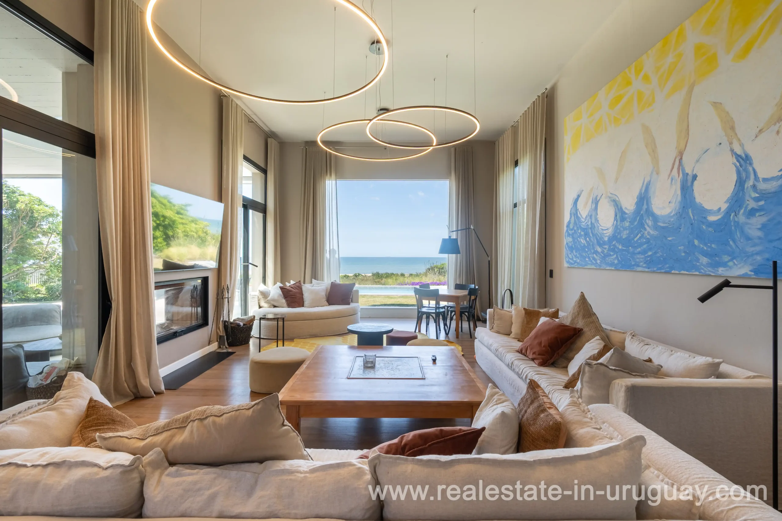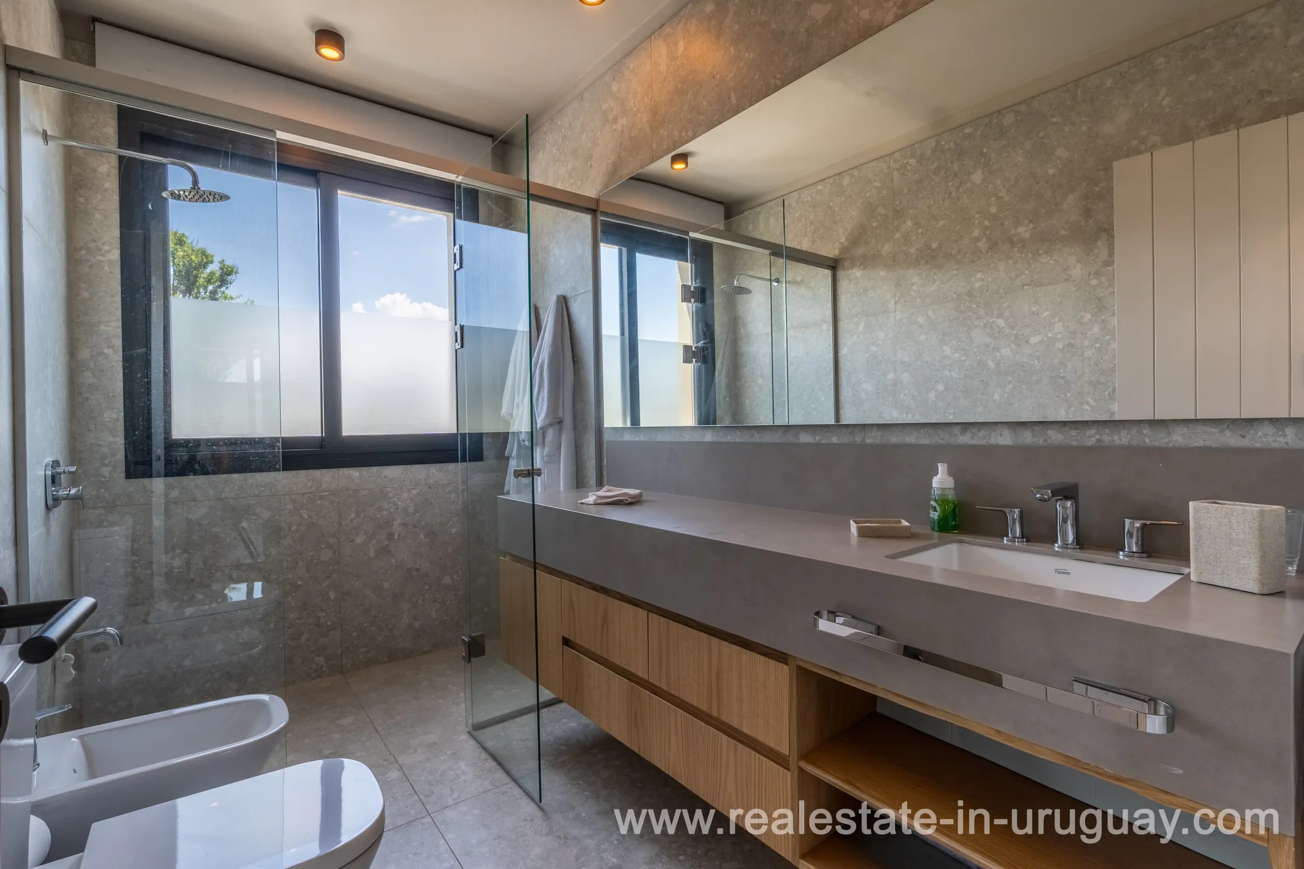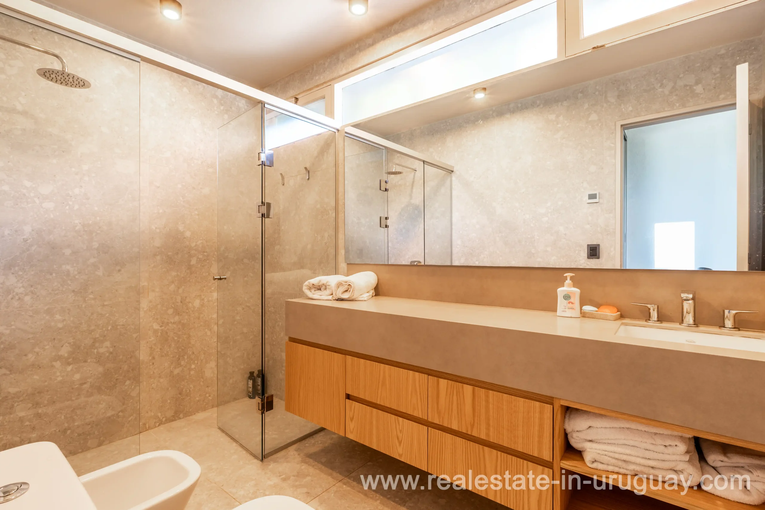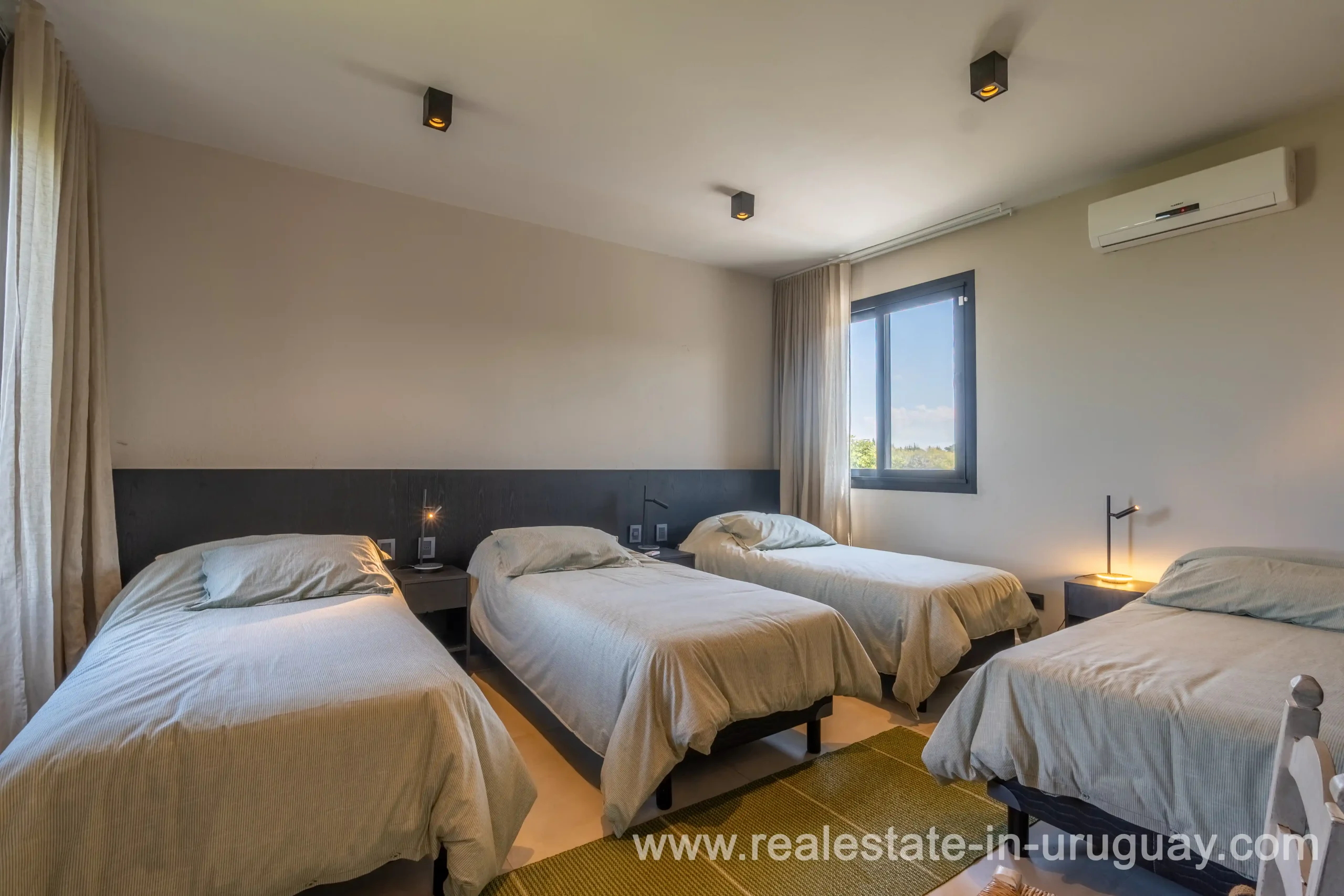 Dieses moderne Strandhaus in Manantiales wurde von einer der renommiertesten und bekanntesten Architektinnen von heute, Alexa Sanguinetti, entworfen. Dieses architektonische Meisterwerk bietet geräumige und gemütliche Zimmer mit traumhaftem Meerblick. Der Haupteingang ist sehr privat, ein wunderschöner Innenhof mit einem ausreichend großen, windgeschützten Swimmingpool und einem schönen Grillbereich, nur wenige Meter entfernt. Das Haupthaus verfügt über ein geräumiges Wohnzimmer mit Kamin und großen Fenstern sowie ein Esszimmer, die beide durch ihre Geräumigkeit und Höhe bestechen, eine voll ausgestattete, praktische Küche und vier Doppelschlafzimmer mit eigenem Bad. Im Poolbereich befinden sich zwei weitere Schlafzimmer, die sich ein Badezimmer teilen, sowie ein Haus für den Hausmeister. Sowohl aufgrund seiner Lage als auch seines Designs und seiner Aufteilung ist dies eine einzigartige Residenz, die unvergessliche Urlaubstage bietet.