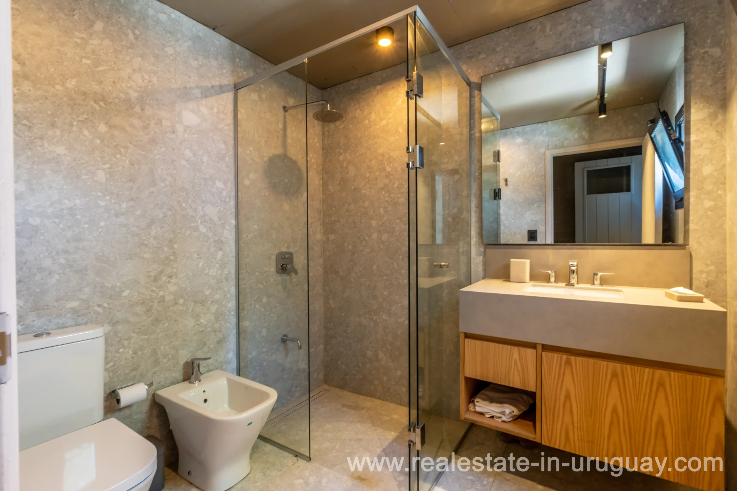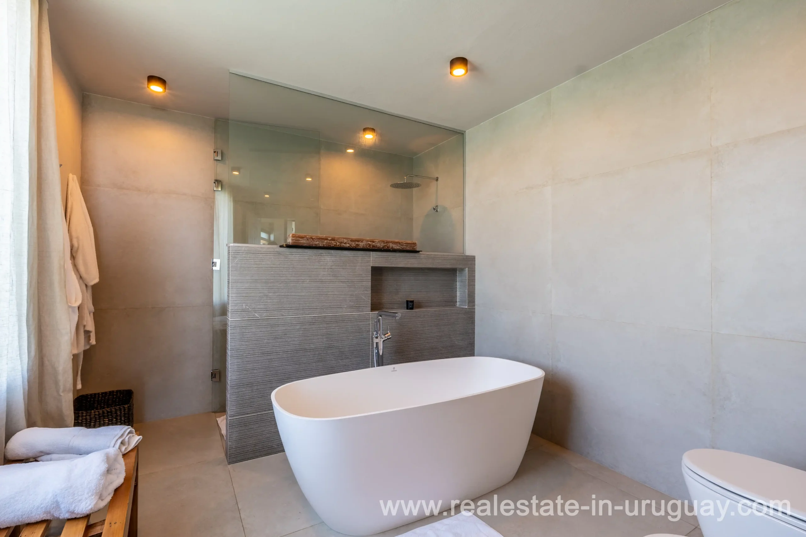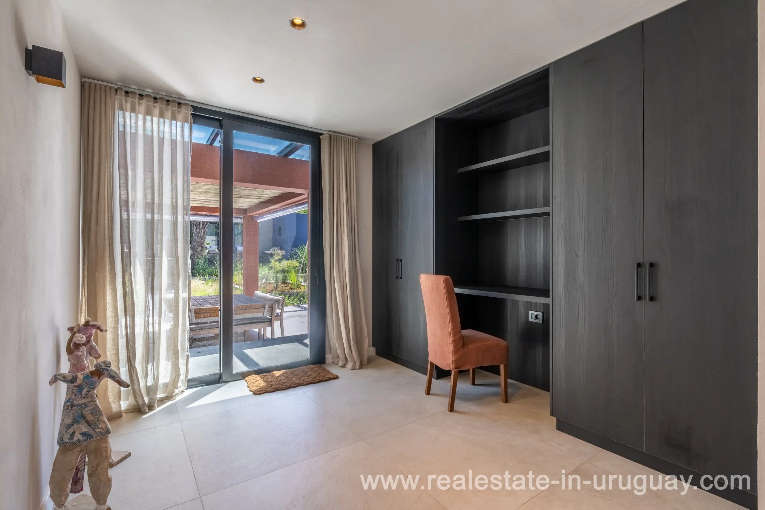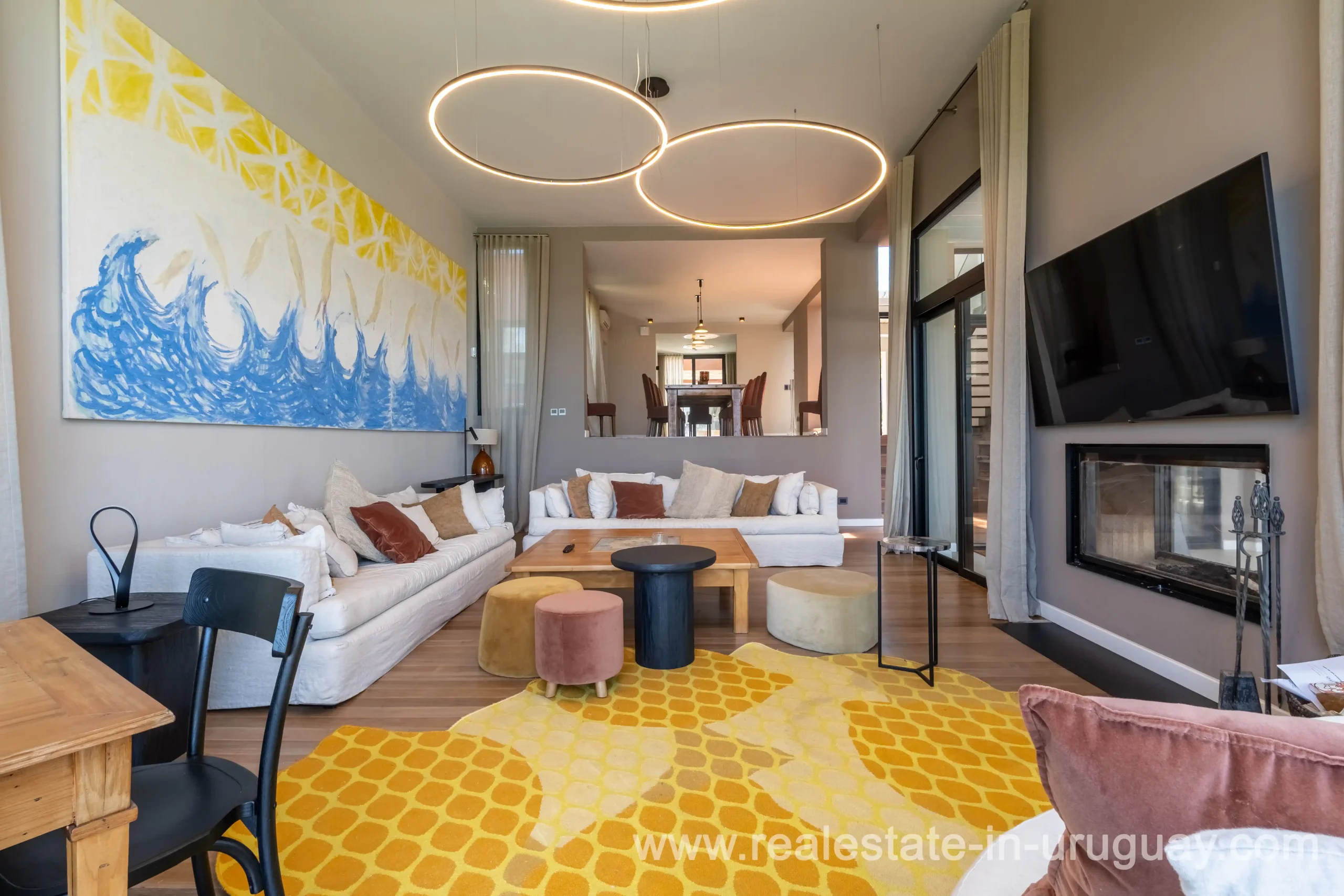 Dieses moderne Strandhaus in Manantiales wurde von einer der renommiertesten und bekanntesten Architektinnen von heute, Alexa Sanguinetti, entworfen. Dieses architektonische Meisterwerk bietet geräumige und gemütliche Zimmer mit traumhaftem Meerblick. Der Haupteingang ist sehr privat, ein wunderschöner Innenhof mit einem ausreichend großen, windgeschützten Swimmingpool und einem schönen Grillbereich, nur wenige Meter entfernt. Das Haupthaus verfügt über ein geräumiges Wohnzimmer mit Kamin und großen Fenstern sowie ein Esszimmer, die beide durch ihre Geräumigkeit und Höhe bestechen, eine voll ausgestattete, praktische Küche und vier Doppelschlafzimmer mit eigenem Bad. Im Poolbereich befinden sich zwei weitere Schlafzimmer, die sich ein Badezimmer teilen, sowie ein Haus für den Hausmeister. Sowohl aufgrund seiner Lage als auch seines Designs und seiner Aufteilung ist dies eine einzigartige Residenz, die unvergessliche Urlaubstage bietet.