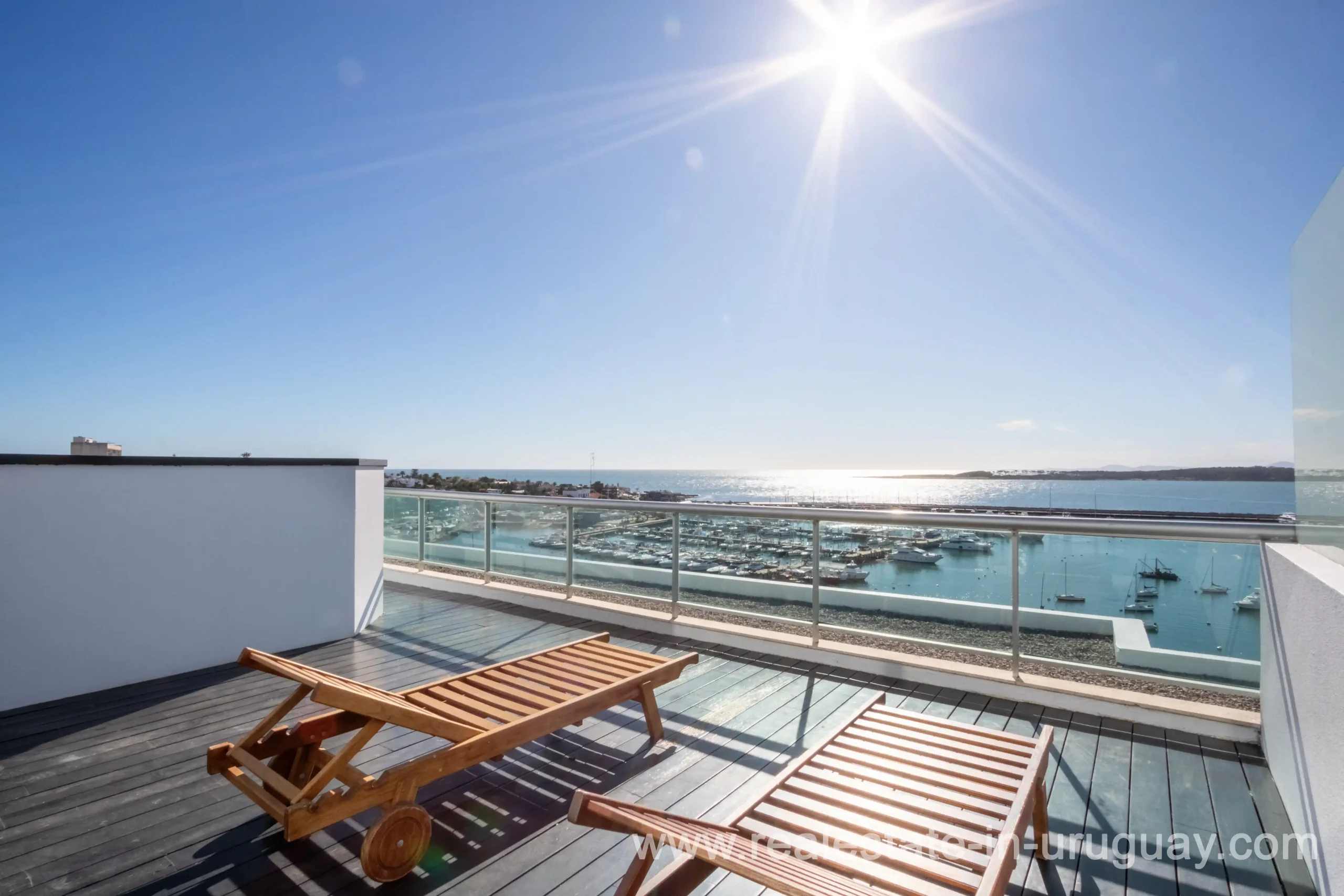 Das Penthouse im Hafen von Punta del Este befindet sich in einem exklusiven Gebäude mit lediglich 18 Einheiten. Von innen bietet es einen vollkommen ungehinderten Blick auf den Hafen, die Insel Gorriti und den Sonnenuntergang. Insgesamt verfügt es über mehr als 450 Quadratmeter bebaute Fläche, verteilt auf zwei Etagen. Auf der Hauptebene, zugänglich über einen privaten Eingangsbereich, befindet sich ein großzügiger Wohn-Essbereich mit Ausblick und Zugang zur Terrasse. Es verfügt über eine separate Küche, einen Wohnbereich und einen Dienstboteneingang. Darüber hinaus gibt es 4 Schlafzimmer mit jeweils eigenem Bad, ein Hauptschlafzimmer mit Ankleidezimmer und Meerblick. Im Obergeschoss befindet sich ein geschlossener Grillbereich mit Zugang zum Deck und seinem beheizten Schwimmbad.