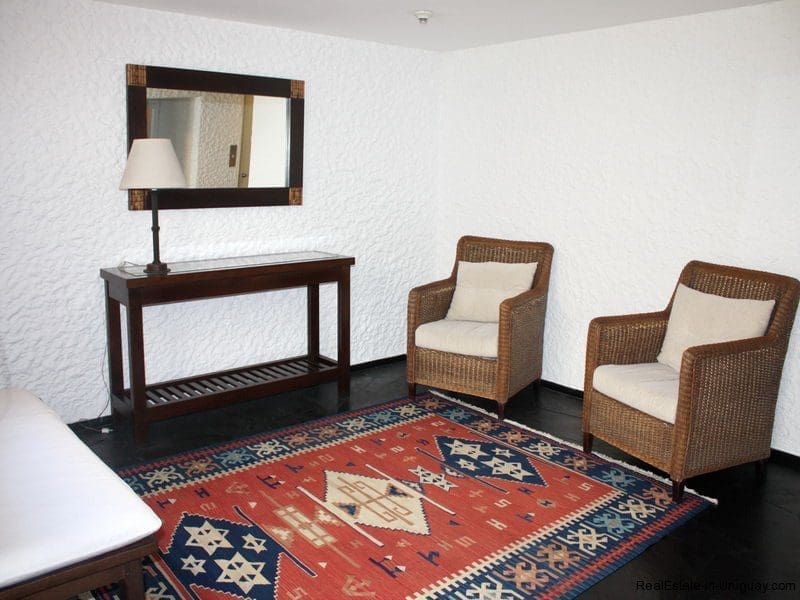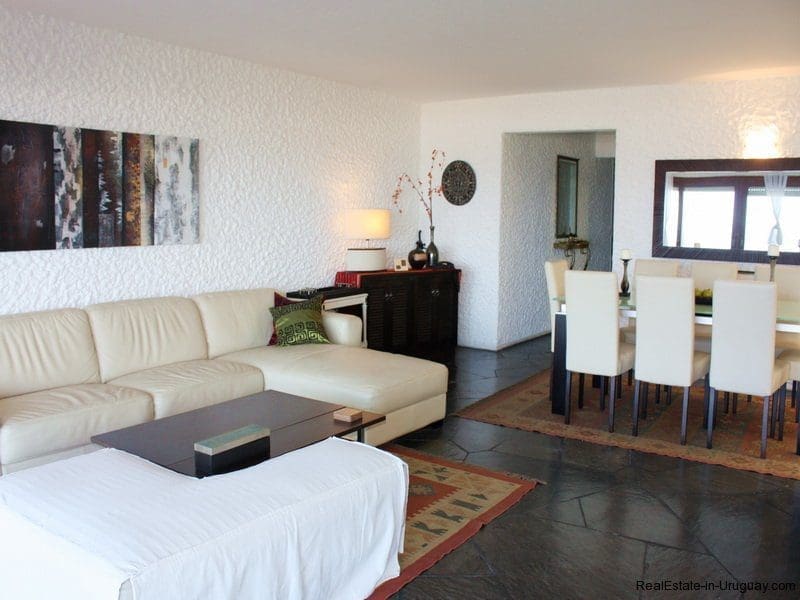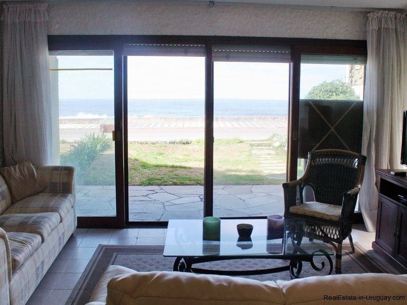 Spacious and comfortable seafront apartment in Punta del Este on the Peninsula, completely renovated and soon ready for occupancy. Stunning views in an ideal place for rest and relaxation accompanied by the sound of the waves and the seagulls and whales that move along the coast. 145m2 with two bedrooms plus staff quarters, terrace, utility area and garden.