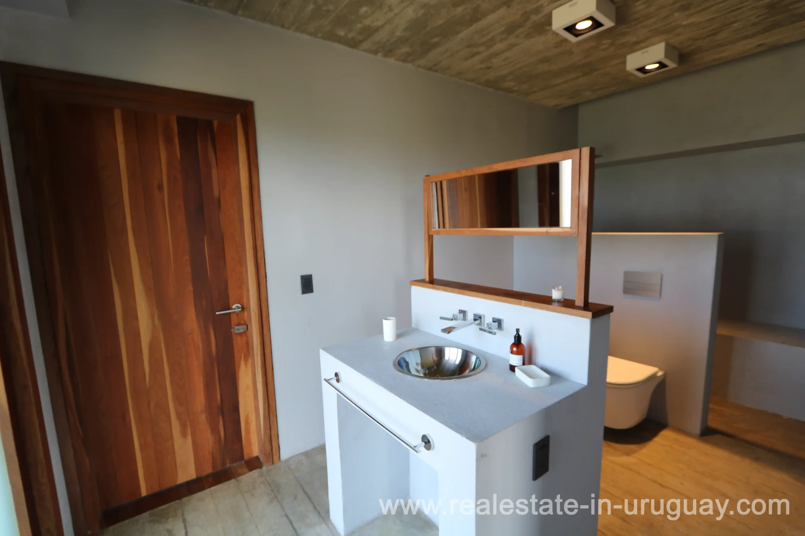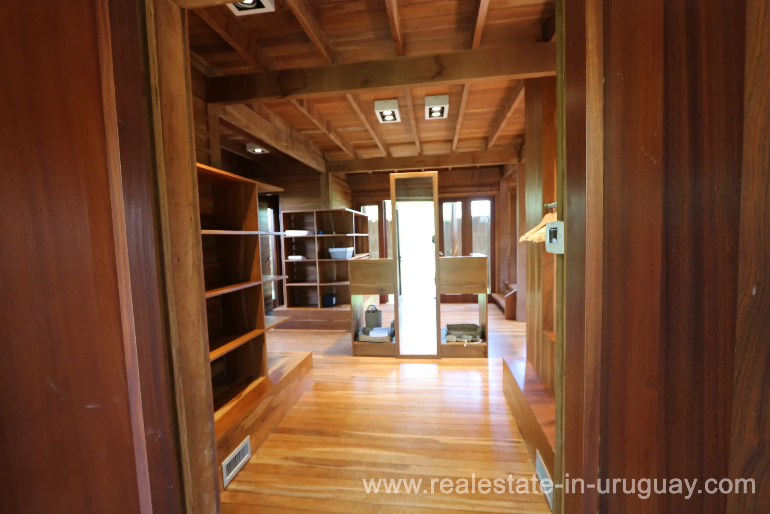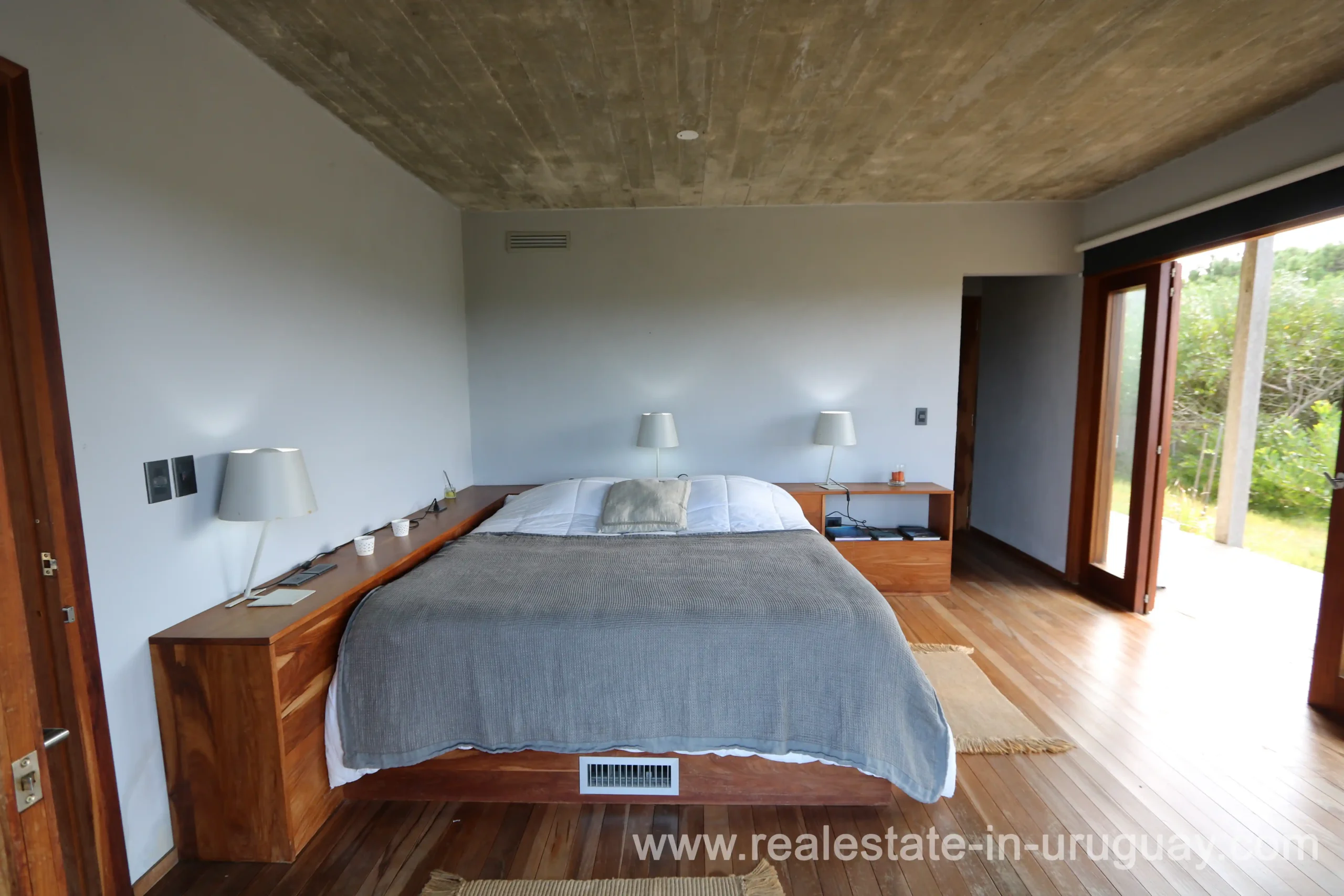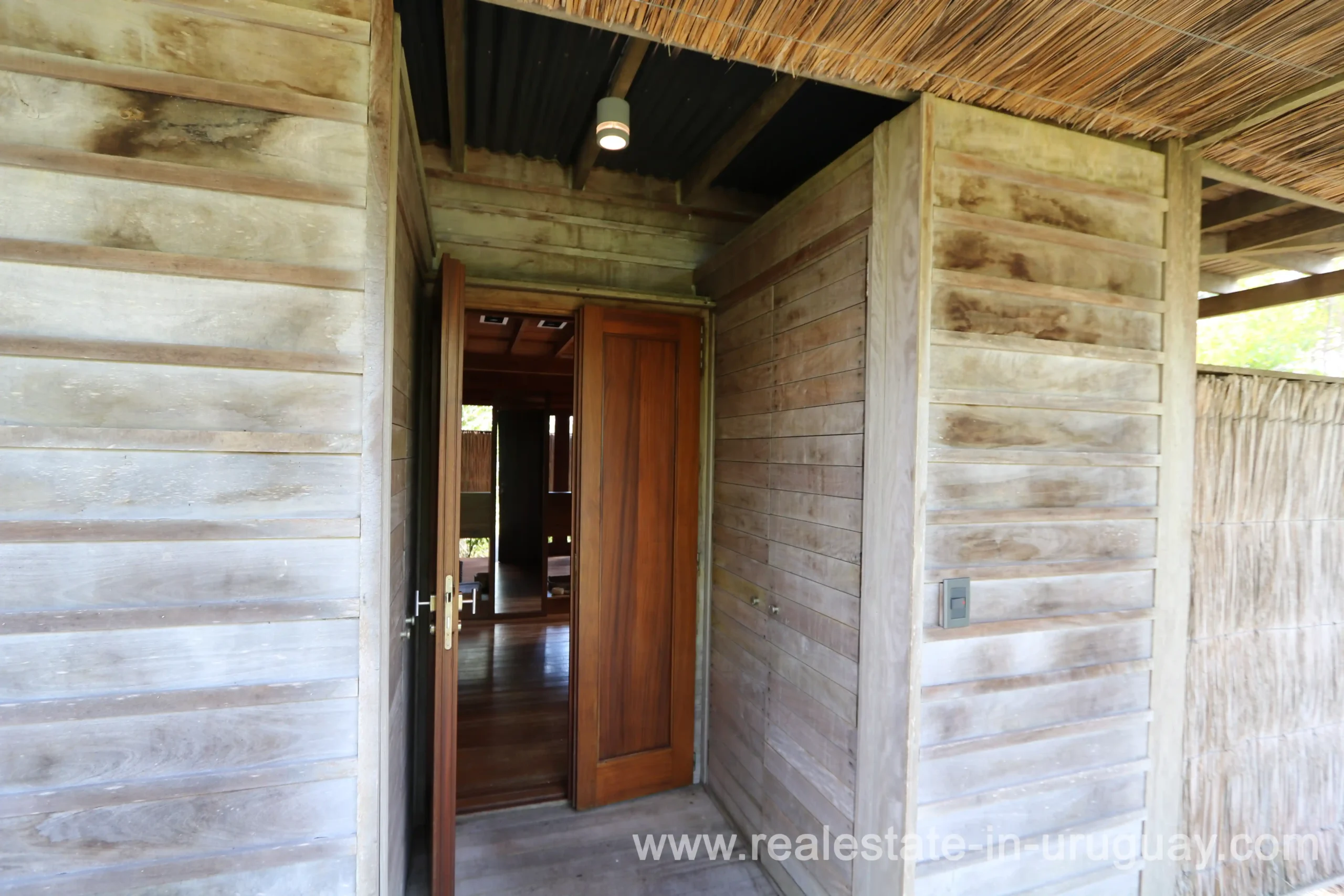 Gerade um 25% reduziert! Dieses Strandhaus in San Antonio bei La Pedrera wurde von dem renommierten Architekten Farina entworfen und befindet sich in der Ferienanlage San Antonio zwischen La Pedrera und Cabo Polonio am höchsten Punkt des Strandes mit freiem Meerblick. Das Haus mit Strohdach ist fast vollständig aus Lapacho-Holz mit Mahagoni-Türen und -Fenstern gebaut und verfügt über einen Garten mit einheimischen Pflanzen, was es äußerst praktisch und wirtschaftlich macht. Das 2013 erbaute Haus besteht aus zwei Einheiten, die über einen breiten und überdachten Lapacho-Holzsteg miteinander verbunden sind. Der obere Teil der Haupteinheit umfasst die sozialen Bereiche: professionelle Küche, Bar, Wohnzimmer, formelles Esszimmer, tägliches Esszimmer und darüber hinaus ein privates Wohnzimmer. Es handelt sich um einen offenen Bereich von 180 m2, der von großen Fenstern umgeben ist, die sich im Sommer zur vorderen Terrasse und zum hinteren Schwimmbad hin öffnen, um die Räume und Innenbereiche zu erweitern und ein Gefühl von Komfort zu vermitteln. Der untere Teil der Haupteinheit besteht aus vier geräumigen Schlafzimmern, alle mit Meerblick, drei Badezimmern, einem Maschinenraum und einem Waschraum. In der kleineren Einheit befindet sich die Master-Suite mit einem großen Ankleidezimmer und einem atemberaubenden Ausblick. Abgerundet wird das Anwesen durch einen 130 m2 großen Swimmingpool mit Sonnenterrasse, die an einen Teil des Wohnzimmers angrenzt, eine Gaszentralheizung, einen eigenen Brunnen, einen offenen Parkplatz für mehrere Fahrzeuge und einen Pferdestall. Diese Immobilie ist einzigartig durch ihren eleganten und doch schlichten Stil, ihre Bauqualität, ihre Lage direkt am Strand und ihren Komfort direkt am Meer. Ein besonderes Haus, um unglaubliche Ferien in einer ruhigen, friedlichen Gegend zu verbringen, umgeben von Sanddünen und dem Meer. Die Stadt La Pedrera mit ihren vielen Restaurants und Geschäften ist nicht weit entfernt.