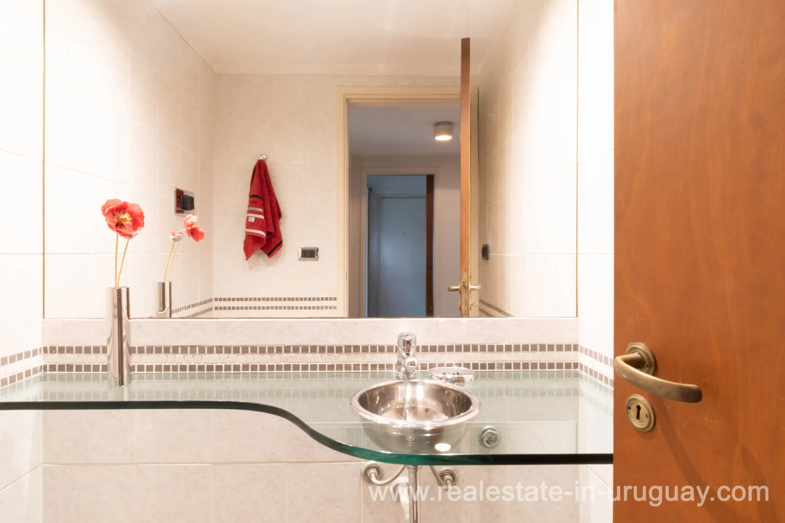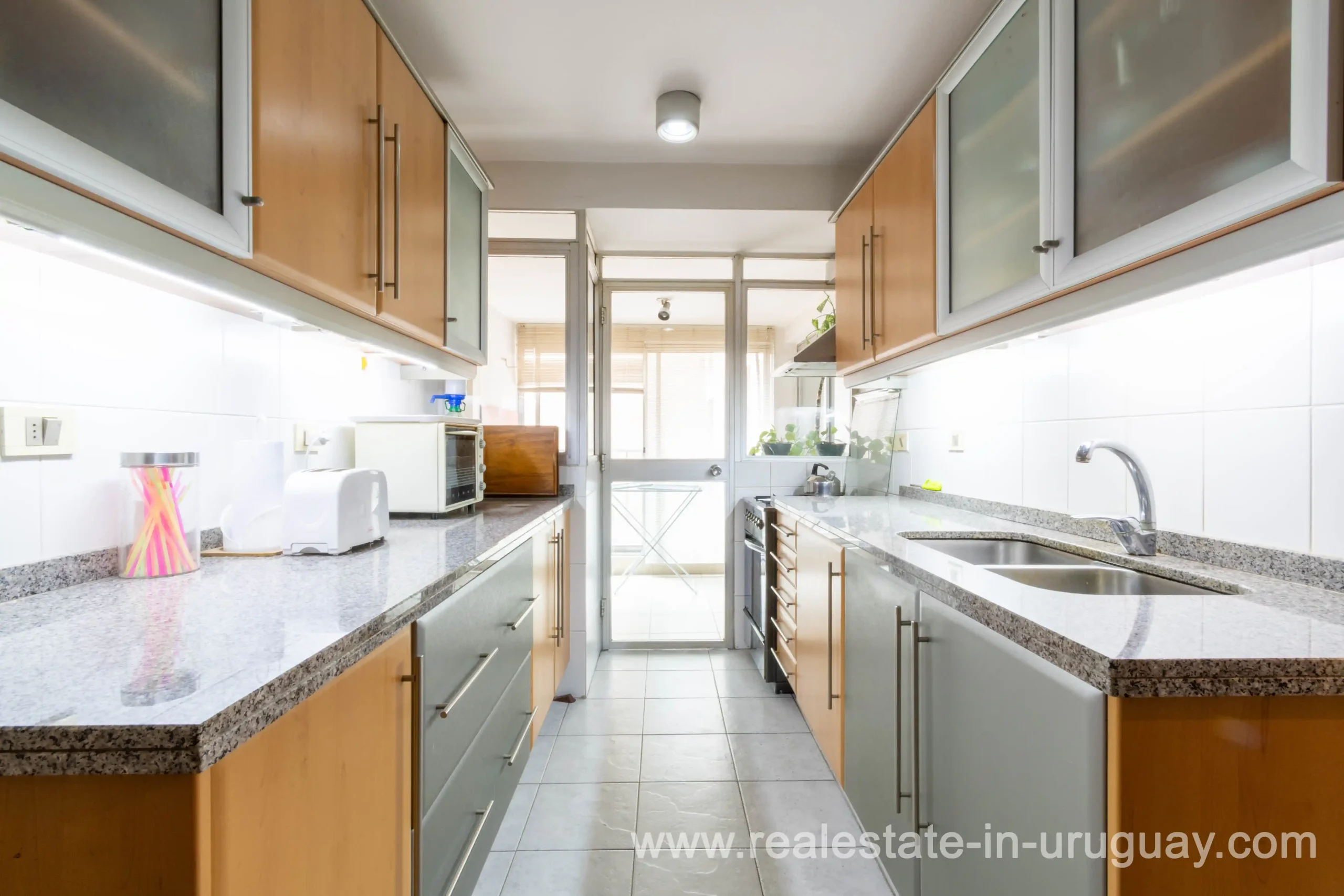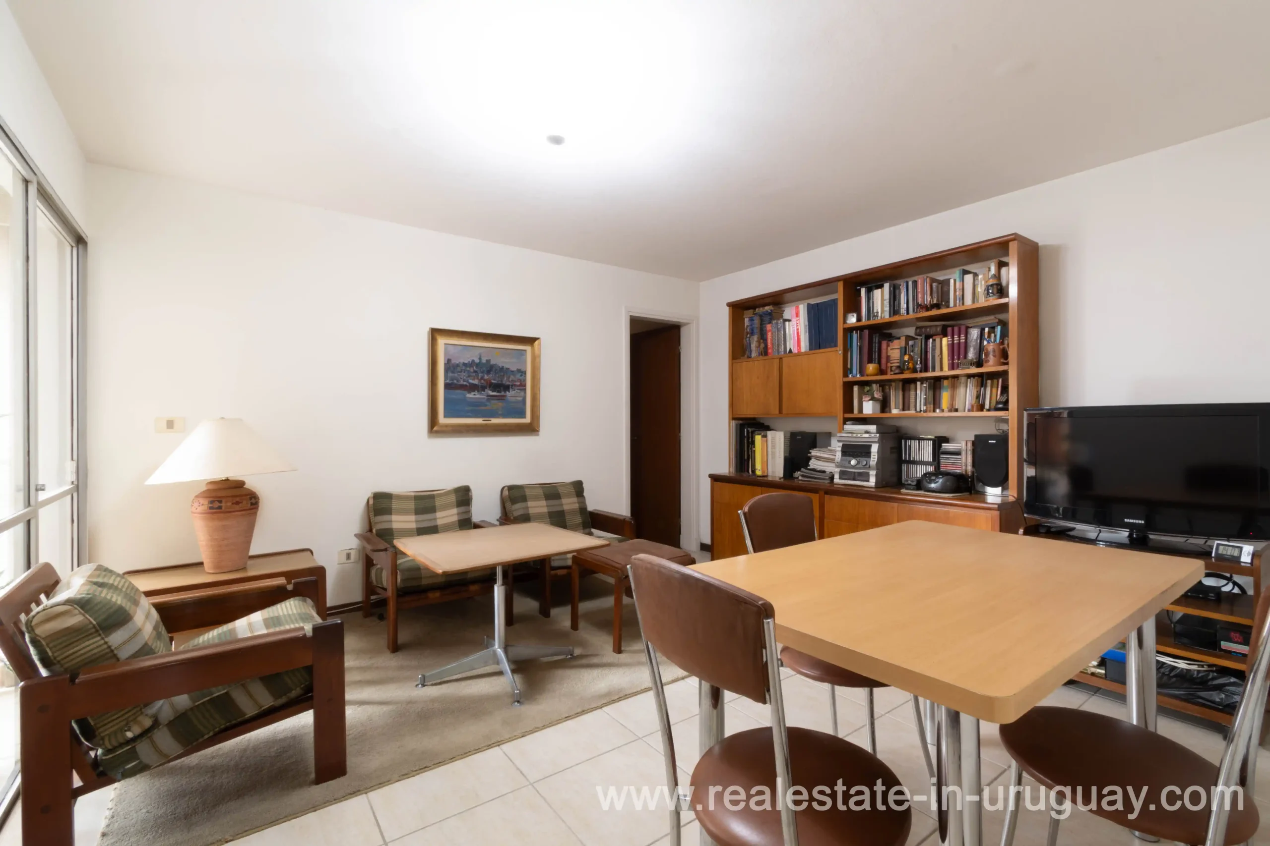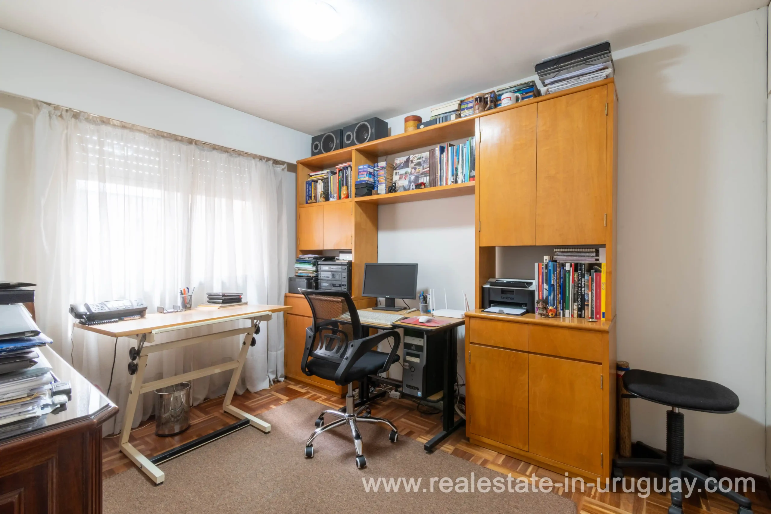 Geräumige und helle Wohnung im Herzen von Punta Carretas, mit wunderschönem Blick auf den Villa Biarritz Park in einer ruhigen, grünen Umgebung. Beim Betreten durch die Haupttür empfängt Sie ein großes Wohn- und Esszimmer von über 7 Metern Breite, mit Fenstern, die einen freien Blick auf den Park bieten und den Raum mit natürlichem Licht durchfluten. Die Parkettböden, in ausgezeichnetem Zustand, verleihen dem Interieur Wärme. Vom Wohnzimmer aus gelangen Sie auf einen 9 m² großen Balkon, ideal zum Entspannen und Genießen des Grüns im Freien. Das Hauptschlafzimmer, ebenfalls zur Vorderseite ausgerichtet und sehr hell, verfügt über ein eigenes Bad und einen separaten begehbaren Kleiderschrank. Ein Flur verbindet zwei Hauptbereiche: a) die Küche, die mit der Waschküche verbunden ist und einen Grillbereich sowie das Dienstmädchenzimmer und -bad umfasst; b) ein Ess- oder Mehrzweckraum, ebenfalls mit dem Grillbereich verbunden, nutzbar als Bibliothek, TV-Zimmer oder Spielbereich. Von diesem Bereich aus gelangen Sie zu den beiden hinteren Schlafzimmern, beide mit Außenfenstern, Einbauschränken und natürlichem Licht, die sich ein komplettes Badezimmer teilen. Die Wohnung umfasst eine leicht zugängliche Garage, mit der Option, einen zweiten Parkplatz anzumieten.