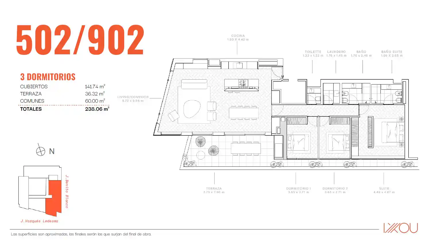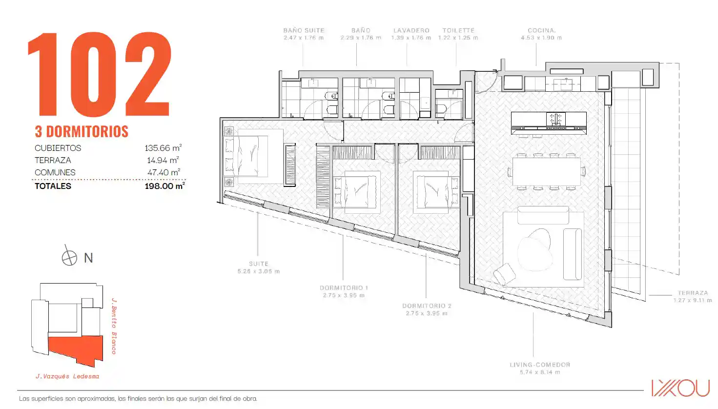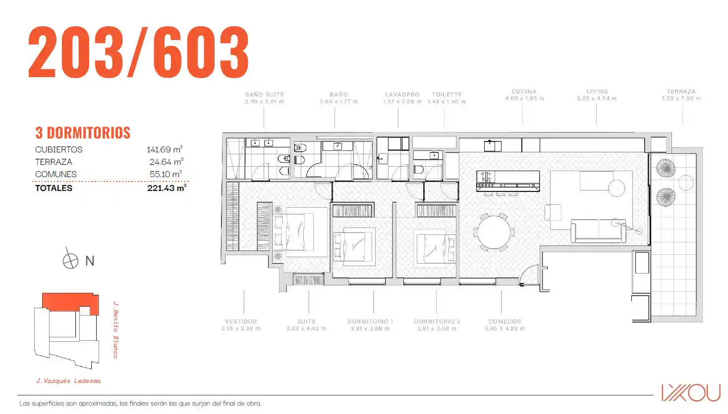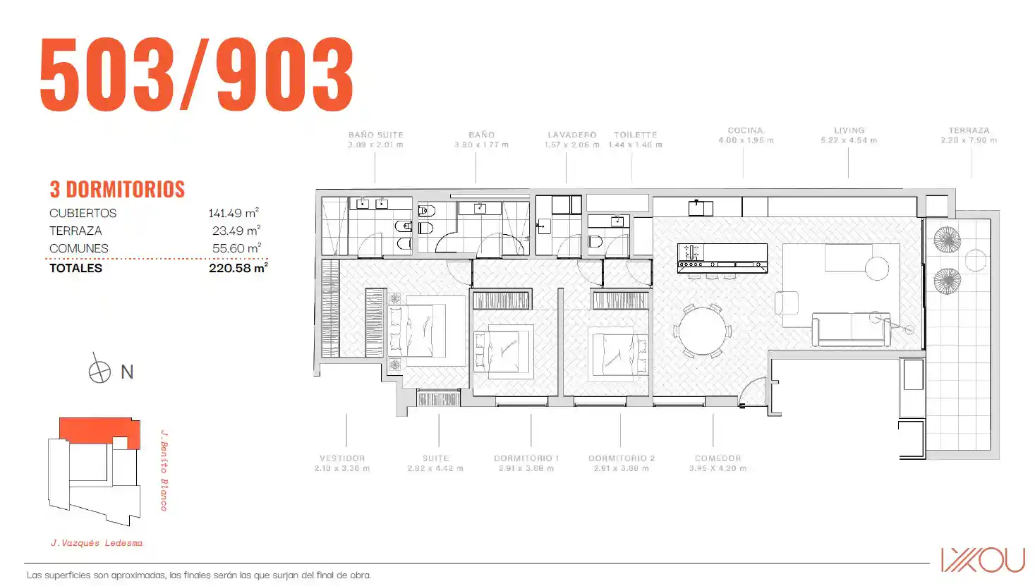 Verfügbare Einheiten: – Einheit 1002 – Gesamtfläche: 299 m² – Preis: 1.749.700 US$ Wohn-Essbereich mit einem 20 m² großen Balkon, separater Küche und Hauptsuite mit Blick auf den Park. Die zweite Suite und die restlichen beiden Schlafzimmer sind zur Benito Blanco ausgerichtet. – Einheit 1302 – Gesamtfläche: 331 m² – Preis: 1.985.800 US$. Sie hat den gleichen Grundriss wie Einheit 1002, verfügt jedoch über eine 37 m² große Eckterrasse, die zusätzlich zum Wohnbereich auch die drei Schlafzimmer zur Benito Blanco hin abdeckt. Garagen sind nicht im Preis inbegriffen und ab 45.000 US$ erhältlich. Das Projekt befindet sich derzeit im Bau, die Fertigstellung ist für Juni 2027 geplant.
