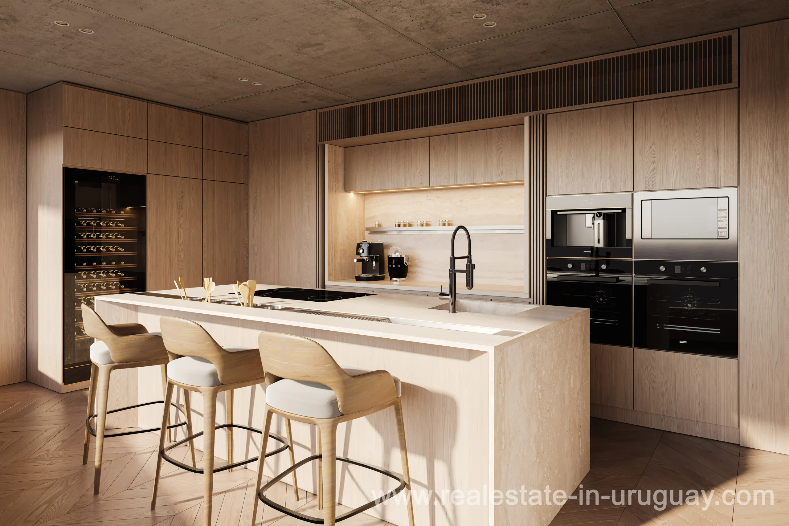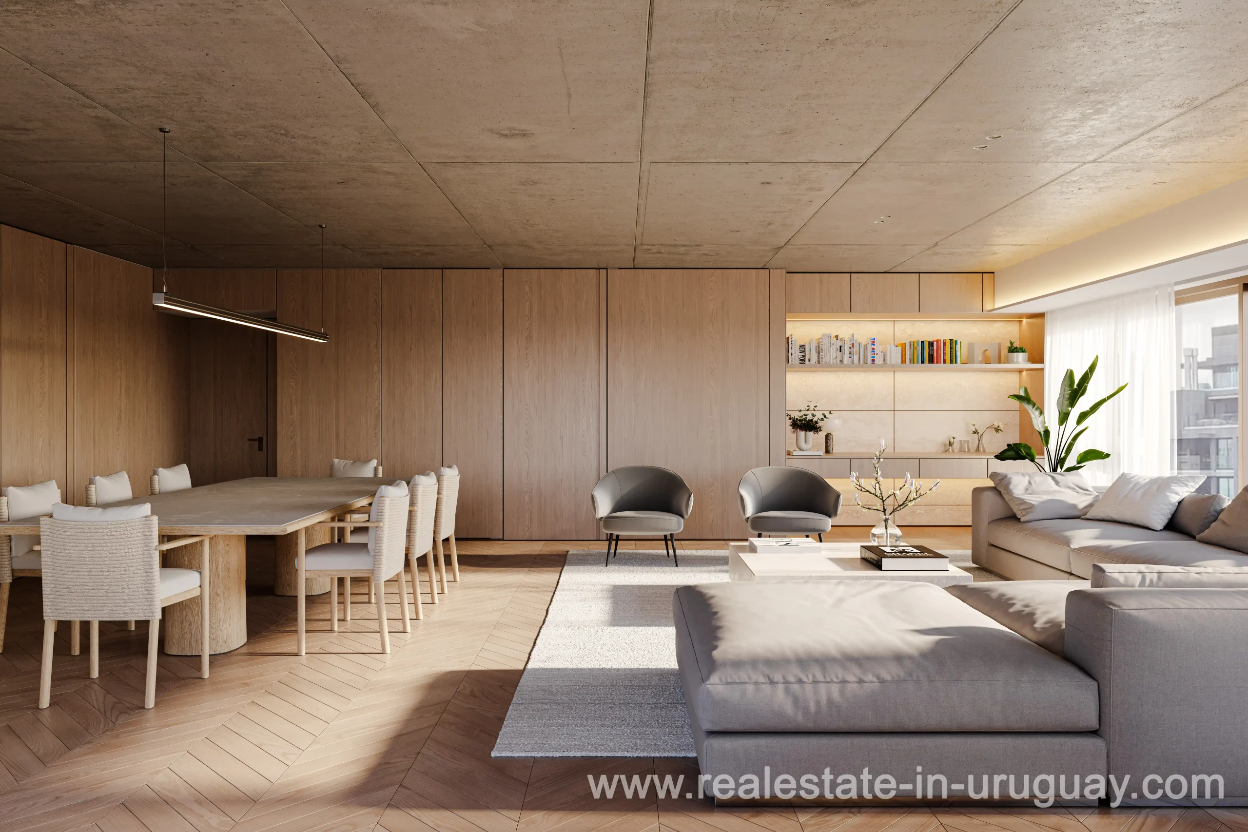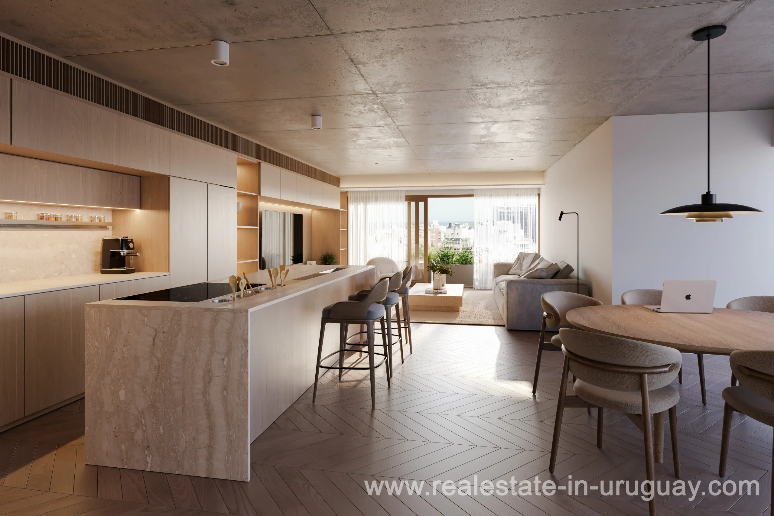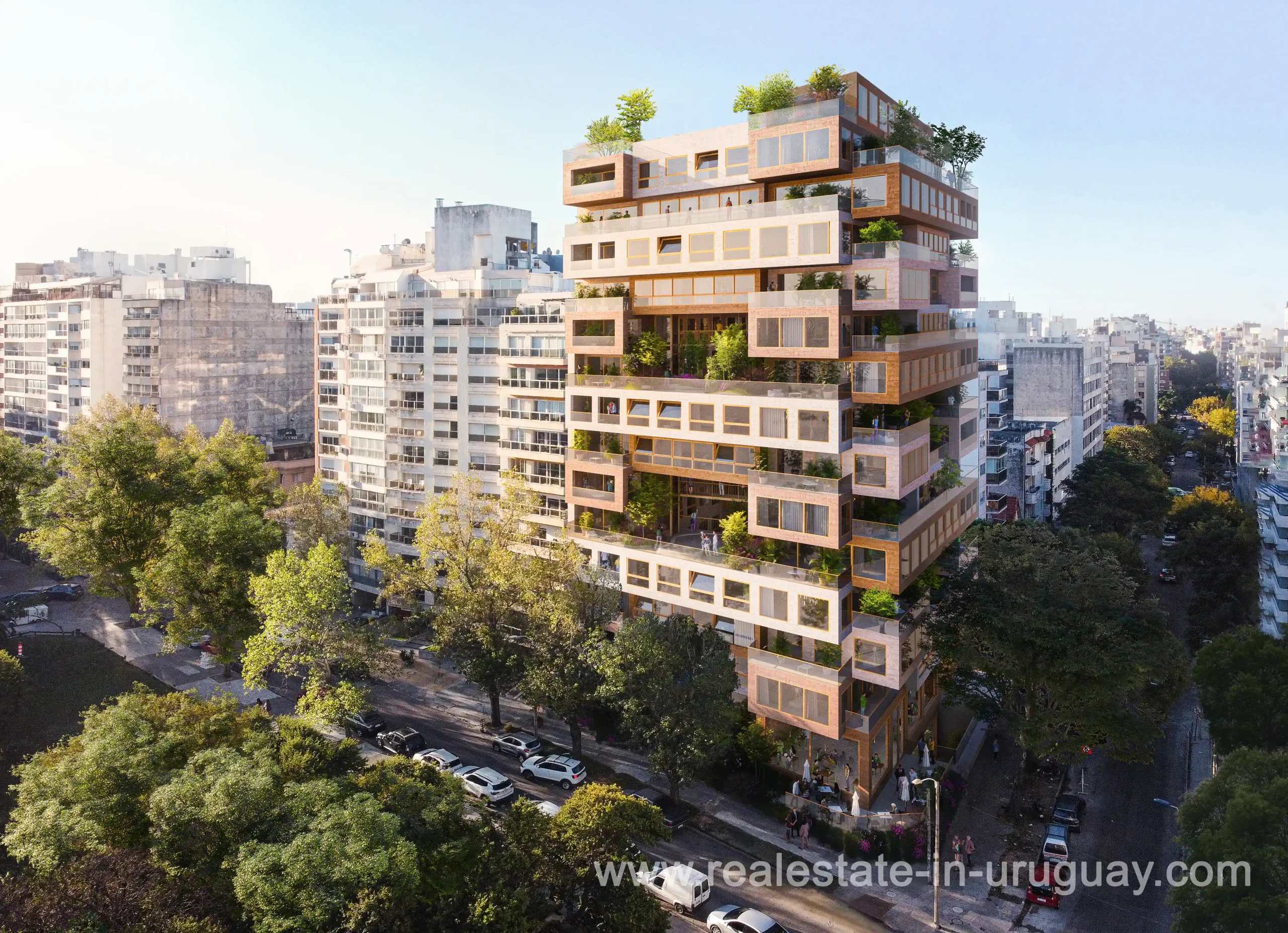 Direkt gegenüber dem Villa Biarritz Park und nur einen Block von der Promenade entfernt, ist ZIEL ein Projekt, wie es bisher in unserer Stadt noch nicht zu sehen war. Es genügt zu erwähnen, dass es das erste Projekt von MVRDV in Südamerika ist, um seine einzigartige Handschrift zu würdigen. MVRDV, ursprünglich aus den Niederlanden, ist eines der weltweit führenden Architekturbüros mit Niederlassungen in Rotterdam, Berlin, Paris, New York und Shanghai, wo mehr als 300 Architekten, Designer und Stadtplaner an multidisziplinären Projekten zusammenarbeiten. Sie sind weltweit führend in zeitgenössischer Architektur, zukunftsweisender Stadtplanung und Projektentwicklung, die Nachhaltigkeit und Innovation im Bauwesen fördert. Aus diesem kreativen Zentrum heraus zeichnet sich das Design von ZIEL durch eine große Öffnung in der Mitte des Gebäudes und vier Gärten aus, die auf verschiedenen Etagen verteilt sind und eine Symbiose aus Vegetation und natürlichem Licht zwischen dem Park und dem Turm schaffen. Mit vier Untergeschossen und 14 Wohneinheiten wird ZIEL einen entspannten und gesunden Lebensstil in Montevideo bieten. Es wird insgesamt 40 Einheiten mit 3- und 4-Schlafzimmer-Einheiten geben, deren Flächen von 151 m² bis 331 m² reichen und die alle einen Grillbereich umfassen werden. Zusätzlich zu den Gärten umfasst die Ausstattungsliste beheizte Innen- und Außenpools, einen Fitnessraum, eine Sauna, ein Clubhaus und einen Loungebereich mit Feuerstelle. Typologie 02 (4 Schlafzimmer) Die Einheiten 02 von ZIEL sind 3- und 4-Schlafzimmer-Einheiten.