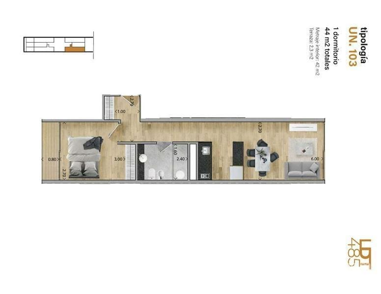In the heart of Punta Carretas, at 520 Luis de La Torre Street, a 4-story building in Punta Carretas for housing or offices, with 6 units per floor, 3 facing the street and 3 facing the back. The units at the ends of each floor have a defined bedroom, bathroom, and living room with integrated kitchen. There would be 16 of these units and in the center of them on each level, there would be a single room. The sizes of the terraces and commercial spaces change a little per floor, which can be seen in the photos. Being a building under construction, there is the possibility of annexing two units and configuring a two or even 3 bedroom unit per level.