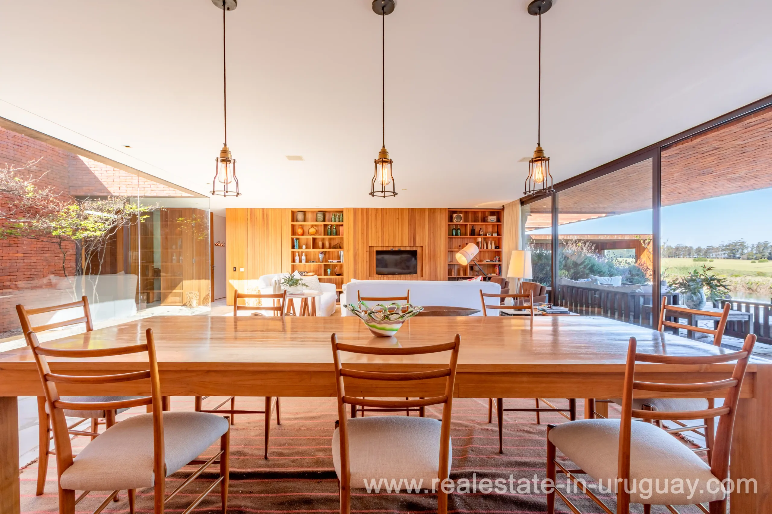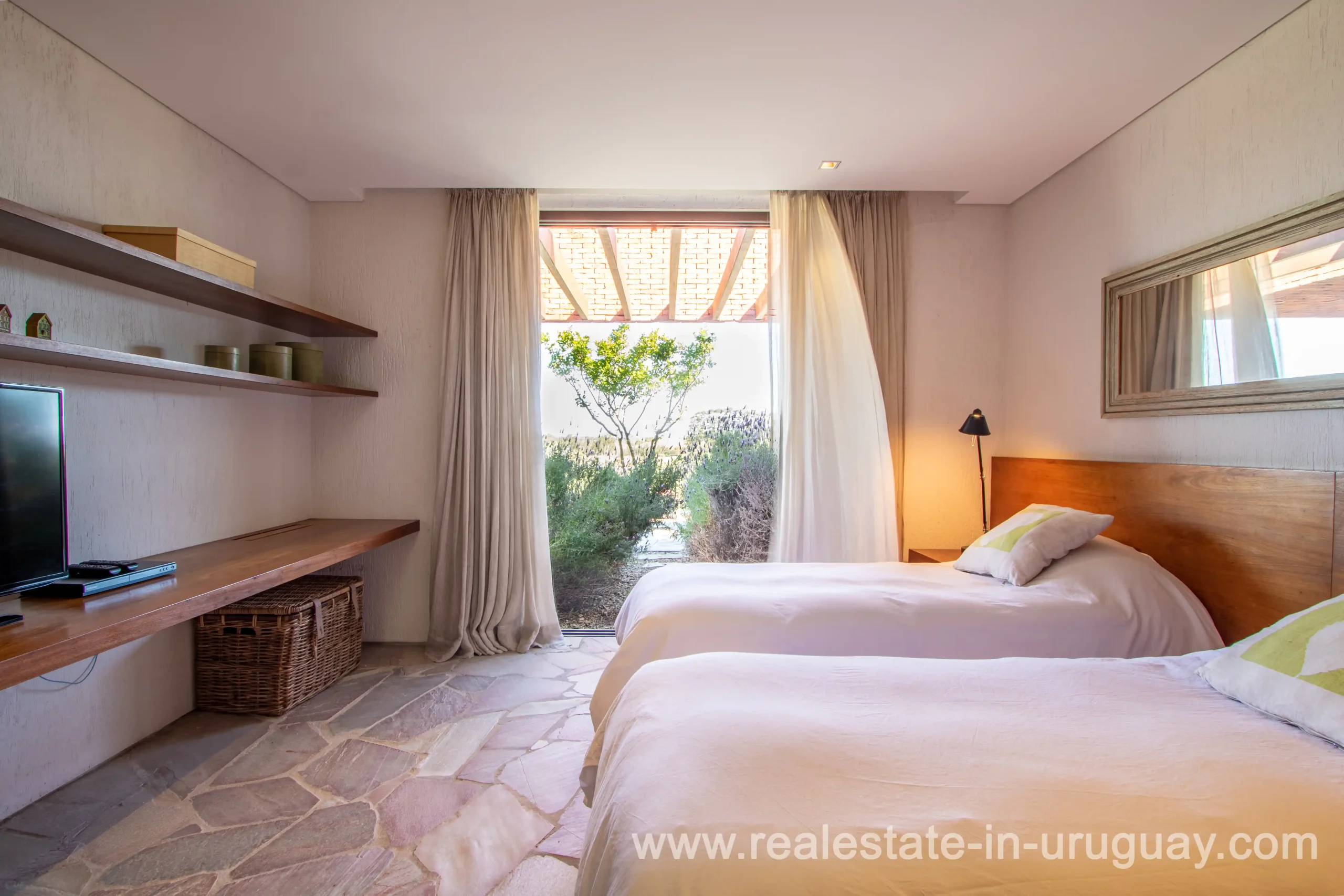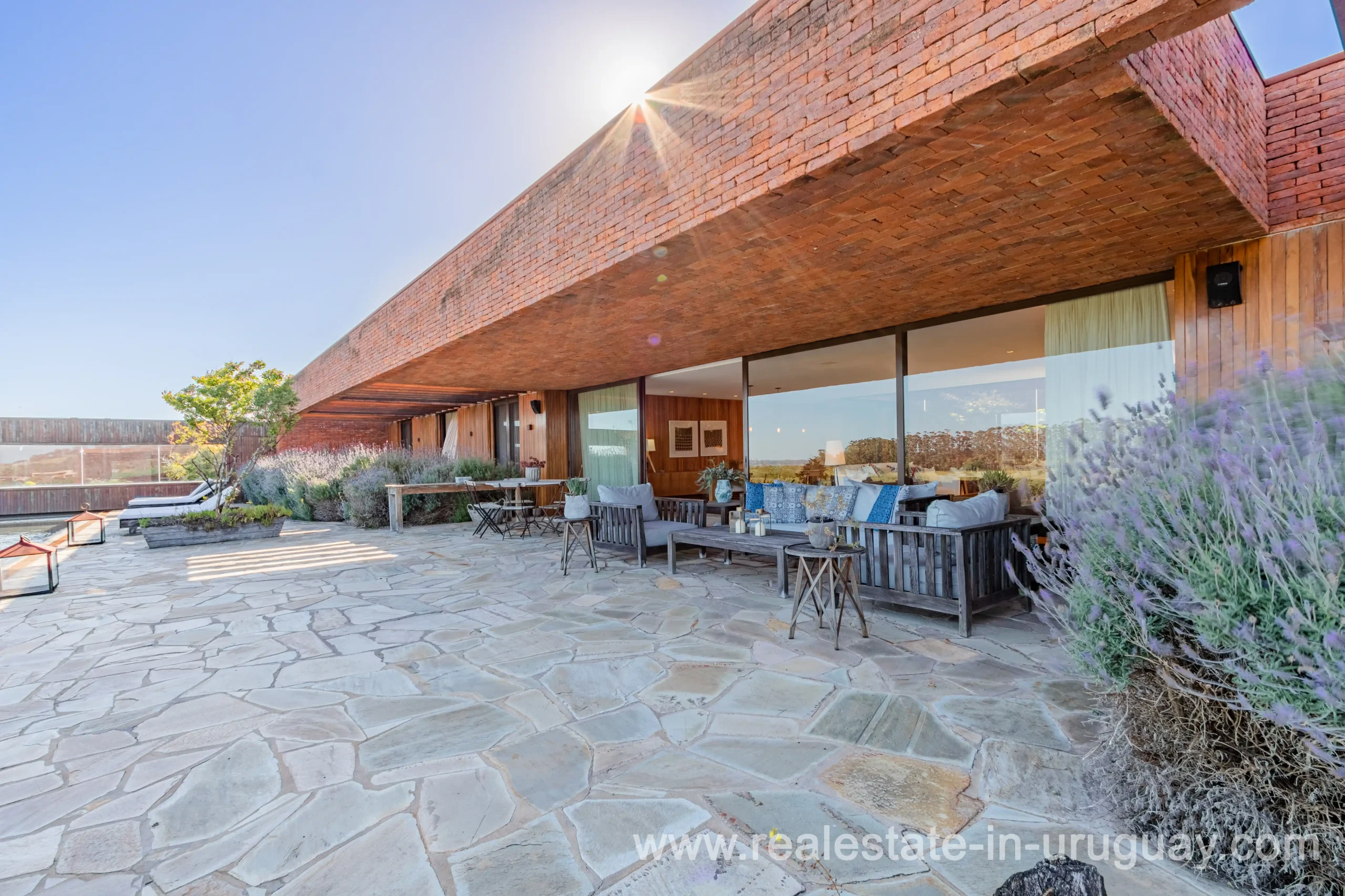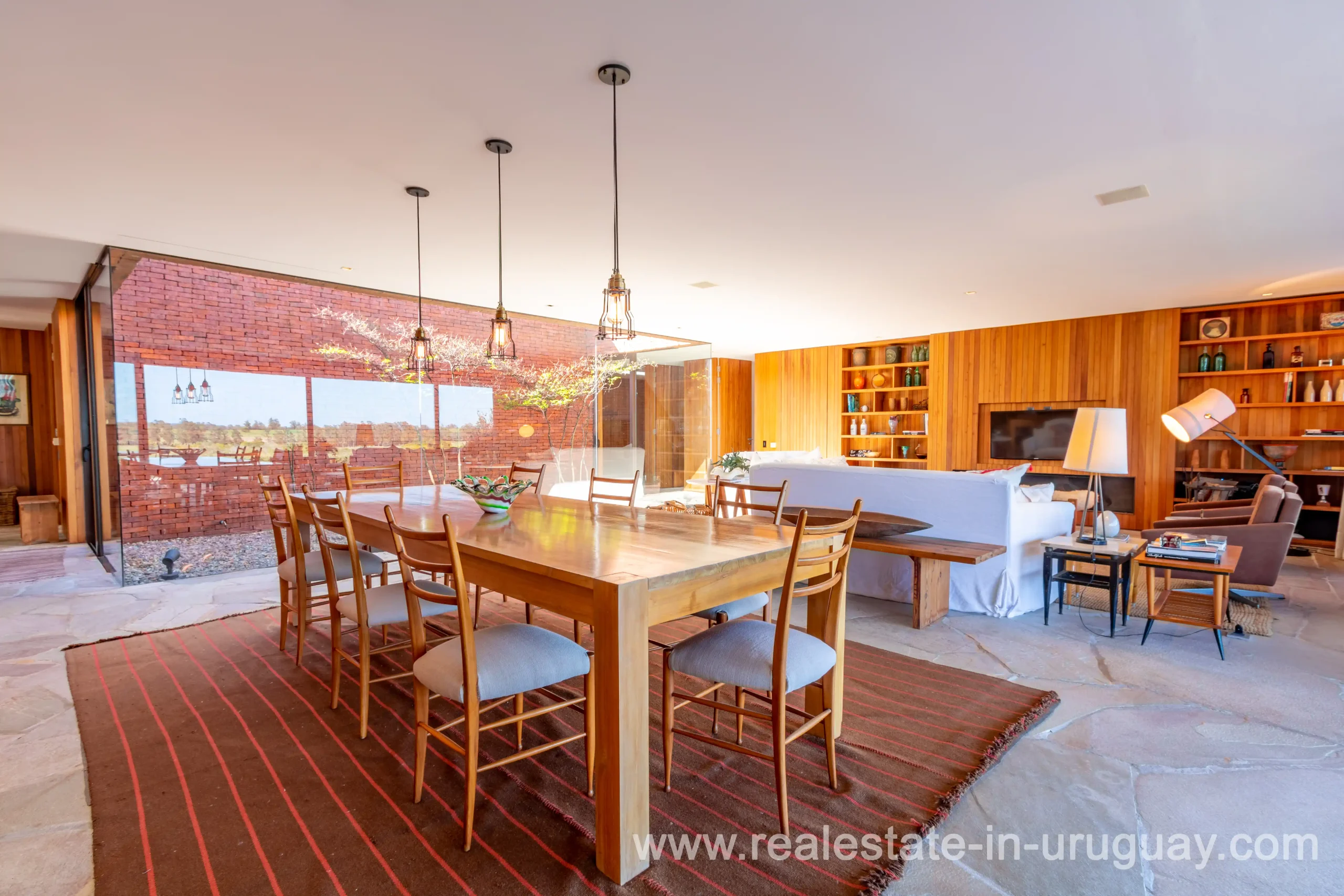 This new bright and modern amazing villa in Fasano is located in one of the best private communities in Uruguay, ‘Las Piedras’, with all kinds of amenities, security and a five star hotel with renowned restaurant. The property is on a golf course designed by Arnold Palmer and affords open views to the lovely landscape. Characterized as much for its architectural design as for its interior, it features quality finishes combining materials such as stone, brick and Lapacho wood. On a single story, all rooms in the property enjoy access to outdoors and are bright and spacious thanks to large windows and interior gardens as well as skylights which allow natural light into all rooms. The property comprises a large living/dining room, kitchen, spacious master suite, three further suites, outdoor terrace with BBQ/grill, dining room and covered living room, sauna, large swimming pool with sun deck, storage area and double garage plus a golf buggy. The staff bedroom is next to the utility area and has a separate entrance. The house is decorated fully equipped with underfloor heating and air conditioning in all rooms. The complex offers its own hotel service and has a horse-riding area with stables, heliport, tennis court, kids’ club, sauna, heated swimming pool, etc.