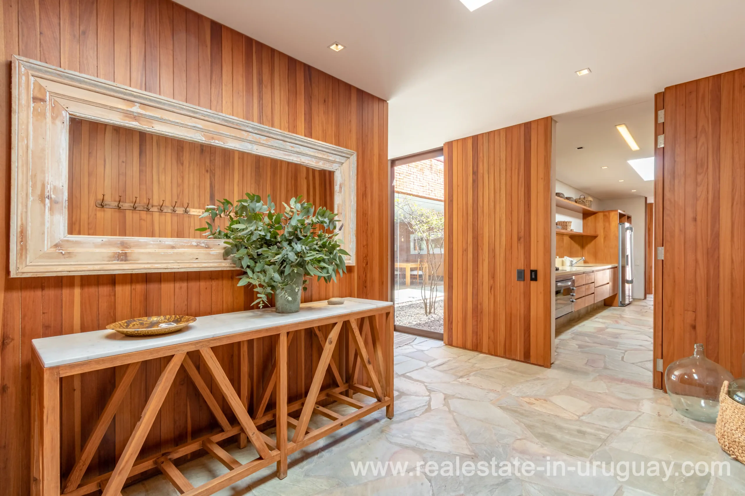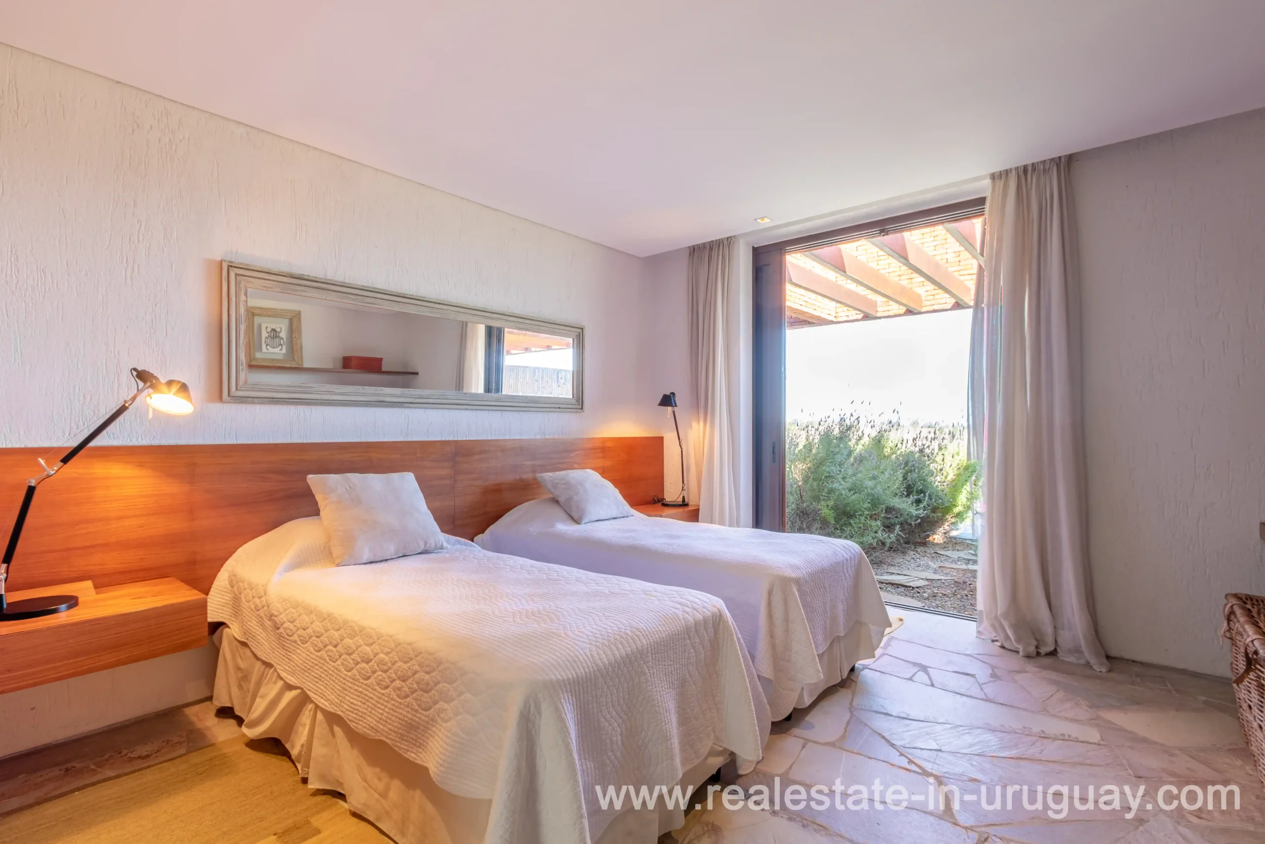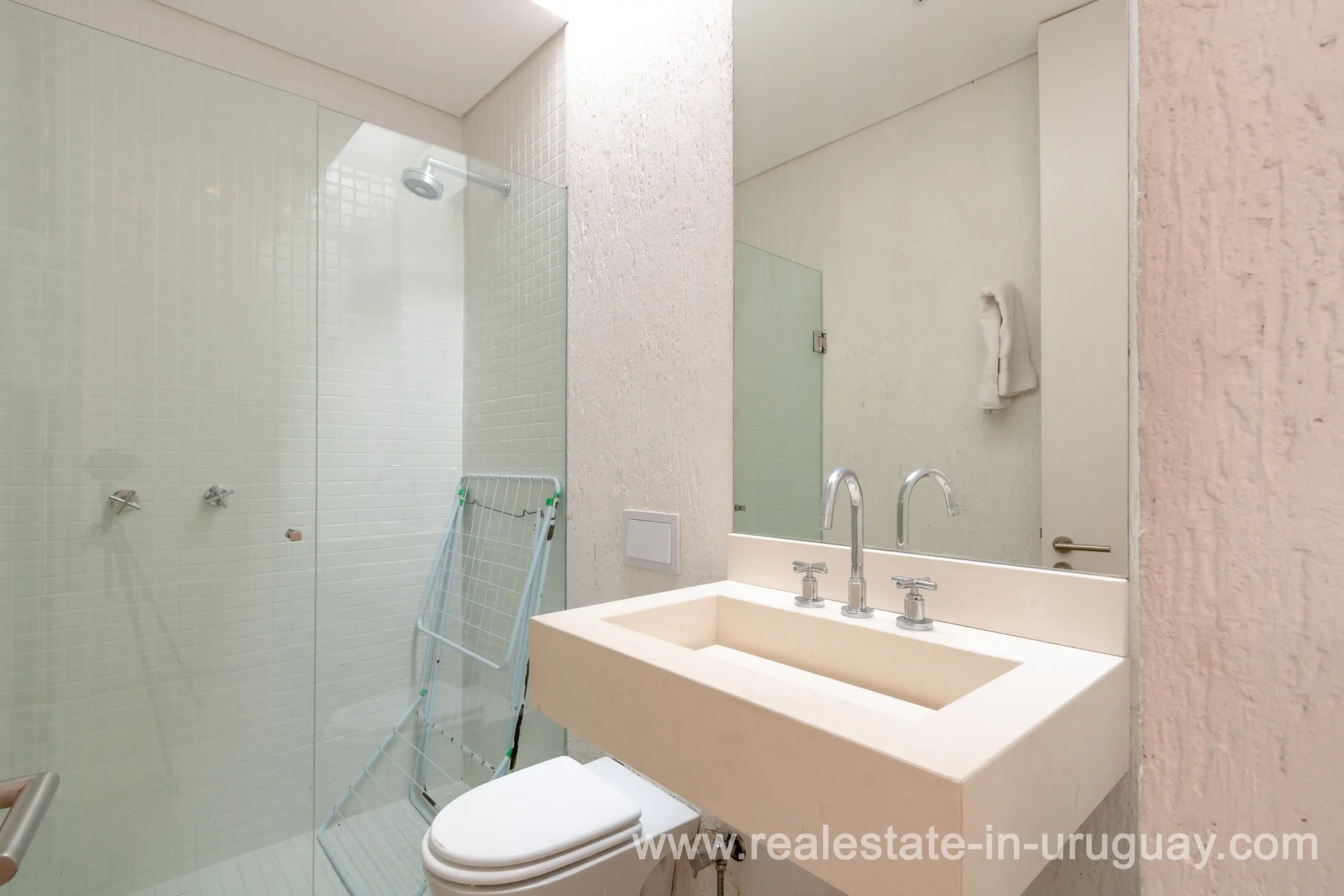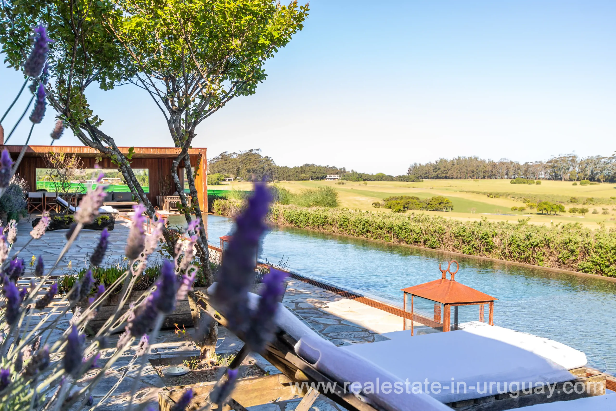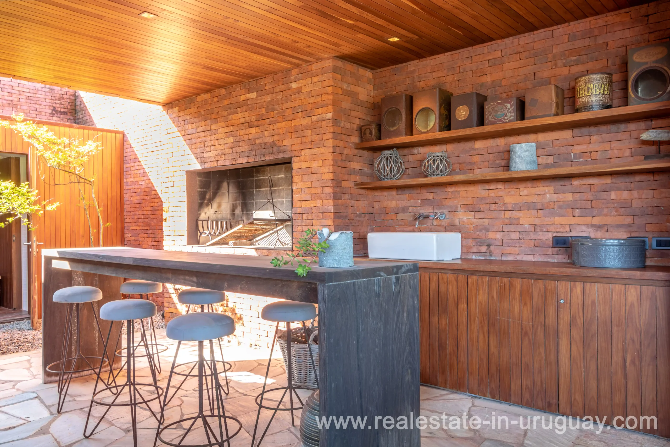 This new bright and modern amazing villa in Fasano is located in one of the best private communities in Uruguay, ‘Las Piedras’, with all kinds of amenities, security and a five star hotel with renowned restaurant. The property is on a golf course designed by Arnold Palmer and affords open views to the lovely landscape. Characterized as much for its architectural design as for its interior, it features quality finishes combining materials such as stone, brick and Lapacho wood. On a single story, all rooms in the property enjoy access to outdoors and are bright and spacious thanks to large windows and interior gardens as well as skylights which allow natural light into all rooms. The property comprises a large living/dining room, kitchen, spacious master suite, three further suites, outdoor terrace with BBQ/grill, dining room and covered living room, sauna, large swimming pool with sun deck, storage area and double garage plus a golf buggy. The staff bedroom is next to the utility area and has a separate entrance. The house is decorated fully equipped with underfloor heating and air conditioning in all rooms. The complex offers its own hotel service and has a horse-riding area with stables, heliport, tennis court, kids’ club, sauna, heated swimming pool, etc.