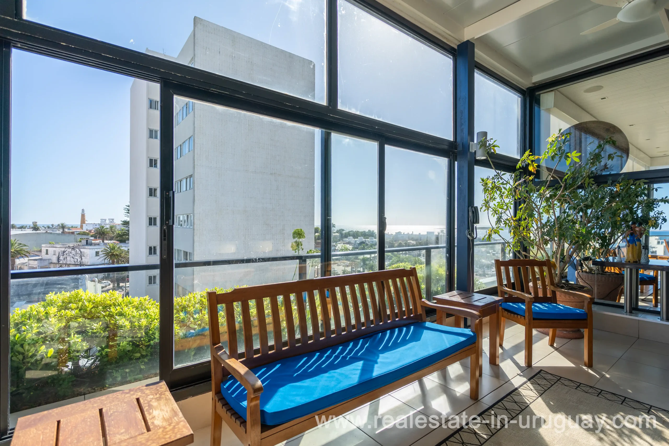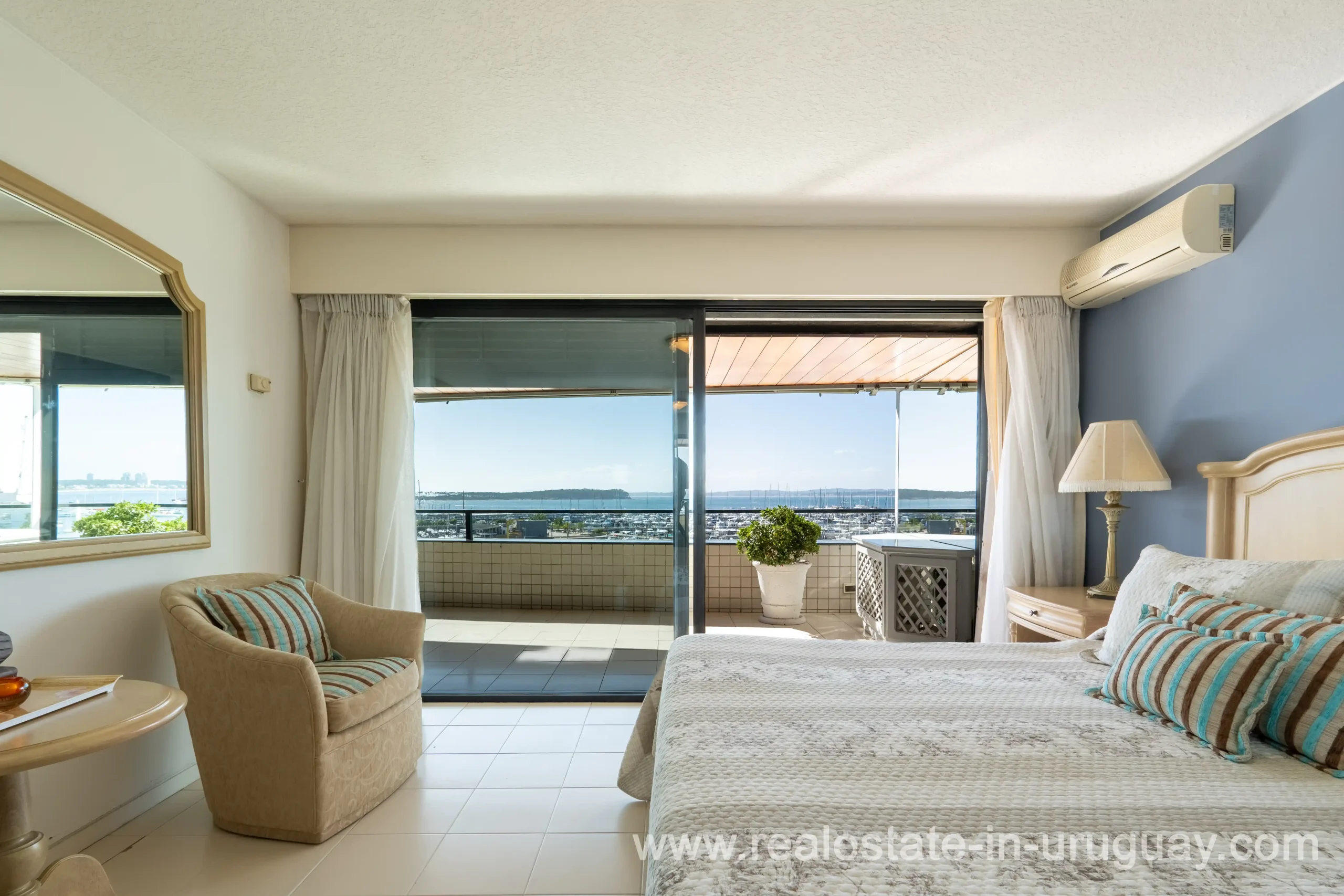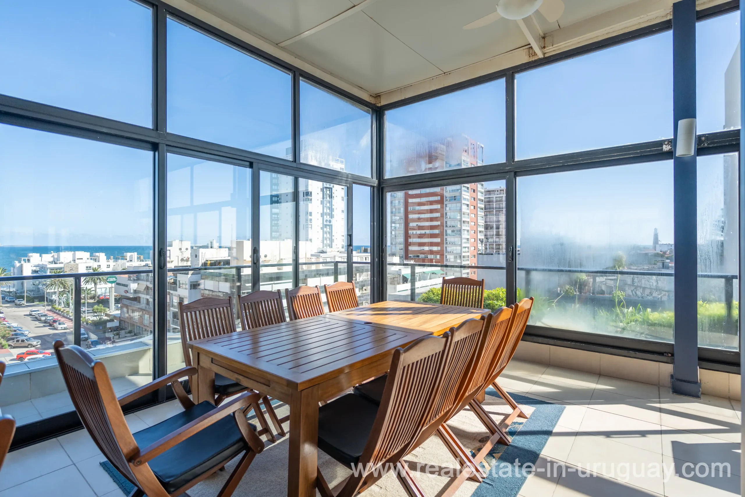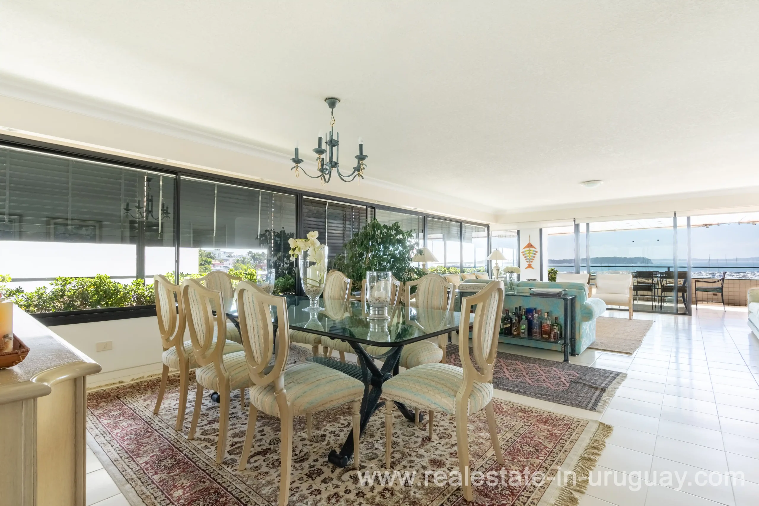 Located opposite the port of Punta del Este, just steps away from all services and restaurants, we find this apartment situated in a classic, high-end building designed by the renowned architect Mario Roberto Álvarez. With a 170 m2 corner floor plan, the front features a spacious living-dining room, which leads to a 30 m2 balcony with spectacular sunset views. Also at the front is the master bedroom with an en-suite bathroom and walk-in wardrobe. Additionally, there are two more en-suite bedrooms, an independent kitchen, a guest toilet, and a service room. All rooms are equipped with underfloor heating. On the building’s rooftop, this unit boasts a large, enclosed barbecue area for exclusive use. It also includes two parking spaces and two storage rooms. Daily housekeeping service and 24-hour reception.