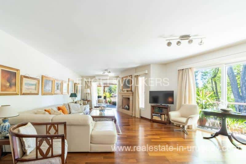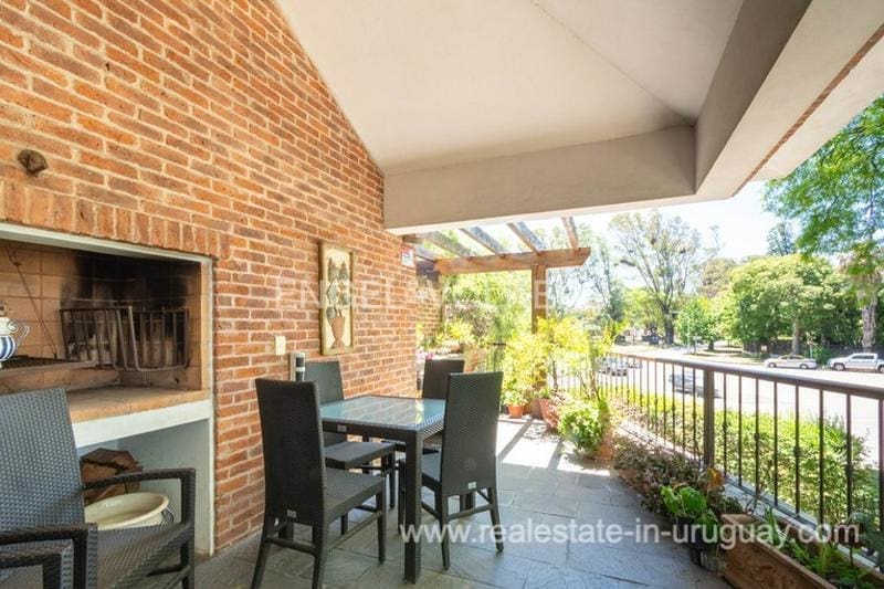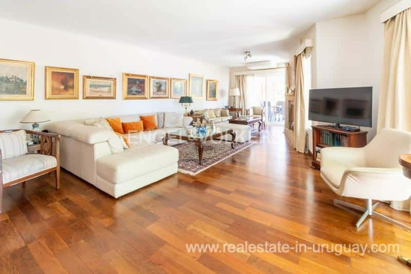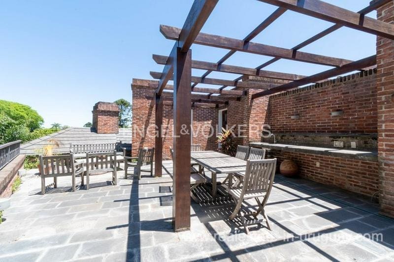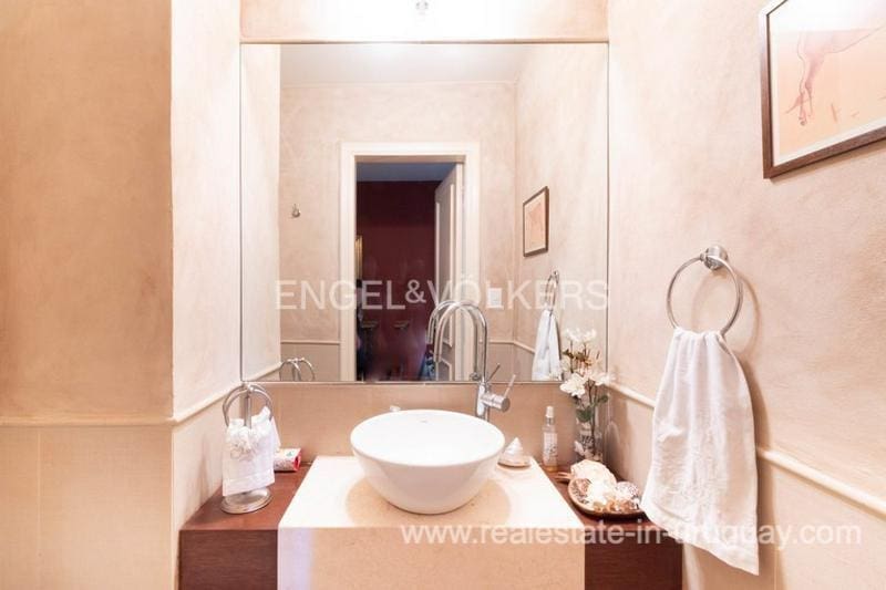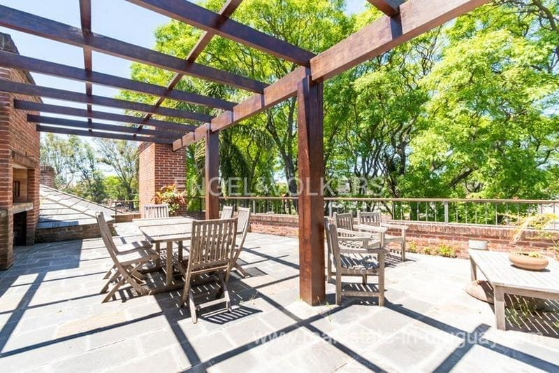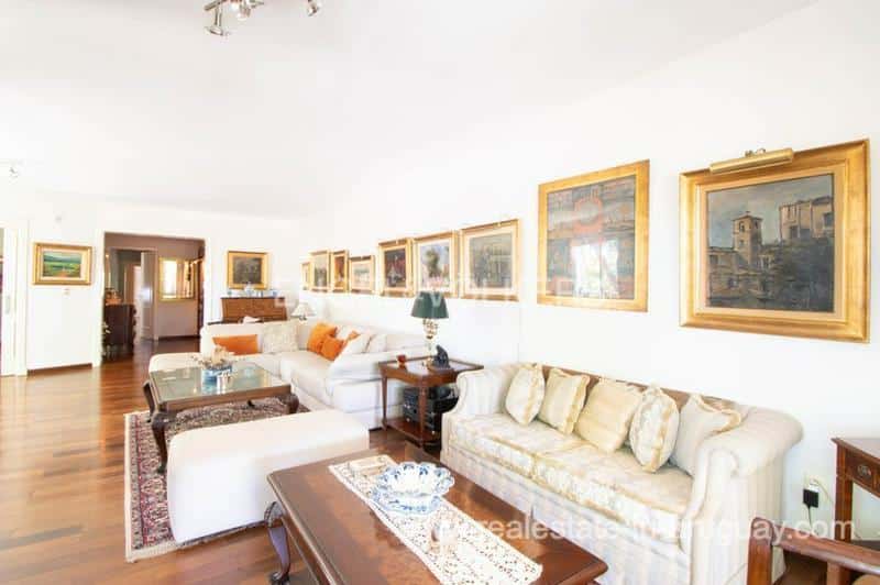 Classic apartment with large terrace in Carrasco for sale with excellent location in Carrasco. It features 301 m2 built: 175 m2 of interior space, 19 m2 of terrace with barbecue, 11 m2 balconies, and a 96 m2 terrace (rooftop) for exclusive use. The apartment offers a reception hall, guest toilet, large living room with a fireplace with access to 2 balconies, and a sunny terrace with barbecue, kitchen, and maid’s bedroom with bathroom (option home desk). In the private area, it comprises 3 bedrooms en suite. Underfloor electric heating and additional air conditioning. Spacious and enjoyable rooftop for exclusive use, with barbecue and pergola. Deposit. Garage for 2 cars. The building offers 24-hour security and video surveillance.