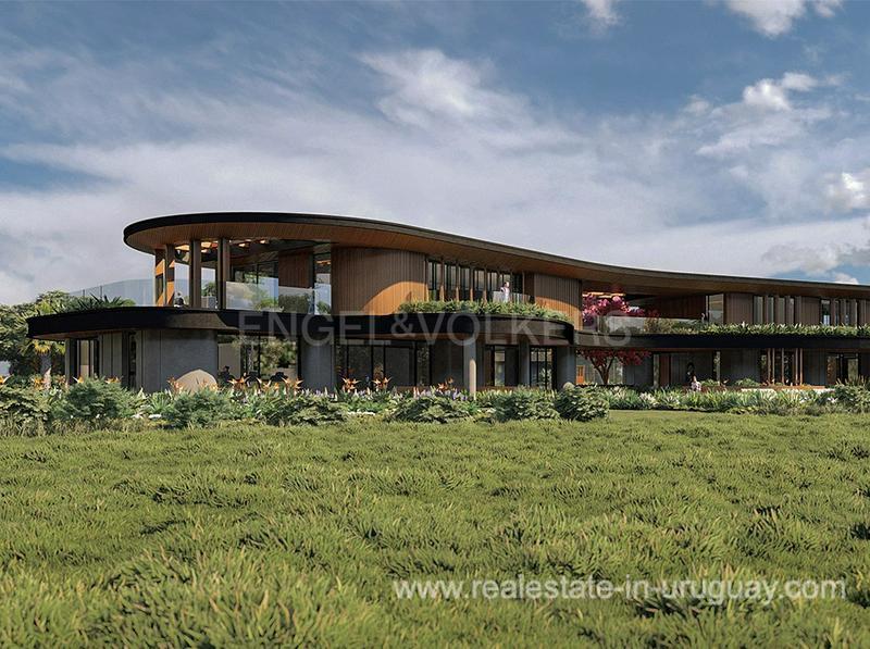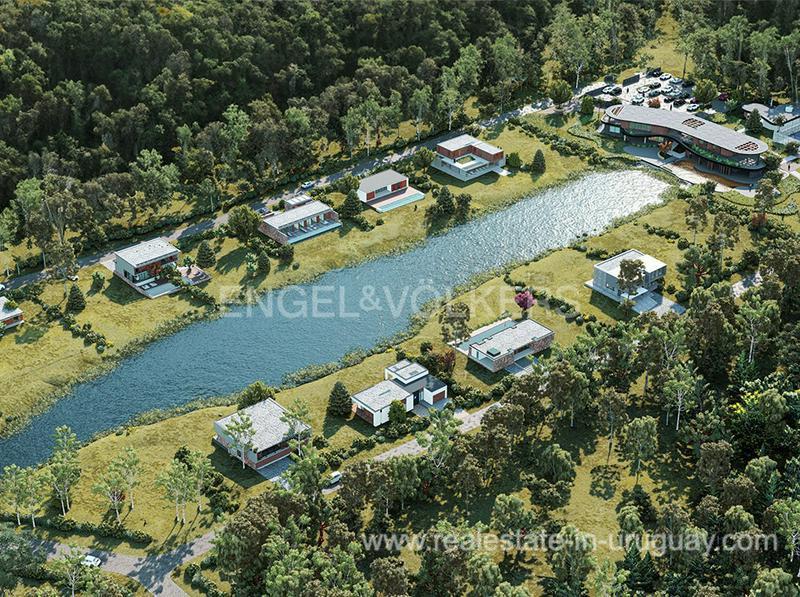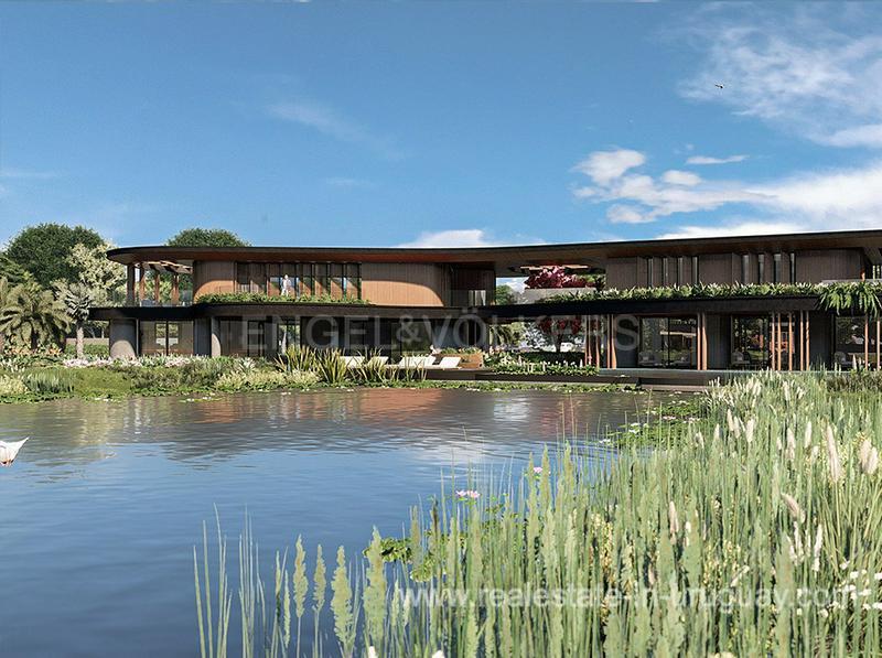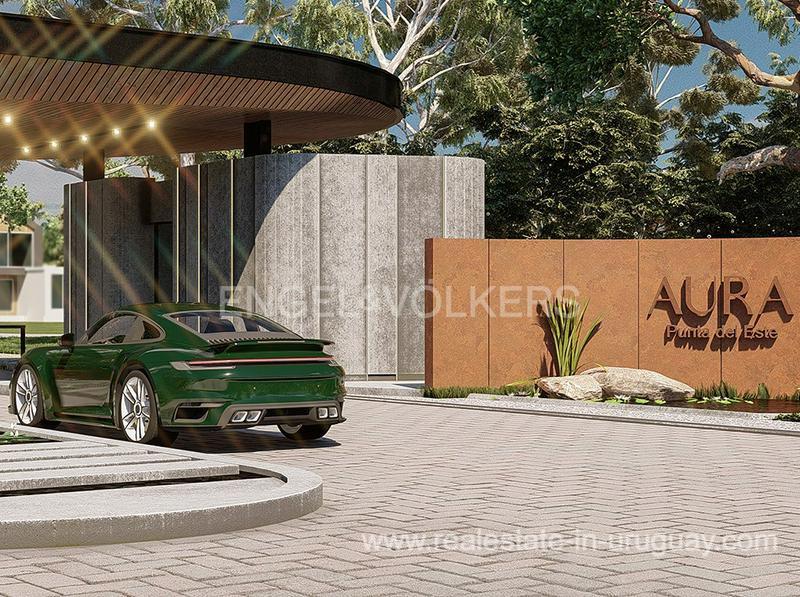 Aura Brava is a unique gated community in Punta del Este with more than 700 linear meters on Cantegril Golf Course, with a strategic location very close to the sea. It is built on a plot of 22 hectares and is designed for those seeking to live at one with nature without losing the comfort of an environment providing the best amenities and full security. Among the amenities we find four natural lagoons, a clubhouse, a heated indoor pool and outdoor pools for adults and children, a gym, a kids club, clay tennis courts, glazed paddle courts, and a shuttle service to the beach, including a sustainability program, thus developing not only productive processes in harmony with and with respect for nature, but also enhancing biodiversity. In addition, it will have a state-of-the-art security service with monitored access control. Shuttle service to the beach, including a sustainability program, thus developing not only productive processes in harmony with and with respect for nature, but also enhancing biodiversity. In addition, it will have a state-of-the-art security service with monitored access control. Within its landscape design, there is an old plantation of various species combined with water holes, roadways, and species characteristics of the area.