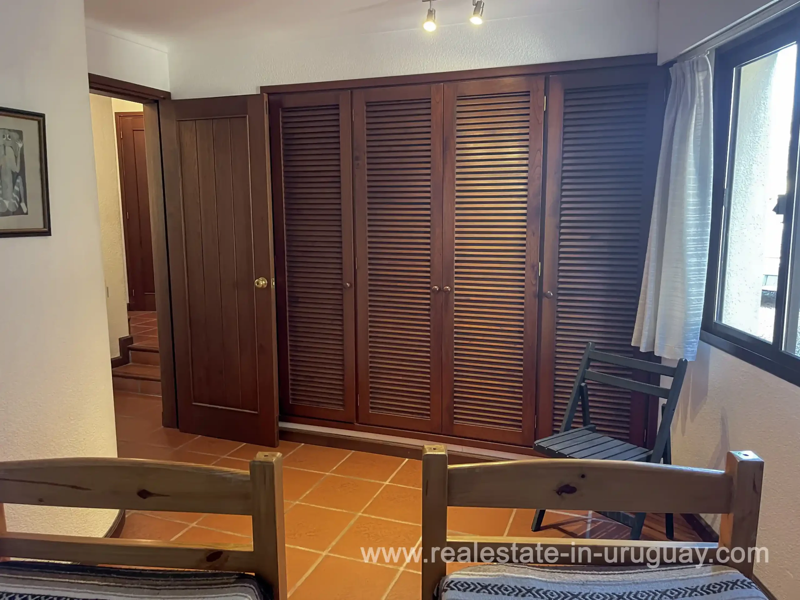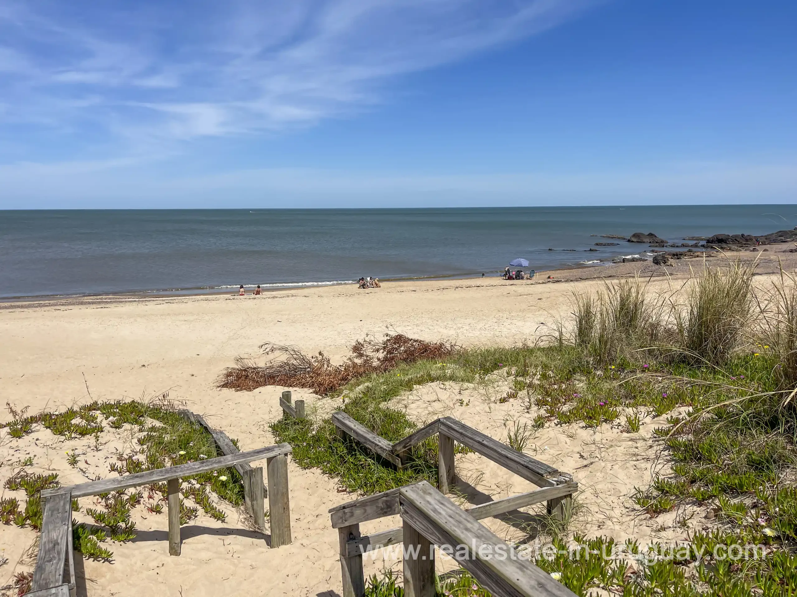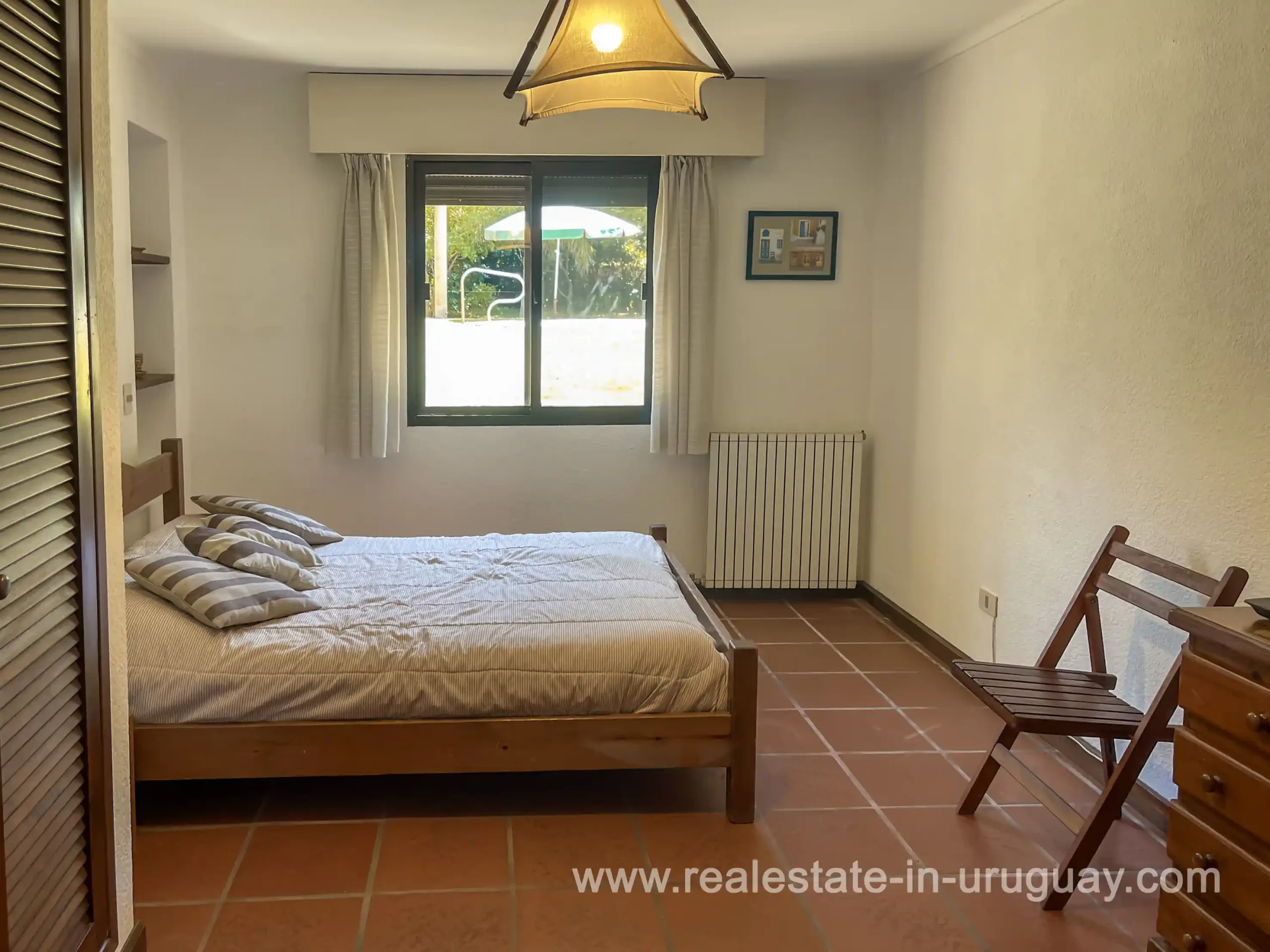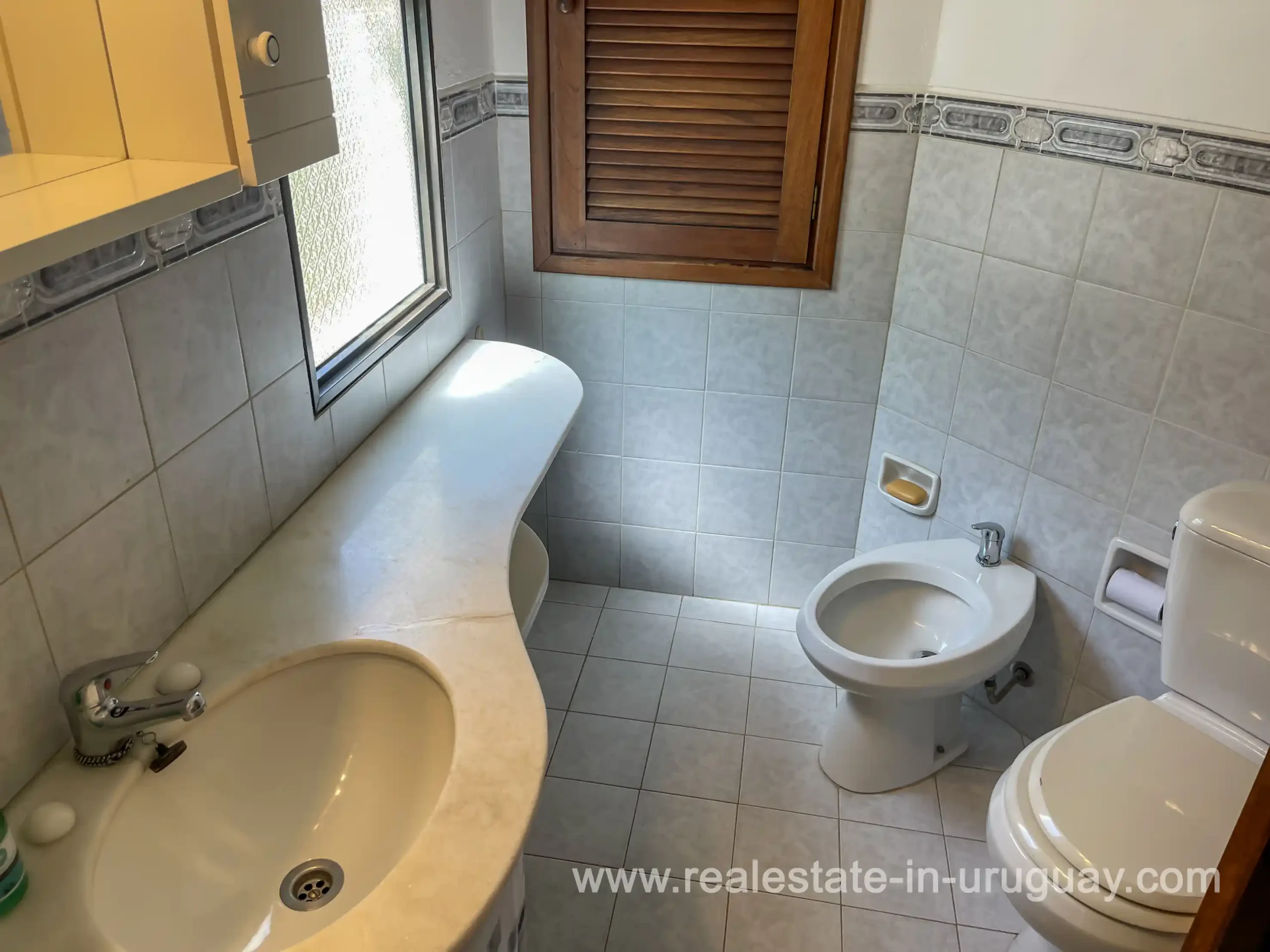 Built in 1999, this architecturally distinctive home is situated on the front row of Playa Verde, offering unobstructed sea views. The multi-level rooms are arranged on several asymmetrically staggered tiers. The central living and dining area features an open-concept American-style kitchen and a terrace with an outdoor grill. Two staircases lead from here, one descending to the garden and the other ascending to a spacious rooftop terrace. The master bedroom, with an en-suite bathroom and an open gallery-ideal for a small home office with a view of Río de la Plata-is on the same level. On the lower floor are two additional bedrooms, a bathroom, and the garage. Next to the solar-heated pool, the garden includes a small guest house with a bedroom and bathroom. Constructed with high-quality materials, the home offers excellent insulation, including double walls and double-glazed windows. In cooler months, an open fireplace in the living area and an oil-fired central heating system ensure comfort. The house has been well-maintained, is in excellent, defect-free condition, and is ready for immediate move-in. Playa Verde is a tranquil, family-friendly seaside resort near the historic town of Piriápolis. Situated slightly above sea level and surrounded by greenery, it features diverse coastal elements, including coves, rocky outcrops, and sandy beaches, which give the area its charm. Playa Verde and nearby communities provide good shopping, restaurants, and beach cafés, while Piriápolis, just minutes away by car, offers complete infrastructure, including schools, medical facilities, and a weekly market. Layout: Living/dining area with American-style kitchen, three bedrooms (including one en suite with an open gallery), and two bathrooms.