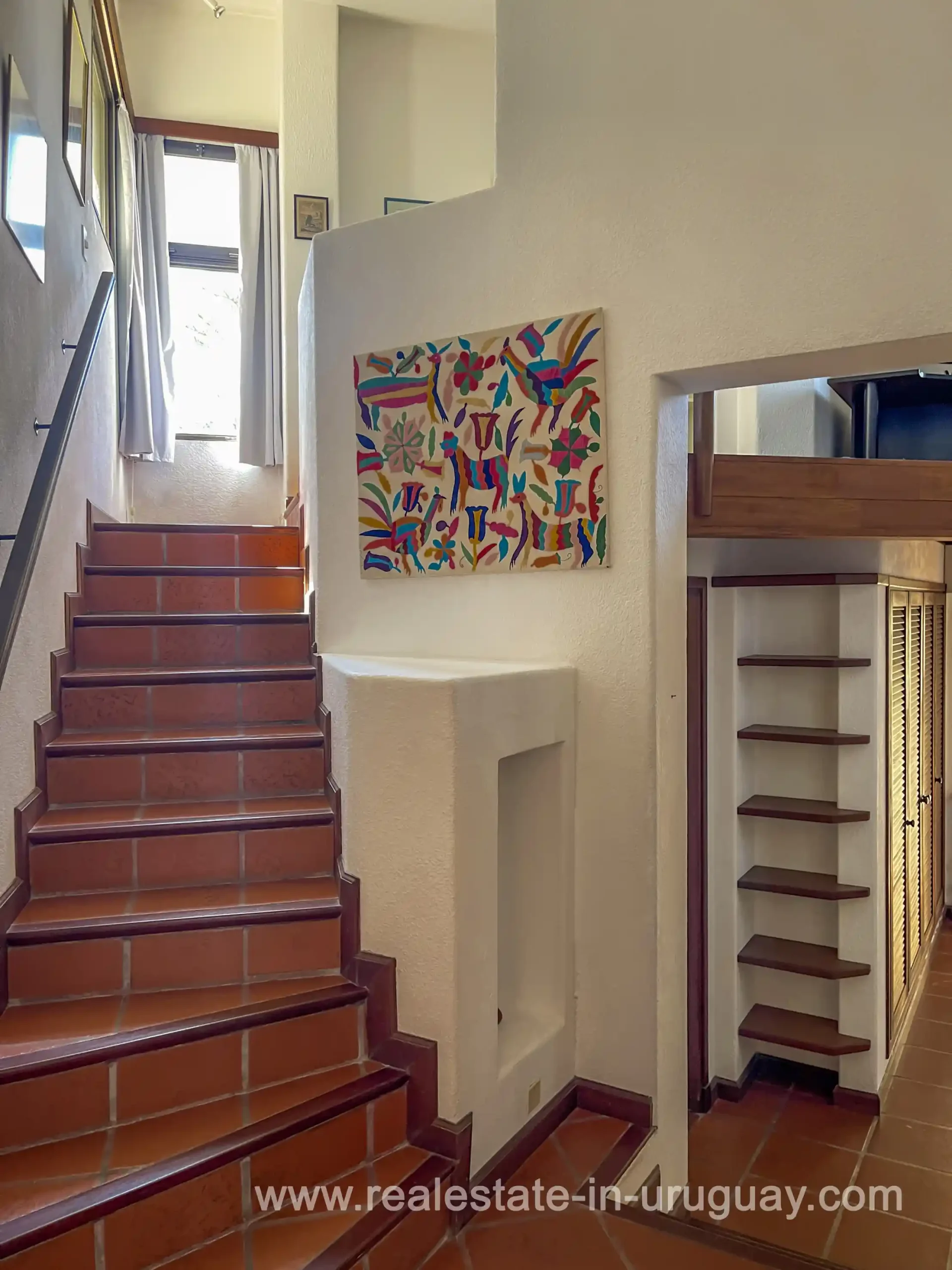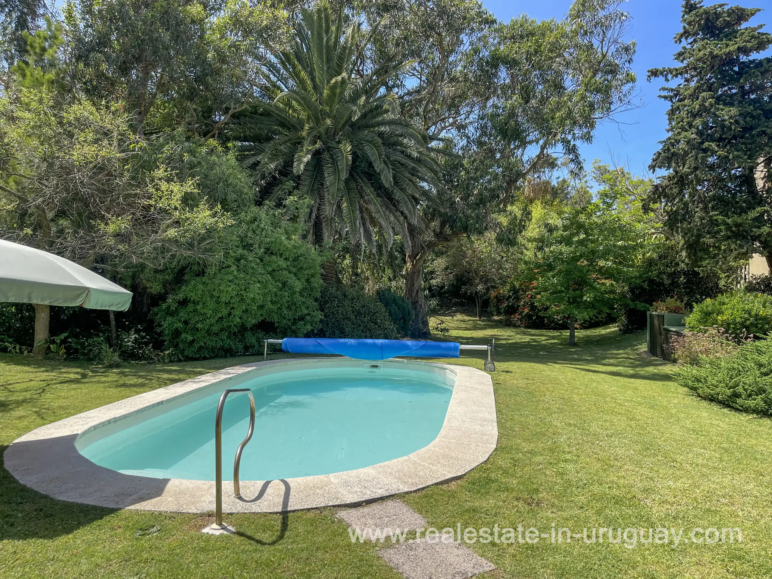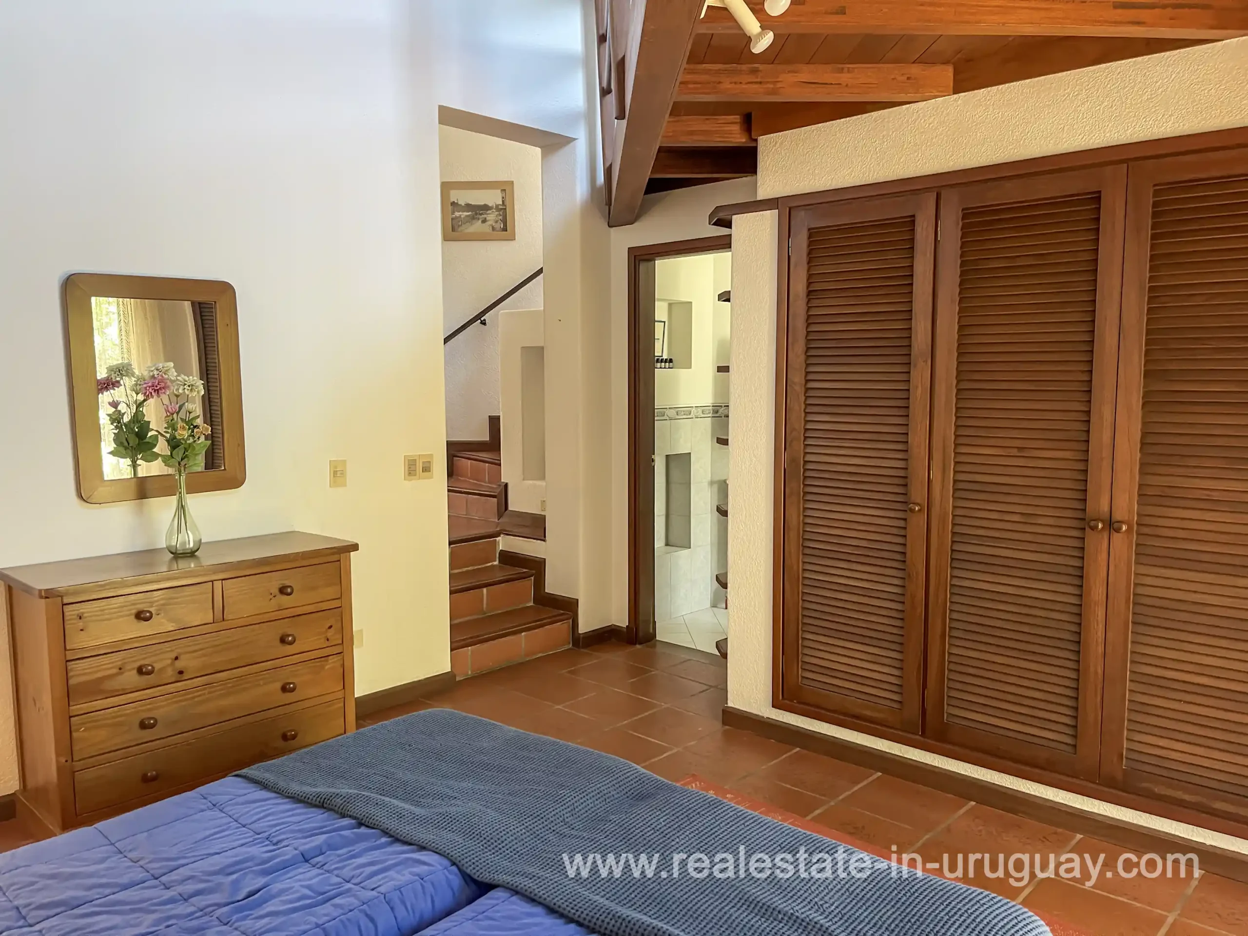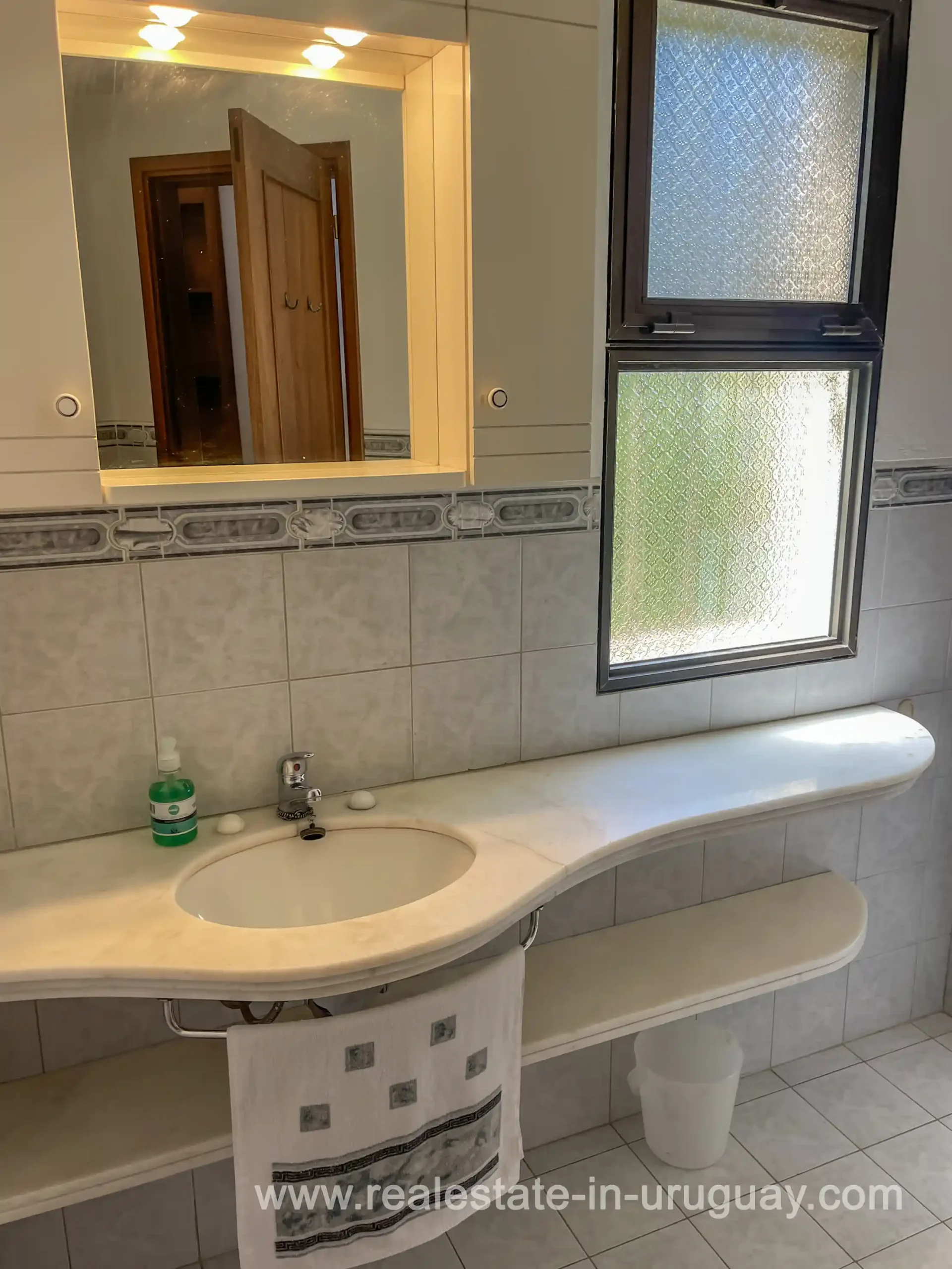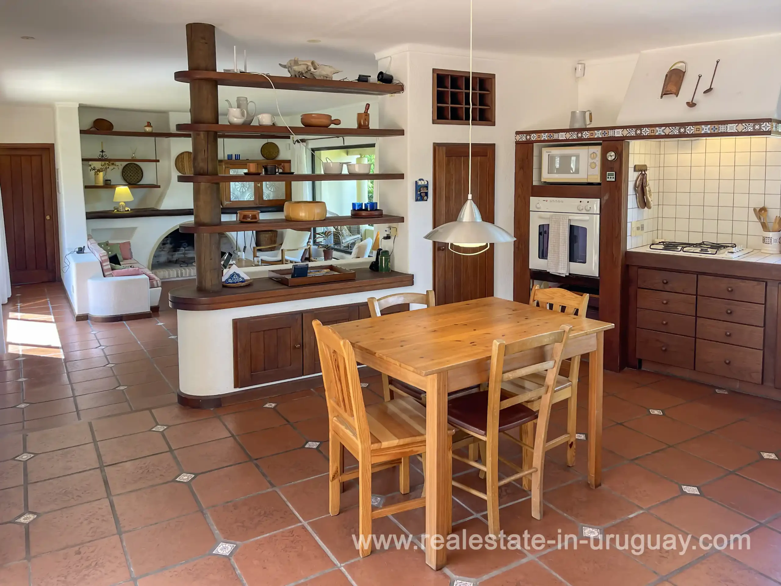 Built in 1999, this architecturally distinctive home is situated on the front row of Playa Verde, offering unobstructed sea views. The multi-level rooms are arranged on several asymmetrically staggered tiers. The central living and dining area features an open-concept American-style kitchen and a terrace with an outdoor grill. Two staircases lead from here, one descending to the garden and the other ascending to a spacious rooftop terrace. The master bedroom, with an en-suite bathroom and an open gallery-ideal for a small home office with a view of Río de la Plata-is on the same level. On the lower floor are two additional bedrooms, a bathroom, and the garage. Next to the solar-heated pool, the garden includes a small guest house with a bedroom and bathroom. Constructed with high-quality materials, the home offers excellent insulation, including double walls and double-glazed windows. In cooler months, an open fireplace in the living area and an oil-fired central heating system ensure comfort. The house has been well-maintained, is in excellent, defect-free condition, and is ready for immediate move-in. Playa Verde is a tranquil, family-friendly seaside resort near the historic town of Piriápolis. Situated slightly above sea level and surrounded by greenery, it features diverse coastal elements, including coves, rocky outcrops, and sandy beaches, which give the area its charm. Playa Verde and nearby communities provide good shopping, restaurants, and beach cafés, while Piriápolis, just minutes away by car, offers complete infrastructure, including schools, medical facilities, and a weekly market. Layout: Living/dining area with American-style kitchen, three bedrooms (including one en suite with an open gallery), and two bathrooms.