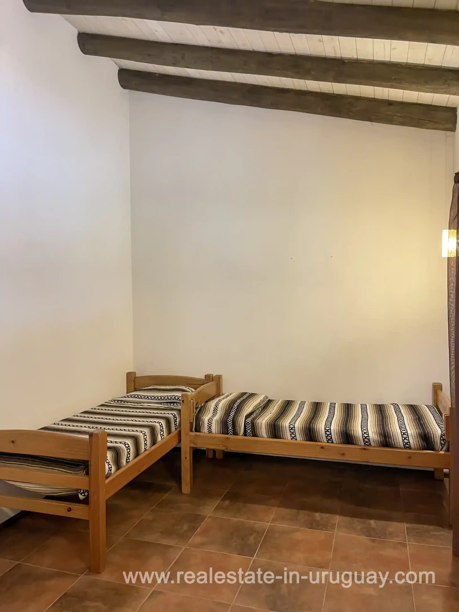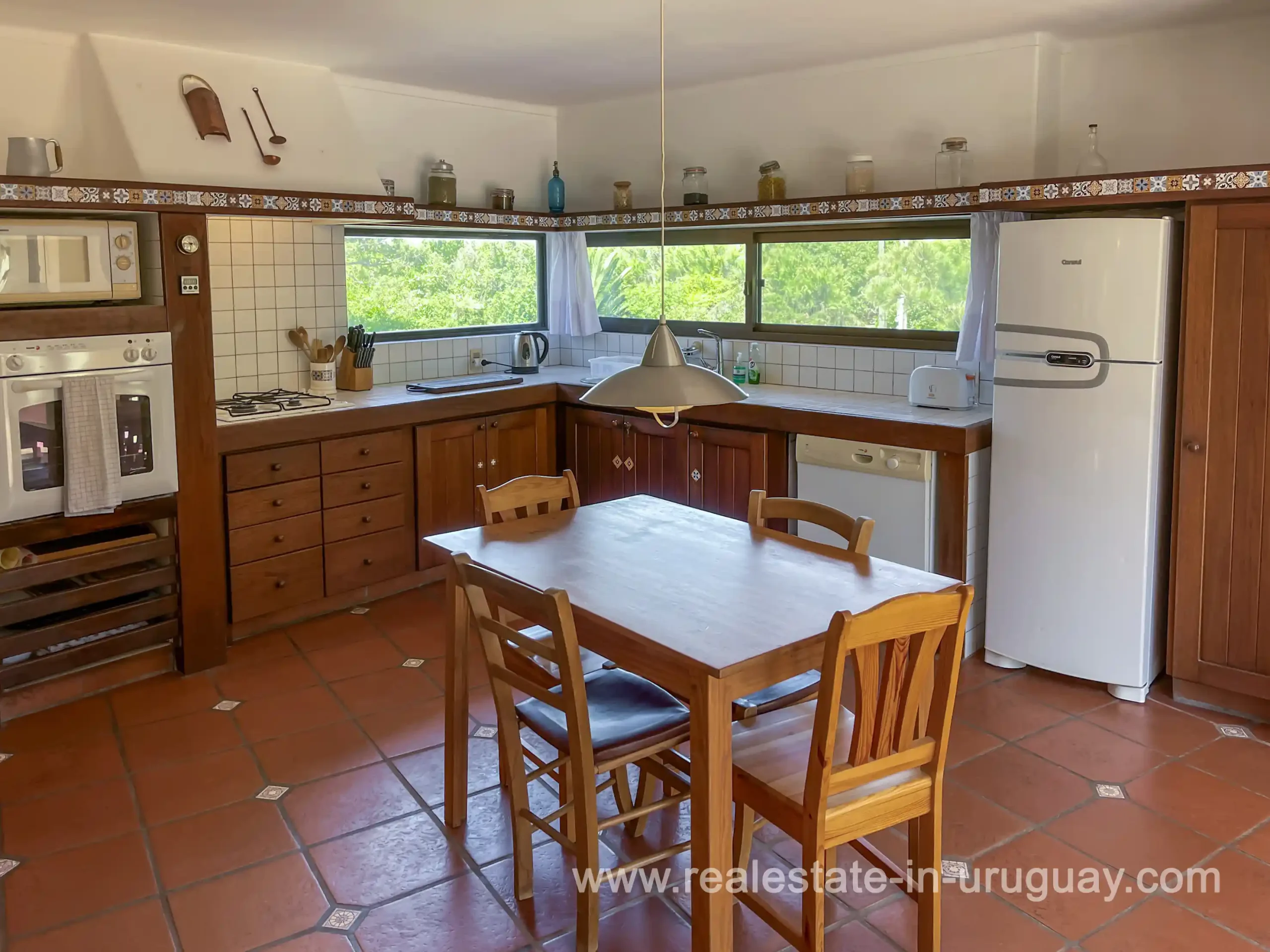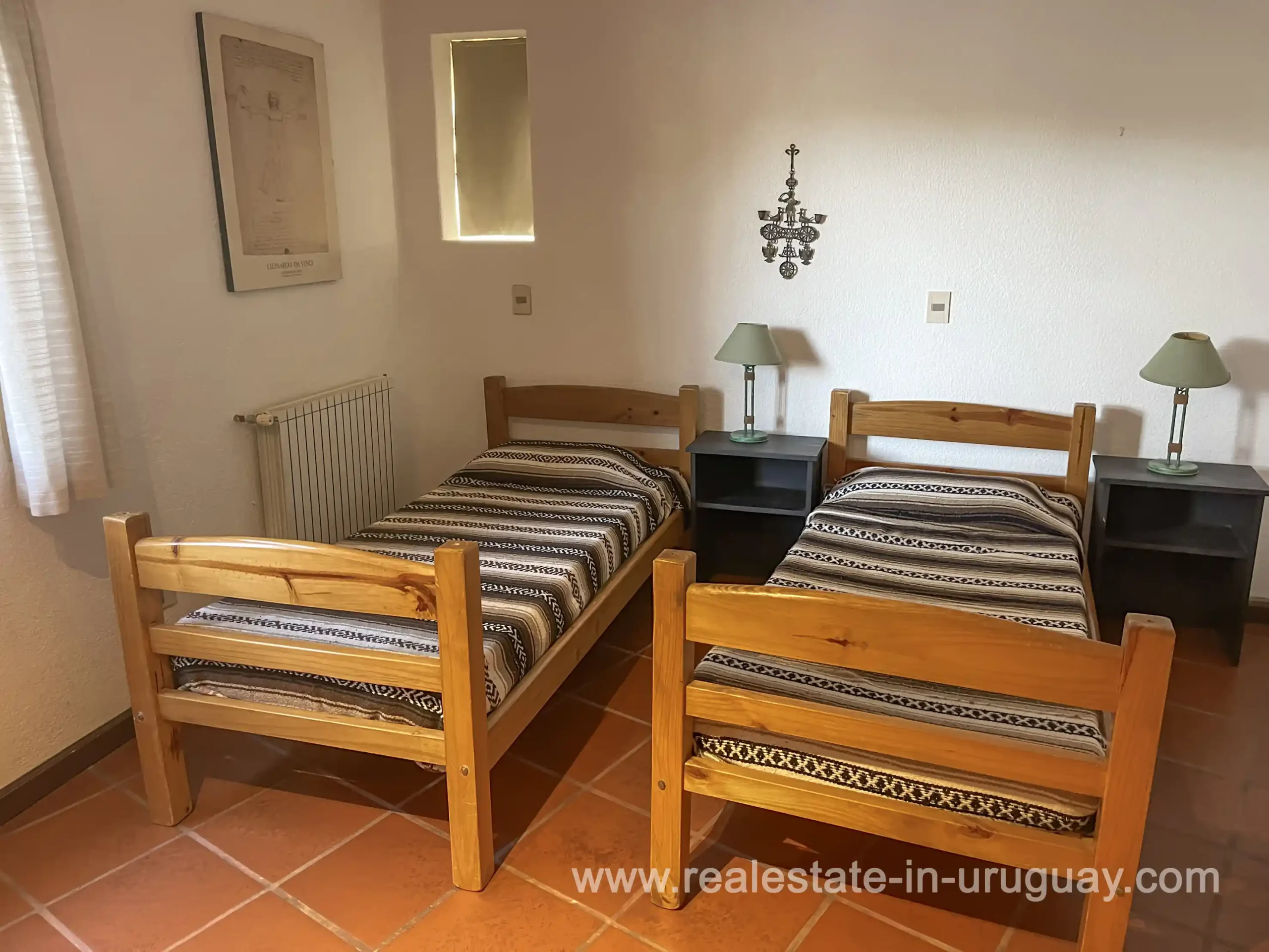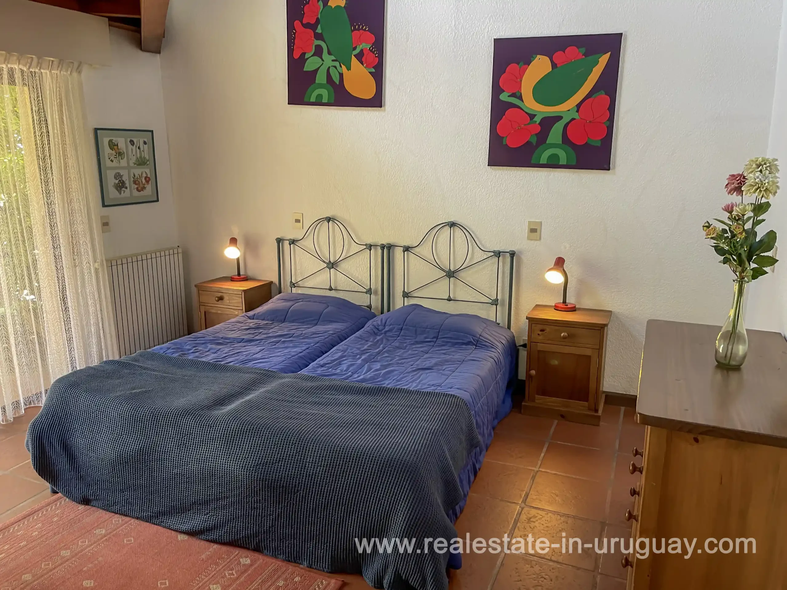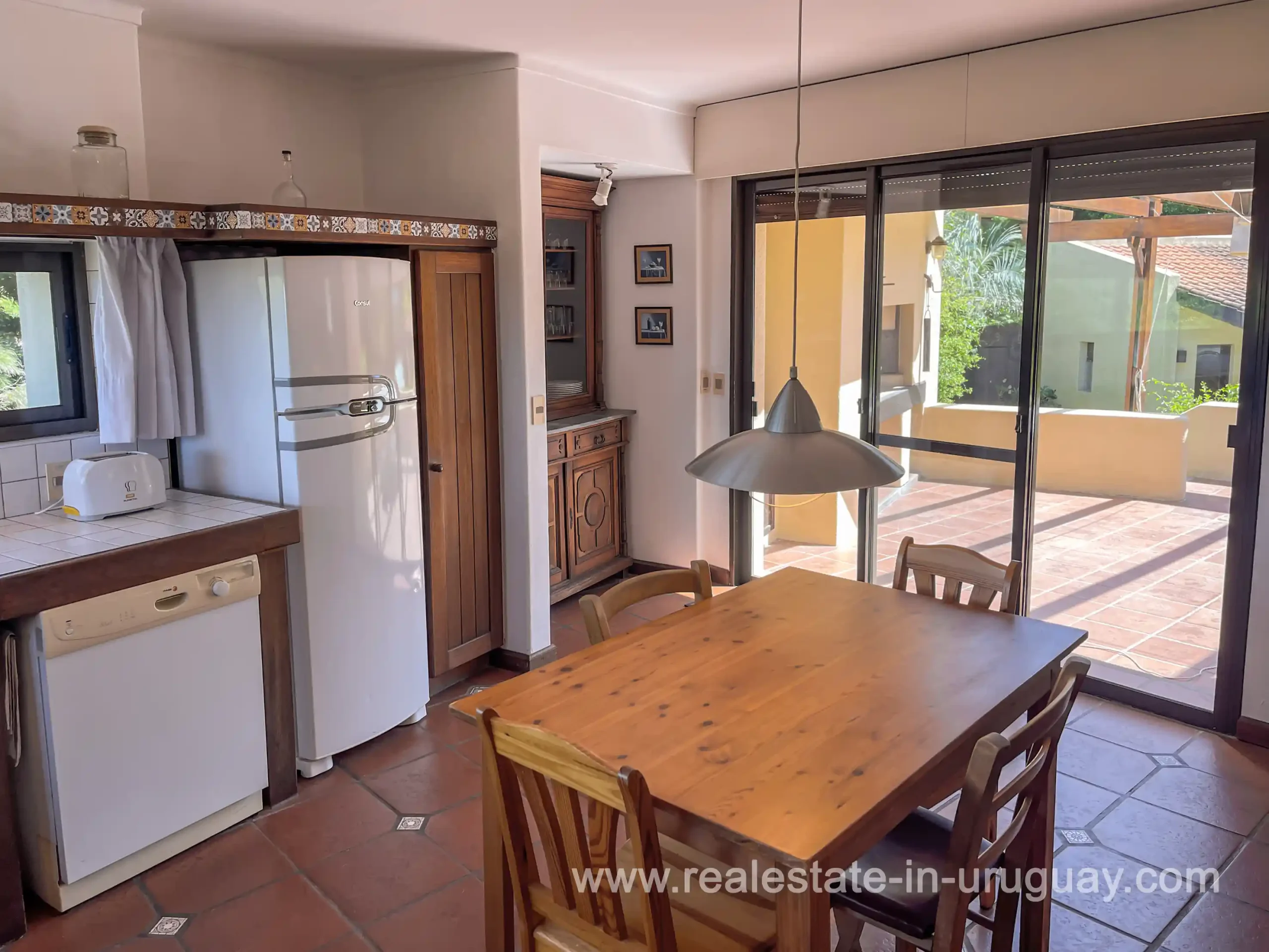 Built in 1999, this architecturally distinctive home is situated on the front row of Playa Verde, offering unobstructed sea views. The multi-level rooms are arranged on several asymmetrically staggered tiers. The central living and dining area features an open-concept American-style kitchen and a terrace with an outdoor grill. Two staircases lead from here, one descending to the garden and the other ascending to a spacious rooftop terrace. The master bedroom, with an en-suite bathroom and an open gallery-ideal for a small home office with a view of Río de la Plata-is on the same level. On the lower floor are two additional bedrooms, a bathroom, and the garage. Next to the solar-heated pool, the garden includes a small guest house with a bedroom and bathroom. Constructed with high-quality materials, the home offers excellent insulation, including double walls and double-glazed windows. In cooler months, an open fireplace in the living area and an oil-fired central heating system ensure comfort. The house has been well-maintained, is in excellent, defect-free condition, and is ready for immediate move-in. Playa Verde is a tranquil, family-friendly seaside resort near the historic town of Piriápolis. Situated slightly above sea level and surrounded by greenery, it features diverse coastal elements, including coves, rocky outcrops, and sandy beaches, which give the area its charm. Playa Verde and nearby communities provide good shopping, restaurants, and beach cafés, while Piriápolis, just minutes away by car, offers complete infrastructure, including schools, medical facilities, and a weekly market. Layout: Living/dining area with American-style kitchen, three bedrooms (including one en suite with an open gallery), and two bathrooms.