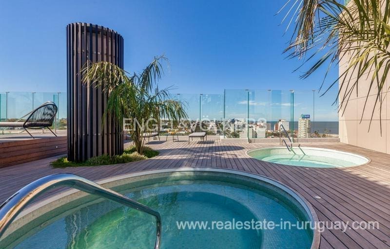Apartment with stunning views in a brand-new building on the Rambla of Malvin. Living-dining room with balcony, kitchen with view to the outside equipped with stove, oven, and purifier. Three bedrooms, the master bedroom en suite with a dressing room and the other two share a bathroom. Guest toilette. Imposing sea views. Premium materials and finishes. The building has the following amenities: an outdoor heated pool, two outdoor jacuzzis, a gym, a laundry room, an indoor jacuzzi, a sauna, a gym, barbecues on the rooftop and a party room with easy access directly from the outside. 24-hour concierge service, video surveillance, and perimeter fence. Very low common expenses. Garages are available from USD 33,000. Occupancy costs 4%.