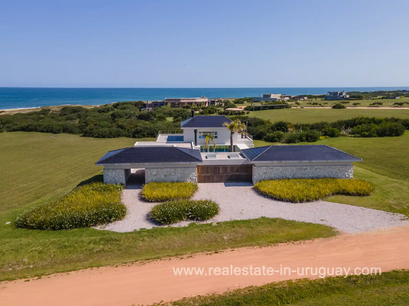 Located just a few meters from the sea, within the exclusive Las Garzas gated community, this magnificent newly-built home features solid construction and top-quality finishes. The property is spread across two levels, with high ceilings, wooden flooring, and spacious rooms. On the ground floor, you’ll find a large living and dining area, a defined kitchen, three en-suite bedrooms, a playroom, a service area with a laundry room, and an internal garden with a barbecue area. On the second floor, the master bedroom is accompanied by a large terrace offering stunning sea views. The house is fully equipped for year-round living, with underfloor heating in the bathrooms, pre-installation for central air conditioning, double-glazed windows, and a wood-burning stove. The gated community offers 2 kilometers of unspoiled beaches and a wide range of services, including a beach club, swimming pools, lifeguard services on the beach, a lounge area, restaurant, massage room, sauna, gym, tennis court, children’s playroom, and 24-hour security. This property represents an ideal choice for those seeking an environment that combines tranquillity, nature, and security, while being only 20 minutes away from all the shops, restaurants, and beaches of José Ignacio.