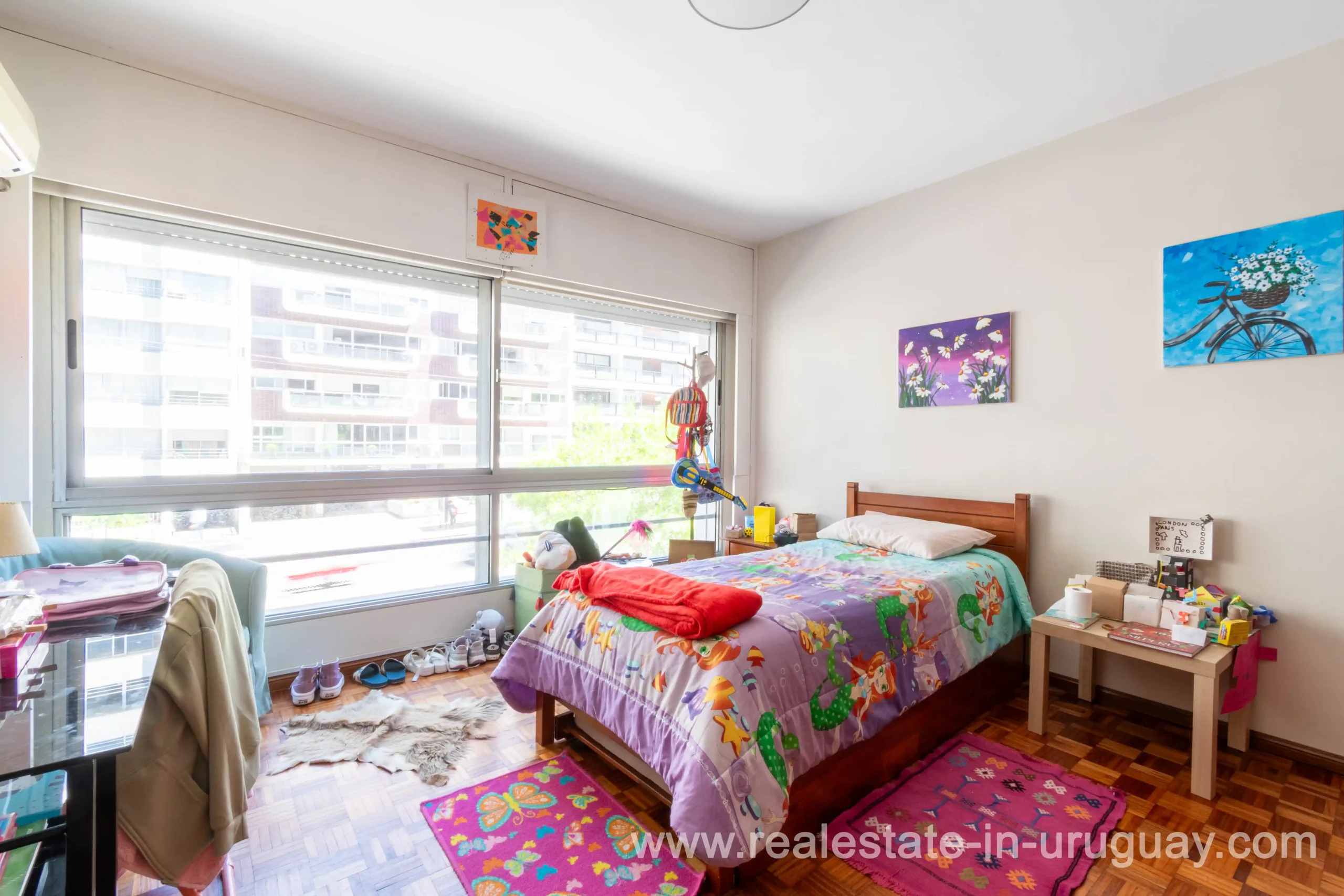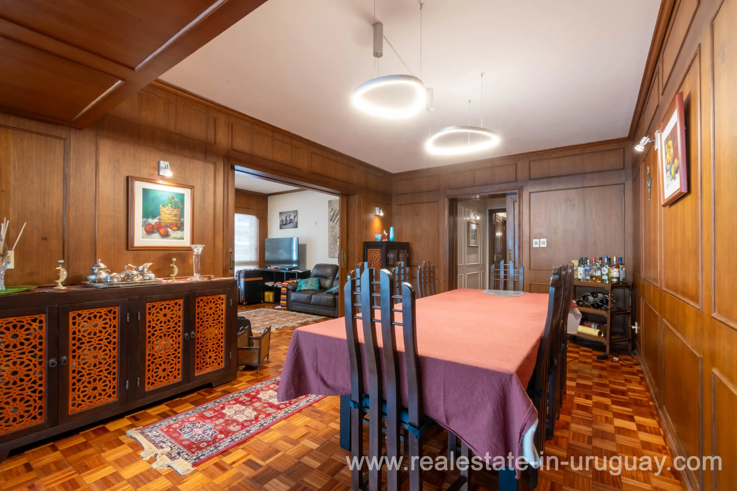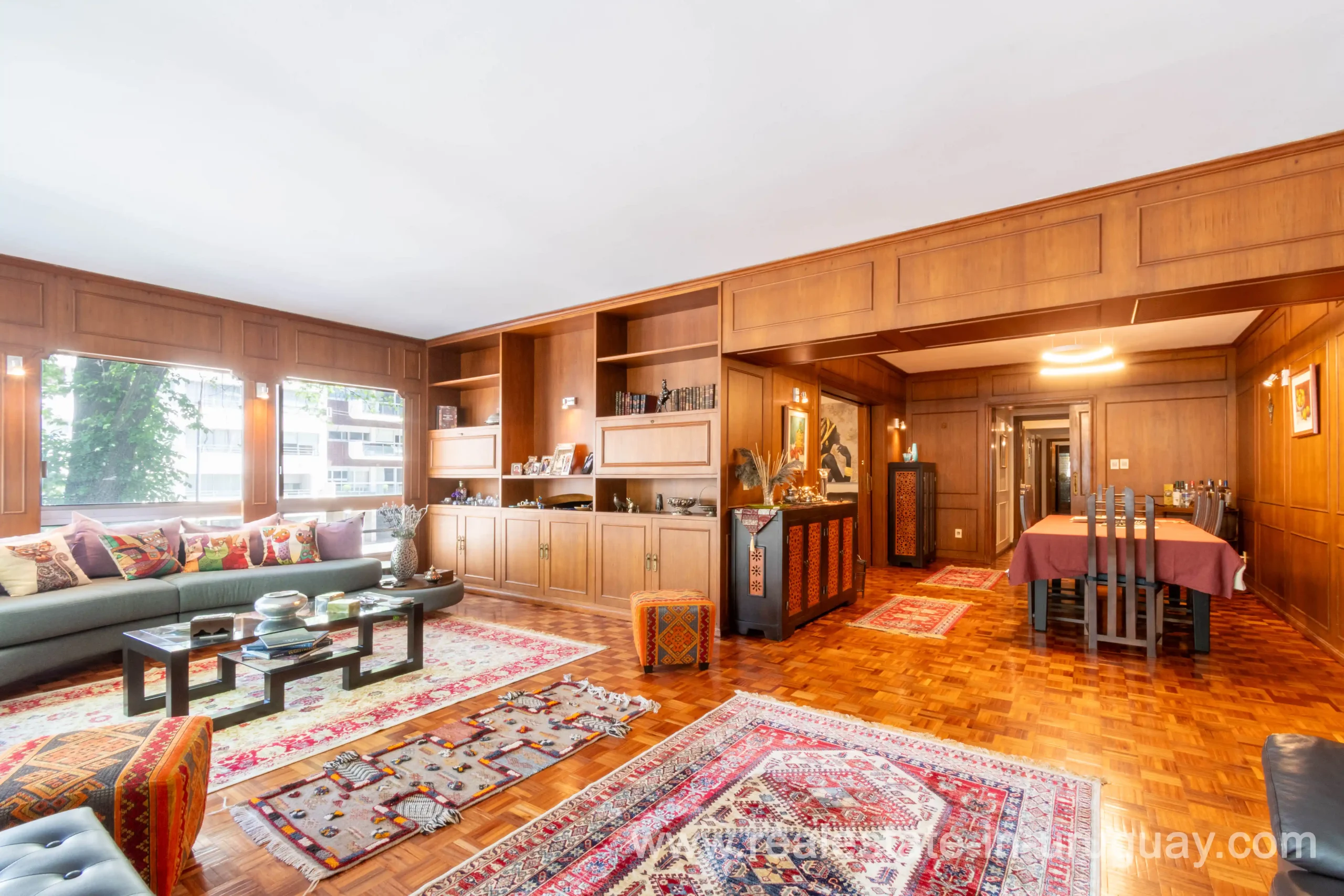 This classic 266 m2 corner apartment offers stunning views of Bv. España is located only 200 meters from the Rambla. The spacious living-dining room features an independent entrance and large windows facing Bv. España. There’s a very bright private study or office, perfect for work or reading. A hallway leads to the apartment’s center, which has a second independent entrance. From there, a distribution hall connects to the private area with three bedrooms: the master bedroom with an en-suite bathroom and a walk-in closet, and two additional bedrooms with natural light and views of Bv. España, sharing a full bathroom and a toilet. The fully renovated kitchen includes a service entrance and opens to a TV room and a daily dining area. It also has a laundry room, service room, and service bathroom. The apartment provides excellent comfort with underfloor central heating and additional air conditioning. All windows have double glazing to ensure a quiet environment throughout. The property includes a one-car garage, and the building features 24-hour onsite security. Common expenses are approximately $U 23,000 annually average).
