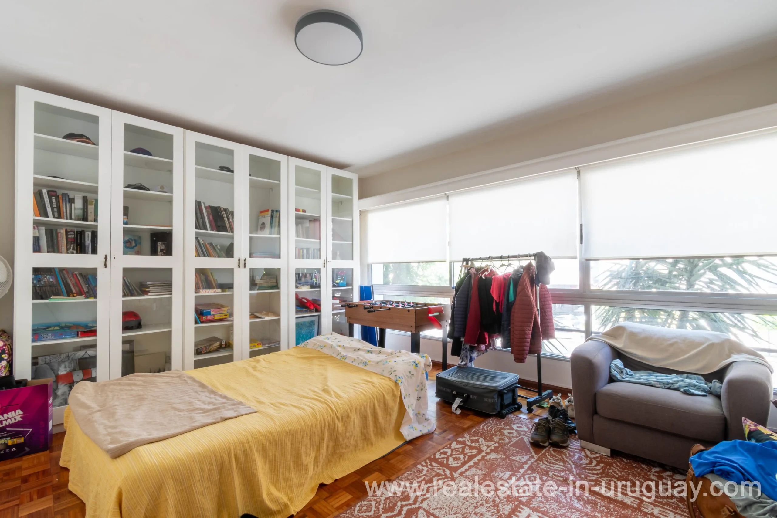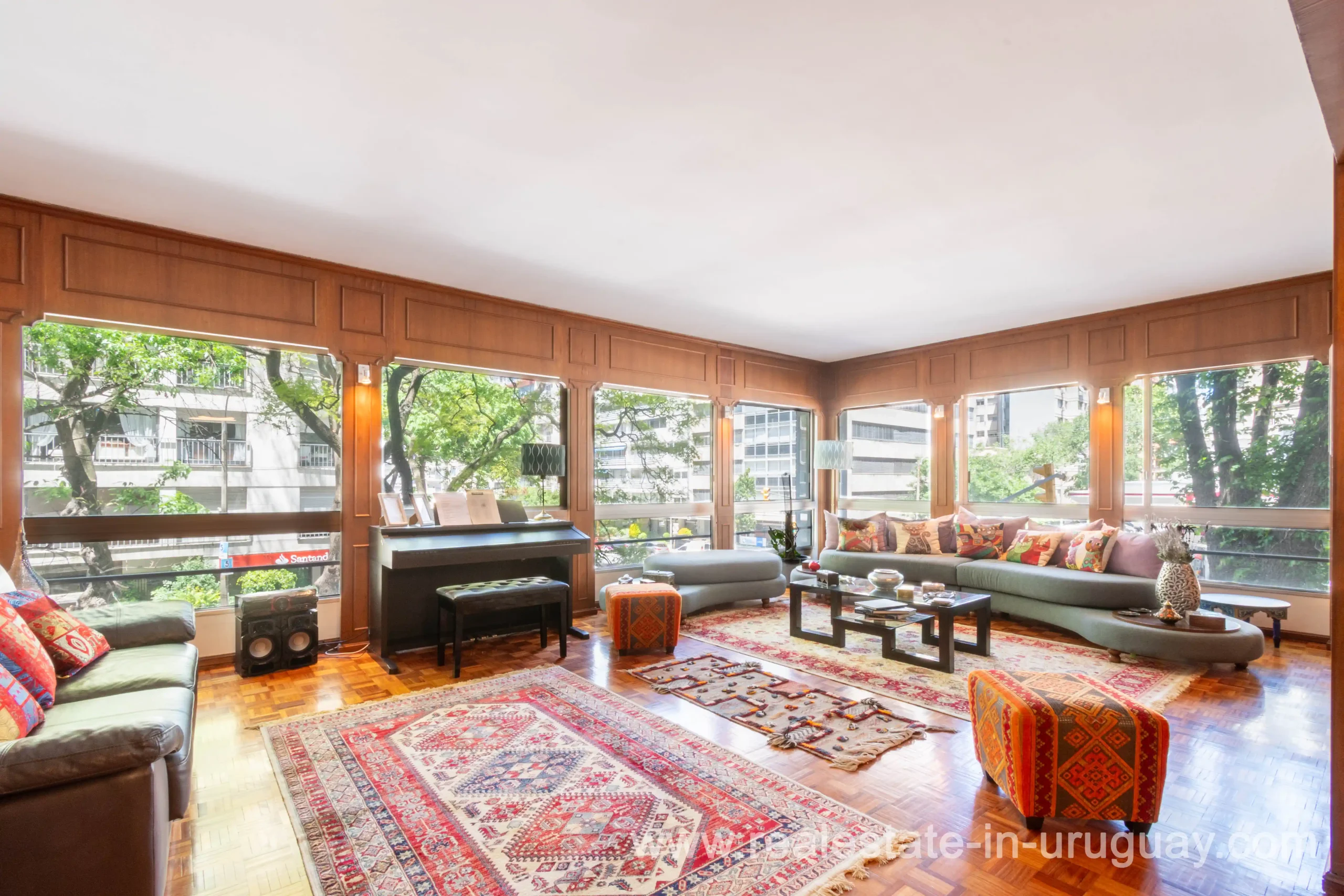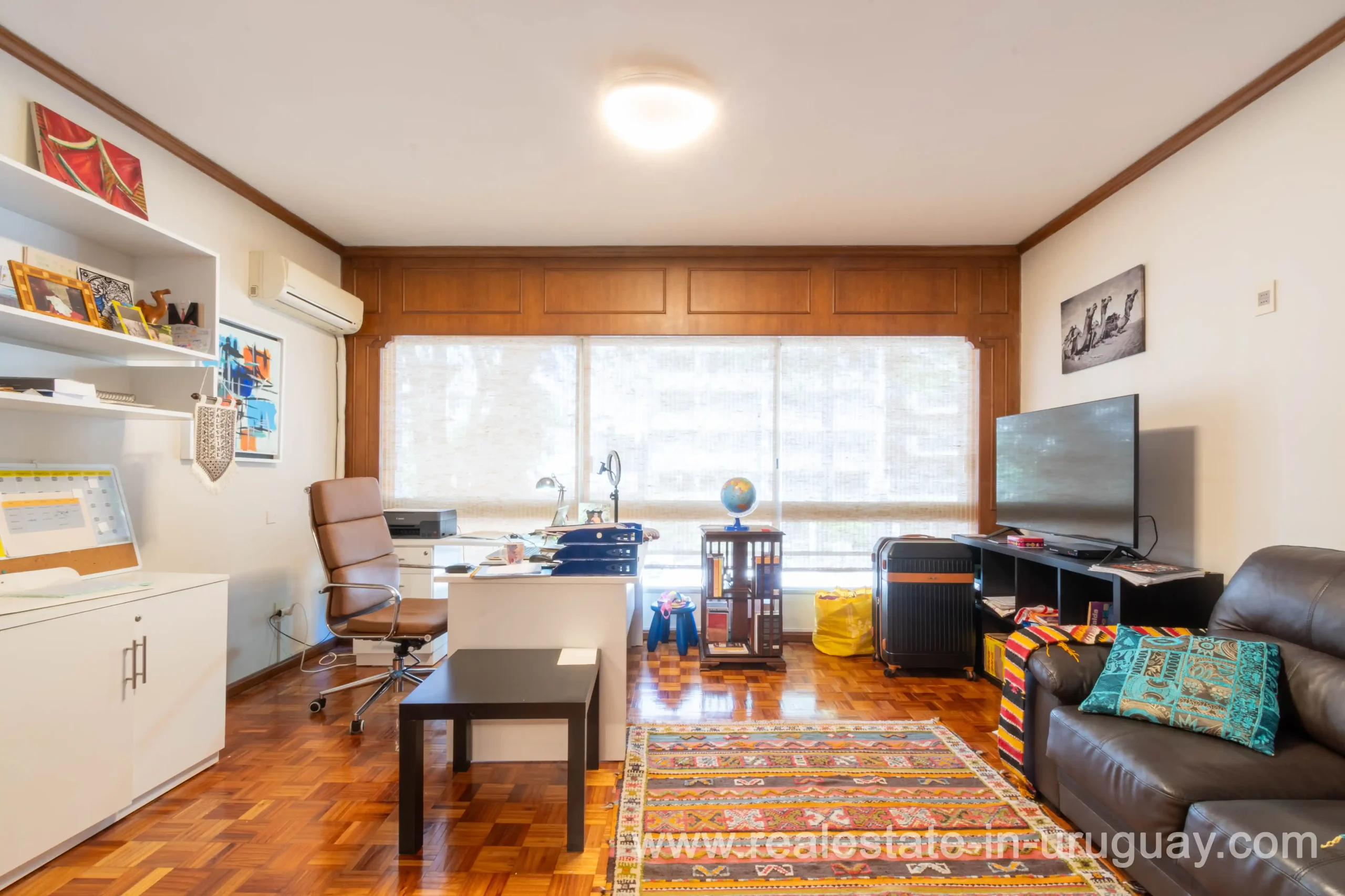 This classic 266 m2 corner apartment offers stunning views of Bv. España is located only 200 meters from the Rambla. The spacious living-dining room features an independent entrance and large windows facing Bv. España. There’s a very bright private study or office, perfect for work or reading. A hallway leads to the apartment’s center, which has a second independent entrance. From there, a distribution hall connects to the private area with three bedrooms: the master bedroom with an en-suite bathroom and a walk-in closet, and two additional bedrooms with natural light and views of Bv. España, sharing a full bathroom and a toilet. The fully renovated kitchen includes a service entrance and opens to a TV room and a daily dining area. It also has a laundry room, service room, and service bathroom. The apartment provides excellent comfort with underfloor central heating and additional air conditioning. All windows have double glazing to ensure a quiet environment throughout. The property includes a one-car garage, and the building features 24-hour onsite security. Common expenses are approximately $U 23,000 annually average).