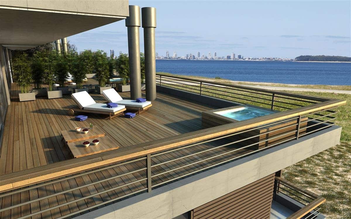 Welcome to a top quality property with an unbeatable seafront location. These condos in Pinares Punta del Este offer spacious rooms and large terraces affording panoramic sea views together with views to the surrounding landscape. A great investment for those seeking a genuine, well-presented product. Specially designed to allow the owner to enjoy a home with five-star amenities. There is a terrace comprising a large covered BBQ/grill and jacuzzi, living/dining room with fireplace and guest toilet and all the bedrooms have en suite bathrooms. What is more, the building includes garages, private storage, heated swimming pool, dressing rooms, spa, gym, guest parking, concierge service, laundry service, beach service and 24h security. This project has been carried out by the architects, Martín Gómez and Gonzalo Veloso, who have twenty years of experience working on these types of developments. Two and three bedroom apartments, from 178m2 up to 237m2. The completion date for the building work and the handing over of apartments was January 2014. Contact us regarding payment options!