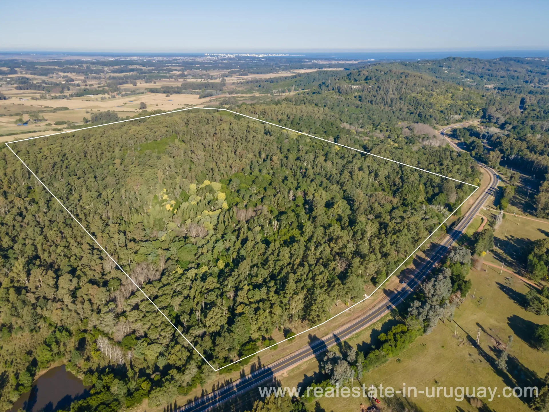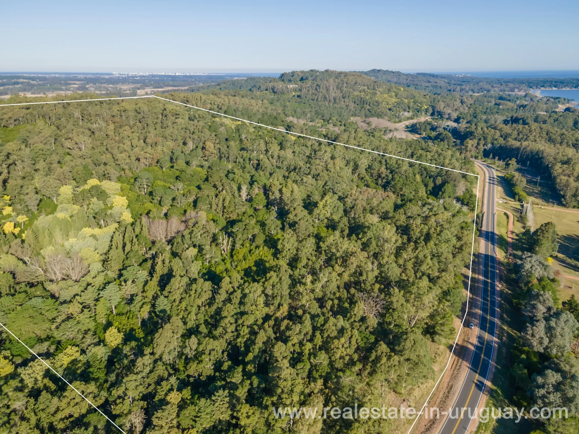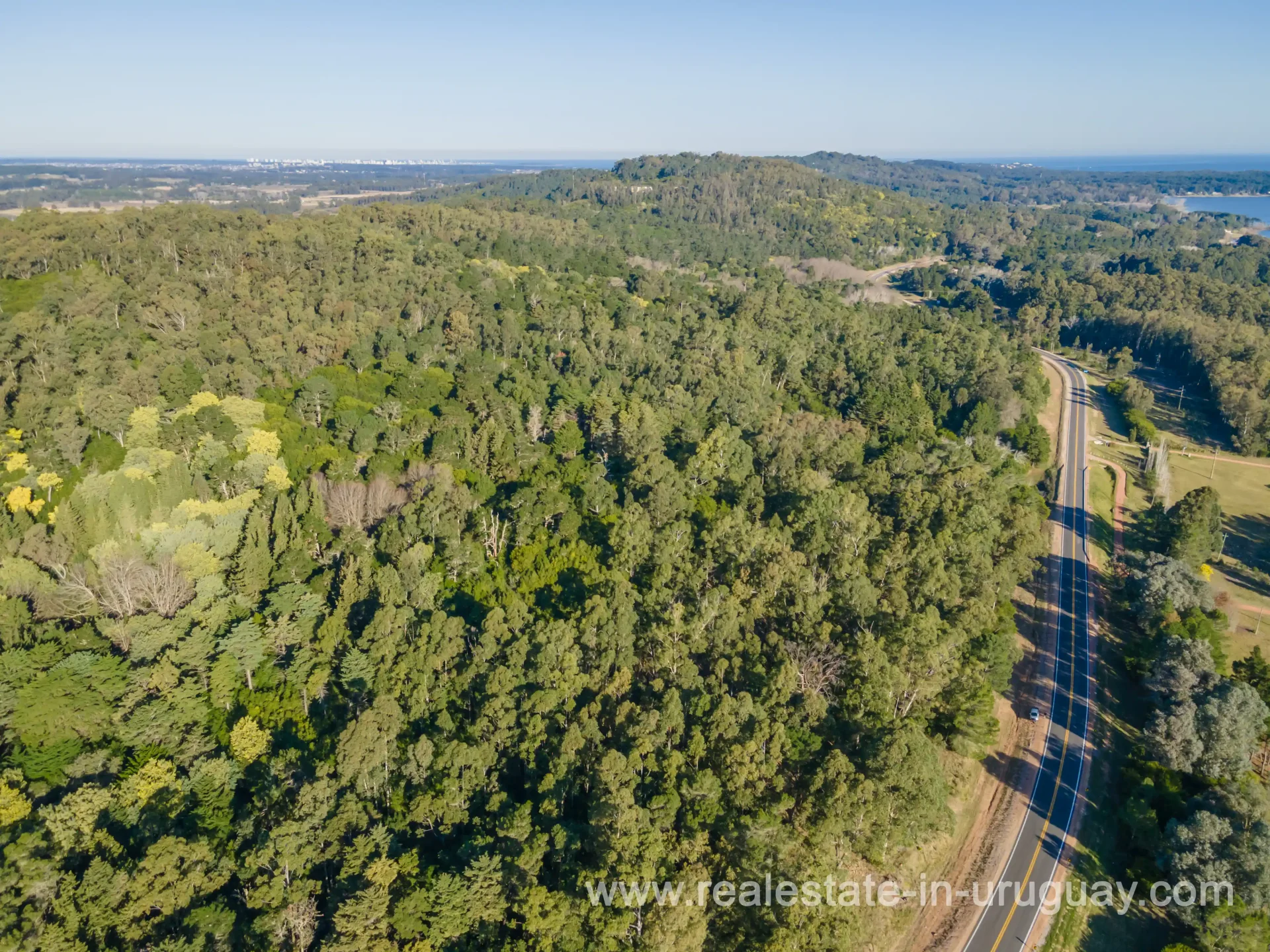 An interesting countryside plot measuring 15 hectares, with 500m on Highway 12 at kilometer 6.5. This lovely field is at the top of a hill, affording views of Laguna de Sauce and the Peninsula. You can buy 10, 15, or 30Ha.