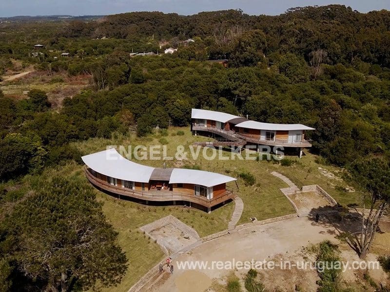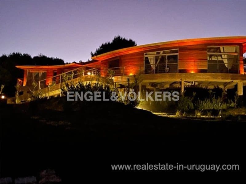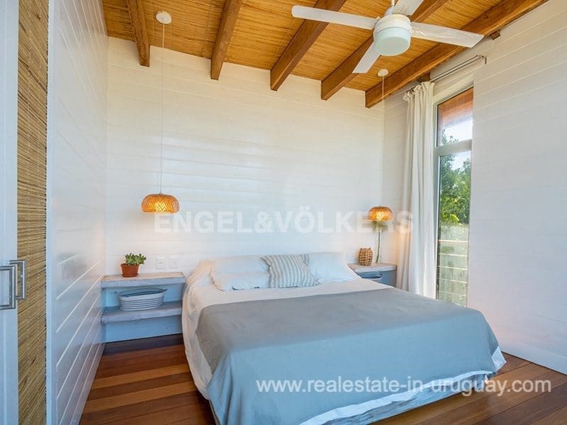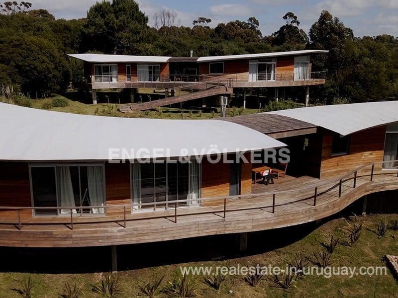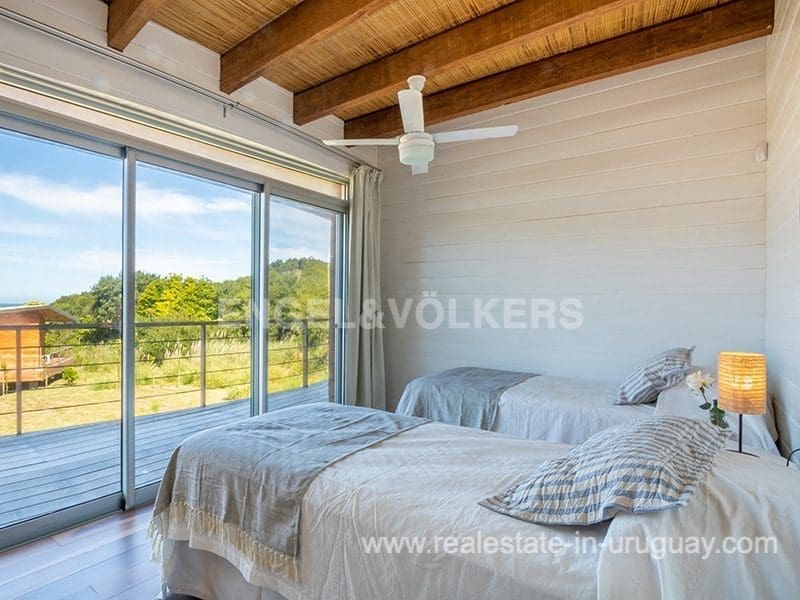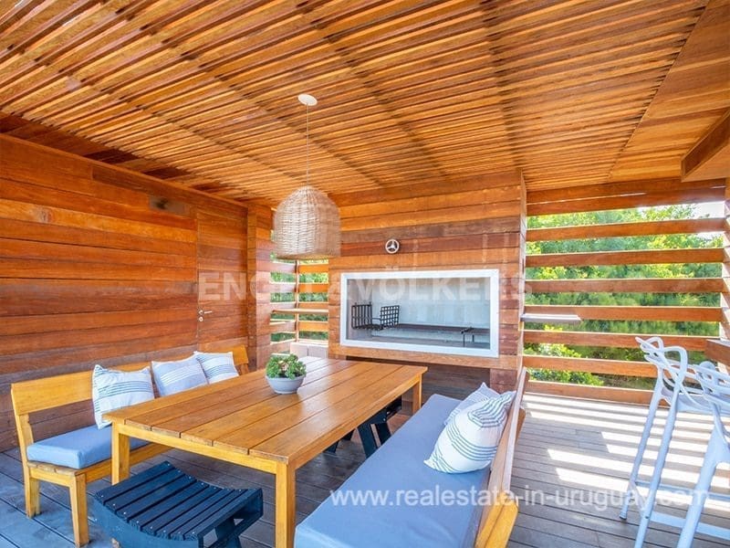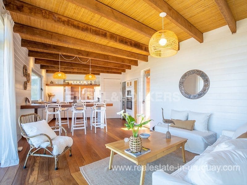 This Designer House in La Pedrera, designed by the architect Matias Sambarino, was built in 2022 and is located in a gated complex with direct access to the beach of El Barco. Built with top quality materials with exterior lapacho wood finishes and hydro lacquered solid wooden decks and interior flooring. It comprises three bedrooms, one en suite, and two bathrooms, a large covered deck with a barbecue, and a laundry room with a covered outdoor hot water shower. Due to the elevation of the terrain and its location, the house enjoys sea views. The complex has a caretaker all year round, garden maintenance, and a tennis court. A property to enjoy surfing and maritime sports in general in peaceful wooded and beach surroundings just a few blocks from the center of La Pedrera in Rocha. The house comes fully equipped (TV, washing clothes, dishwasher, etc.).