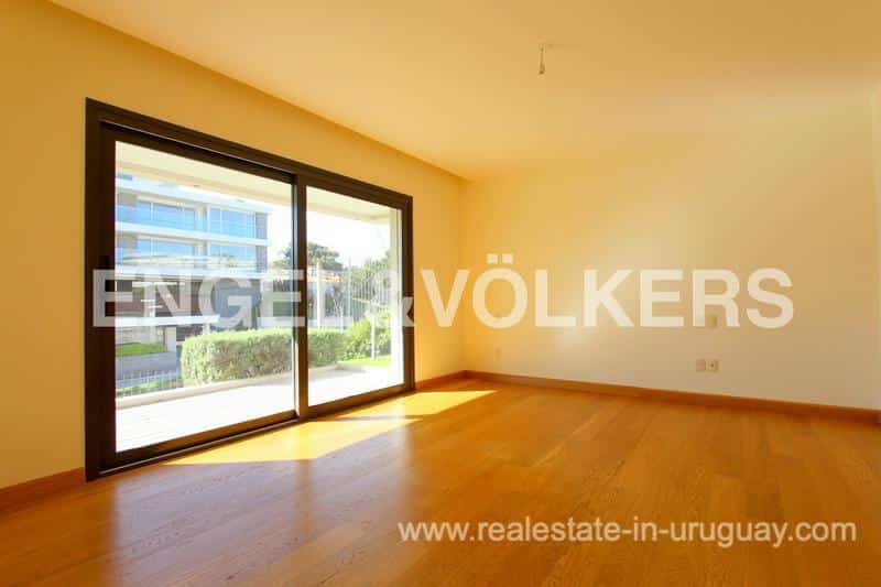 RENTED UNTIL JAN 2024 Exclusive apartment in Punta Gorda for sale which is part of an exclusive building built in a triangular lot; bow shape allows providing all units with unique views over the Punta Gorda seashore. The property welcomes us with a stunning living room, its large windows fill with light the spaces. Two terraces complement the living plus a private patio. The good-sized kitchen is complemented by a service unit with laundry and maids room with bathroom. The private area consists of a toilet, terrace with barbecue and three bedroom, the master one in suite and the other two shares a bathroom. Two garages complement the property. The building has a modern style with light colors, evoking the architecture inspired by the boats, which allows it to blend in with its environment while offering an iconic building with exquisite finishes.