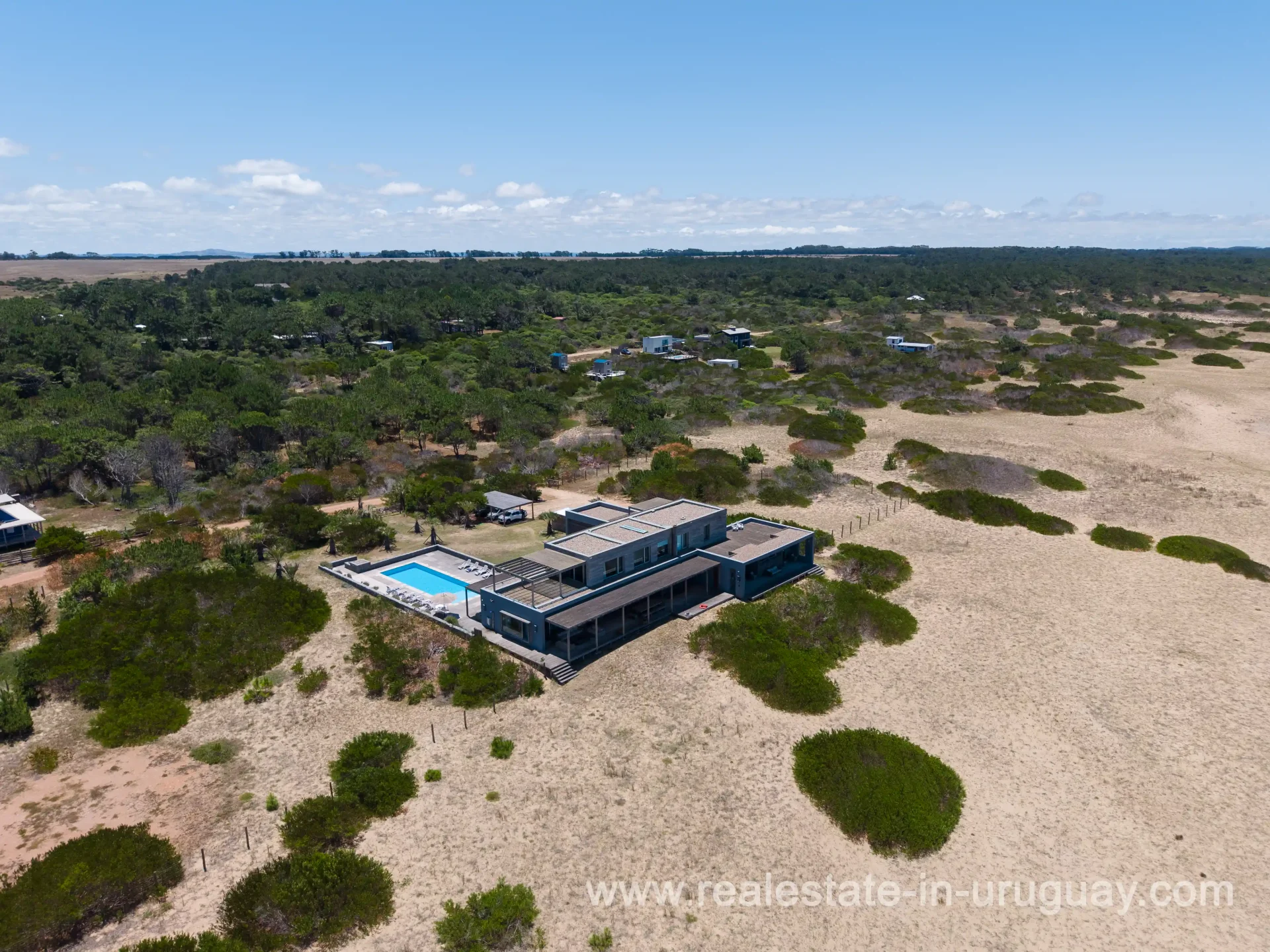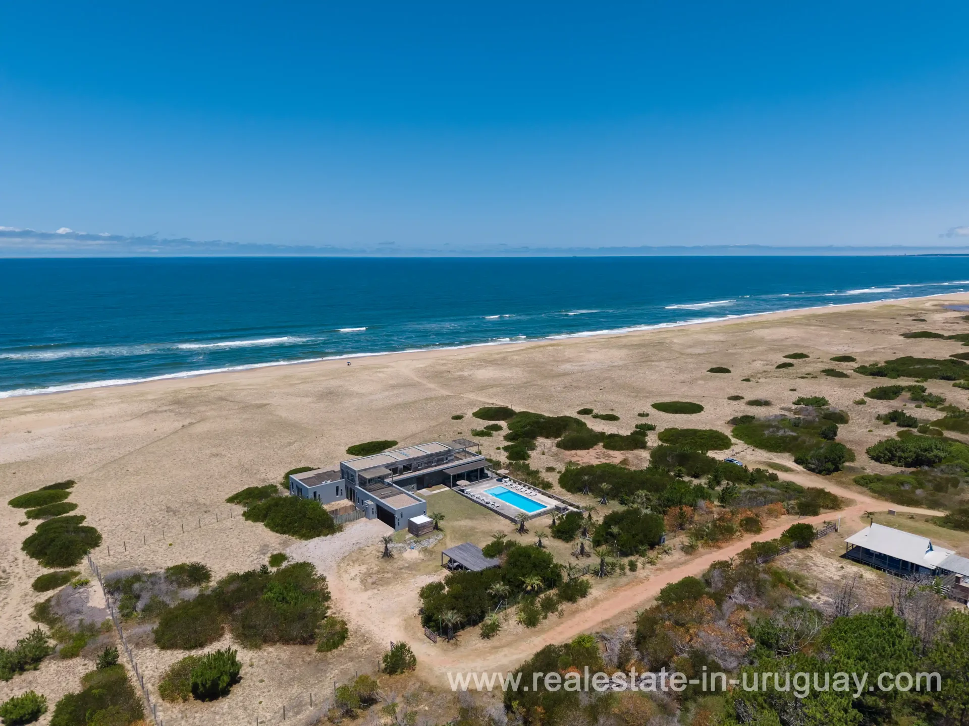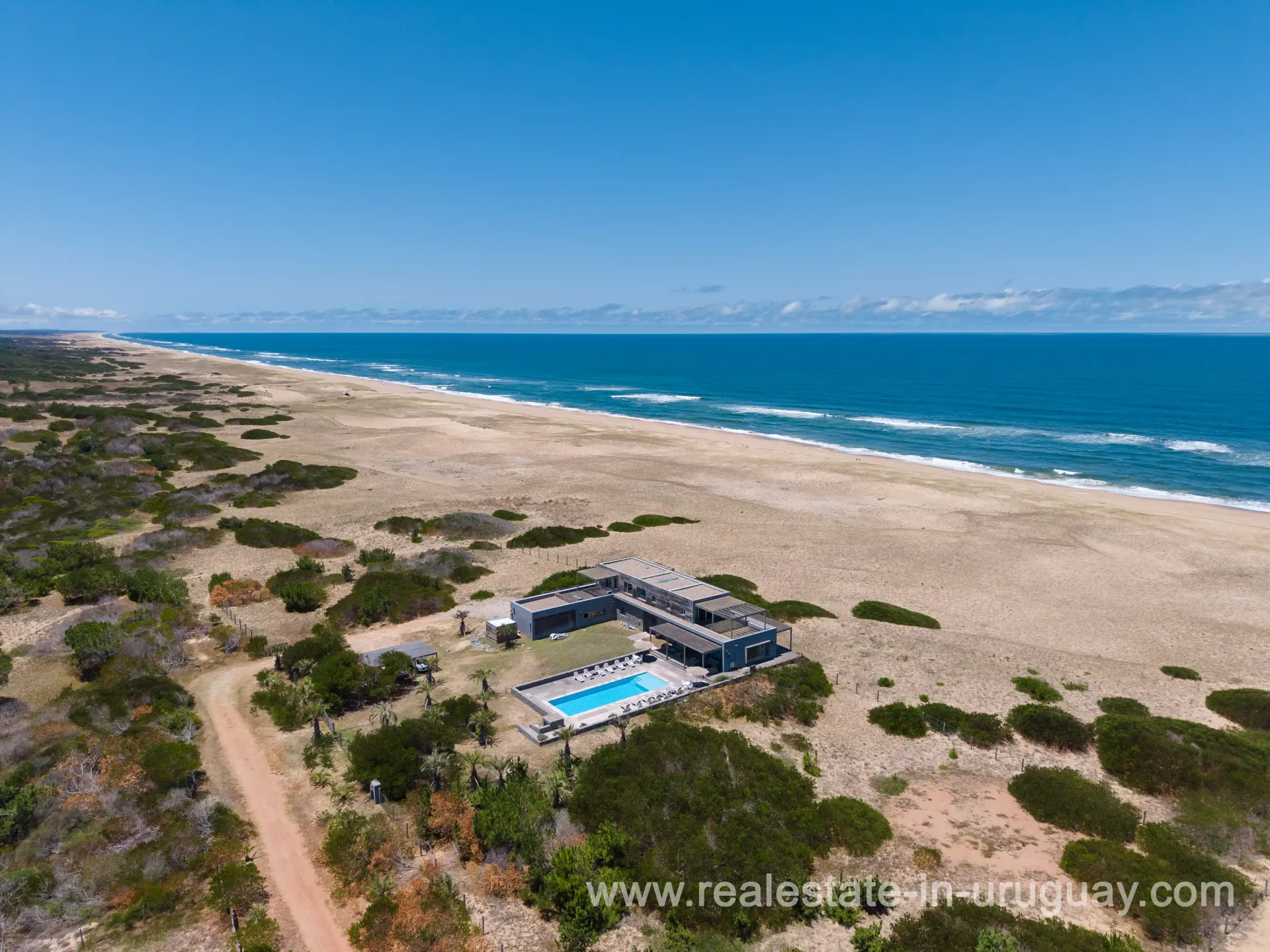 This stunning beachfront property in San Antonio, built on a 4,500 m2 lot with the option to acquire additional land, offers the perfect combination of comfort and privacy. Constructed in 2011 with top-quality materials, this residence features a modern and elegant design, ideal for those seeking an exclusive lifestyle surrounded by nature and tranquility. Located just 10 minutes from La Pedrera and an hour from José Ignacio, San Antonio has become one of the most sought-after areas on the Rocha coast.