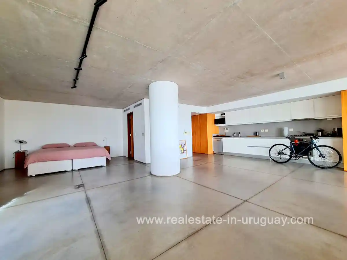 Exclusive minimalist design loft for sale, which is part of a luxurious and emblematic Art Deco building from the early 20th century that was rebuilt and transformed into the most exclusive residential building on the coast of the city, preserving its original character. The apartment is a good-sized loft that welcomes us with generous living and dining spaces with large floor-to-ceiling windows that fill the room with light and provide us with a wonderful view of the sea. It has a laundry closet and a toilet. The open bedroom has a generous walk-in closet and a full bathroom with a bathtub. It also has a 34 sq. mt exclusive use terrace, also with sea view. The building has 24-hour security, a heated indoor pool, a sauna, and a wonderful common-use rooftop terrace with amazing views. This loft is designed to live with the highest level of style, modernity, and avant-garde. It has 1 garage and 1 box.