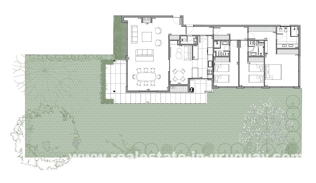 Welcome to “Villa Giardino,” an exclusive new garden apartment development situated on a serene street in the heart of Carrasco, Montevideo. This sophisticated boutique residential building, harmoniously nestled within a lush green landscape, offers an unparalleled sense of luxury with only 7 apartments. Embrace tranquility and sophistication while being just minutes away from essential services and the scenic waterfront promenade.