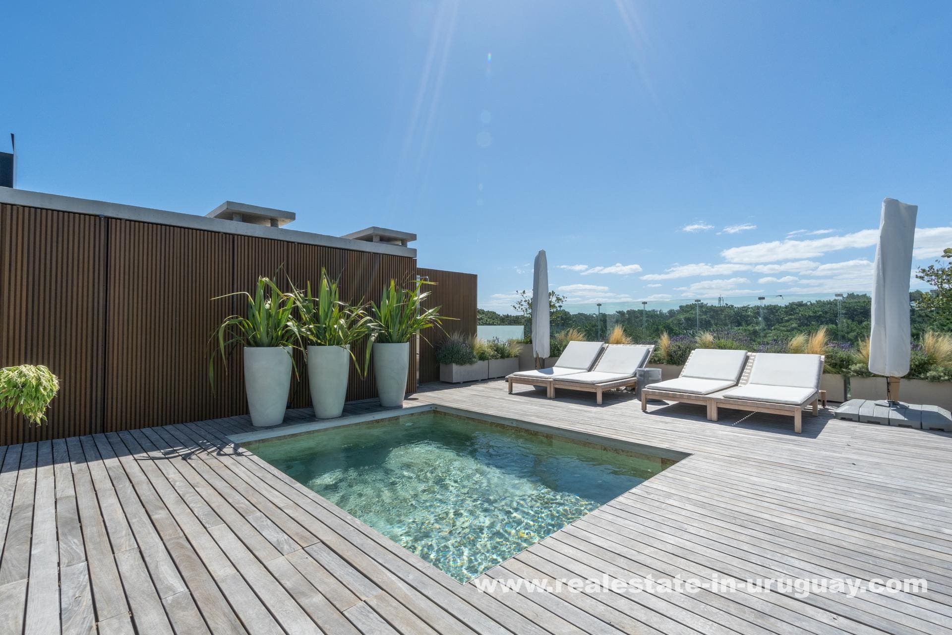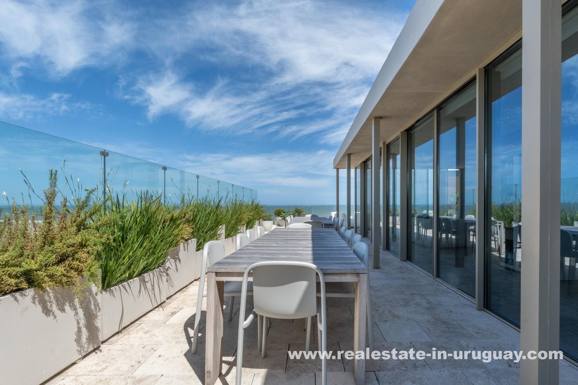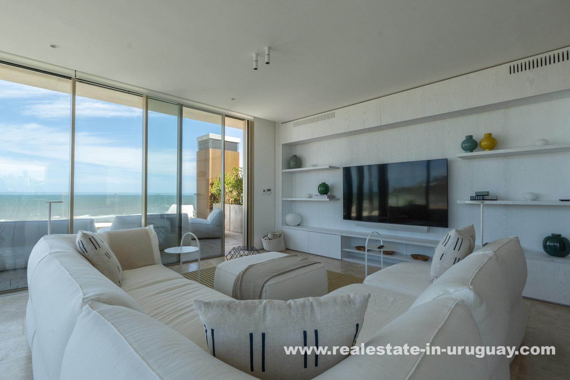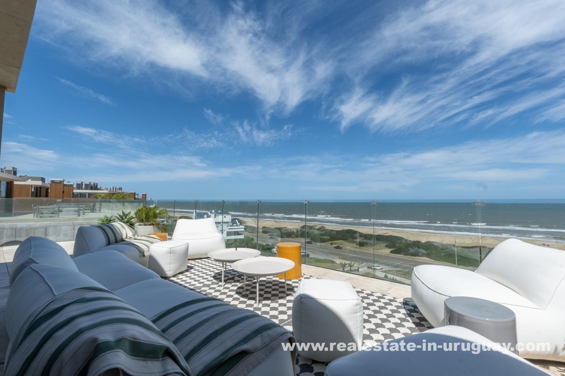 Experience unparalleled luxury and comfort in this breathtaking penthouse at Mon Brava, ideally situated at the exclusive Stop 22 of Playa Brava. This exceptional sixth-floor residence, designed by the renowned Estudio Obra Prima and architect Carolina Protto, offers a perfect blend of design, quality, and comfort. Spanning a total of 682 square meters, the penthouse boasts 334 square meters of interior space, 75 square meters of semi-covered space, and expansive terraces totaling 239 square meters. The property also includes a spacious 35-square-meter garage.