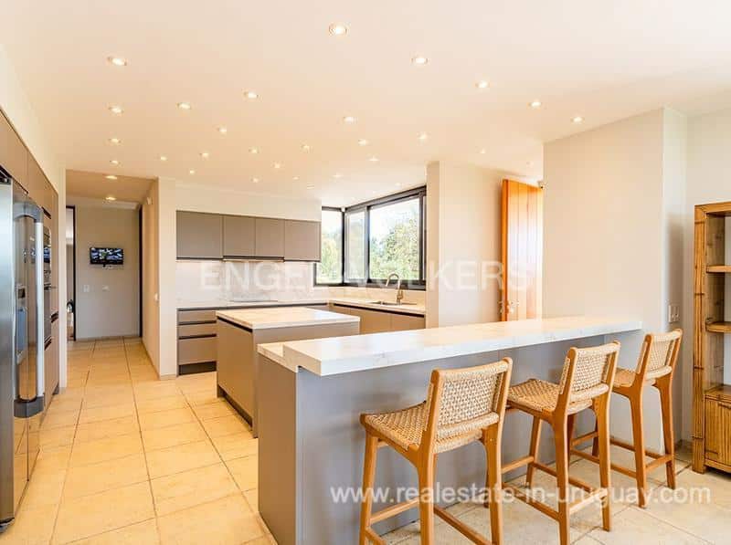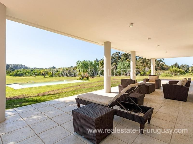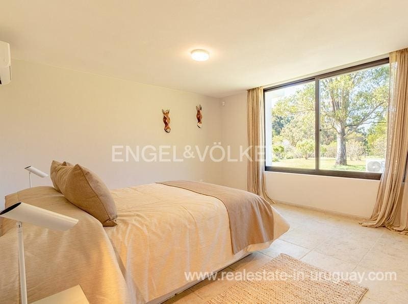 This excellent property underwent a complete renovation in 2023 and currently sports a new, modern style. With a total area of 678 m2 and a generous 5 hectares of land, it is undoubtedly a masterpiece. Located in the prestigious La Barra Golf Club, it boasts a unique location. Hole 11 ends right in front of the house and tee 12 starts right next to it. On the ground floor, we find a living room, which could be converted into a TV lounge, and a suite with a dressing room and en-suite bathroom. In addition, two large double bedrooms share a bathroom with a bathtub. Also on the ground floor, we find the living room with a wood-burning stove, an adjacent dining room, and a spacious kitchen fully equipped for culinary creations. To the rear of the property, there is a utility room, a guest bathroom, a garage with space for up to 3 cars, and a staff bedroom with its en-suite bathroom, which could also be used as a guest room. Outside, there is a wonderful swimming pool and a large terrace, plus another dining room with a barbecue/grill, the ideal place to enjoy the sun. Modern double glazing provides efficient insulation and a quiet atmosphere inside, and for colder days, the property enjoys underfloor heating. The extensive grounds offer plenty of outdoor space and a green oasis that promises tranquility. This property is a perfect example of contemporary and comfortable housing. The excellent renovation, unique location and high-quality features make this property an incredible opportunity. If you are looking for an elegant home that combines luxury and a modern lifestyle, we recommend scheduling a visit to see this exceptional property.