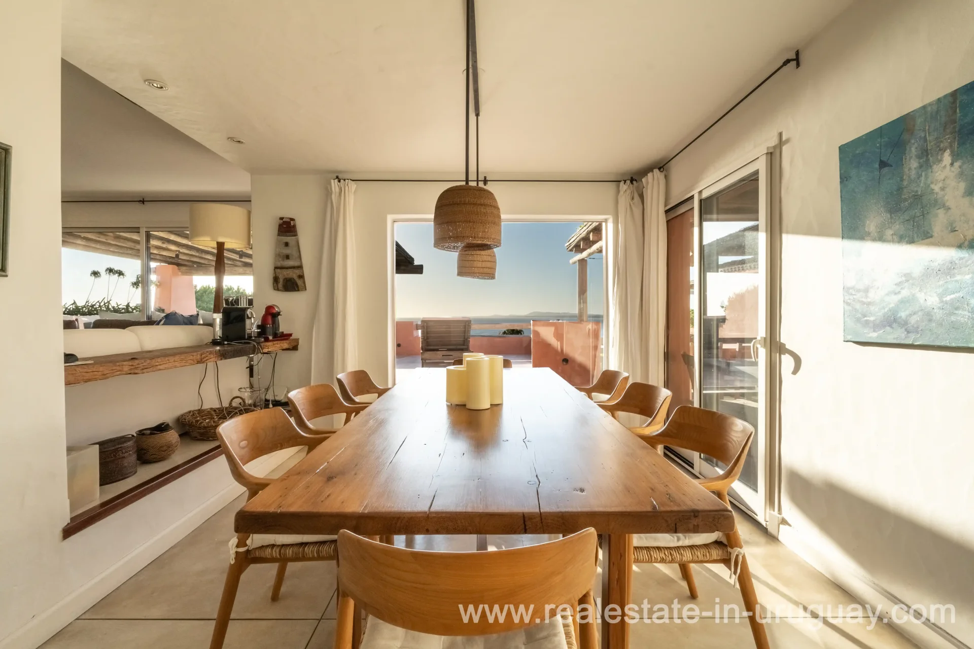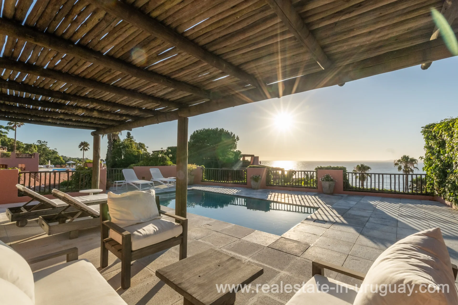 Located in the prestigious Marina del Este complex, this property is one of the few units featuring a private pool. It offers increased space, large terraces on every level, and open sea views, along with some of the area’s best sunsets. The unit spans two floors, each with a generous terrace, plus a basement with ample storage, ensuring functionality and comfort. The upper floor includes a spacious living room, bar, and dining area with direct access to a large sea-facing terrace, perfect for enjoying sunsets. This outdoor space includes a covered barbecue area and dining space. This level also has a guest bathroom, a well-defined kitchen, a guest bedroom with an en-suite bath, and a service area accessible via an independent patio from the kitchen. The lower floor features three en-suite bedrooms, each with direct access to their large terrace, deck, and pool, offering a private, relaxing environment with stunning views. Additional features include ample storage closets in hallways, an extra room in the basement, five closed parking spaces with a storage room, and two covered outdoor parking spaces. Marina del Este provides premium amenities such as two community pools, a fully equipped gym, spa, tennis court, children’s play area, security, and cleaning services.