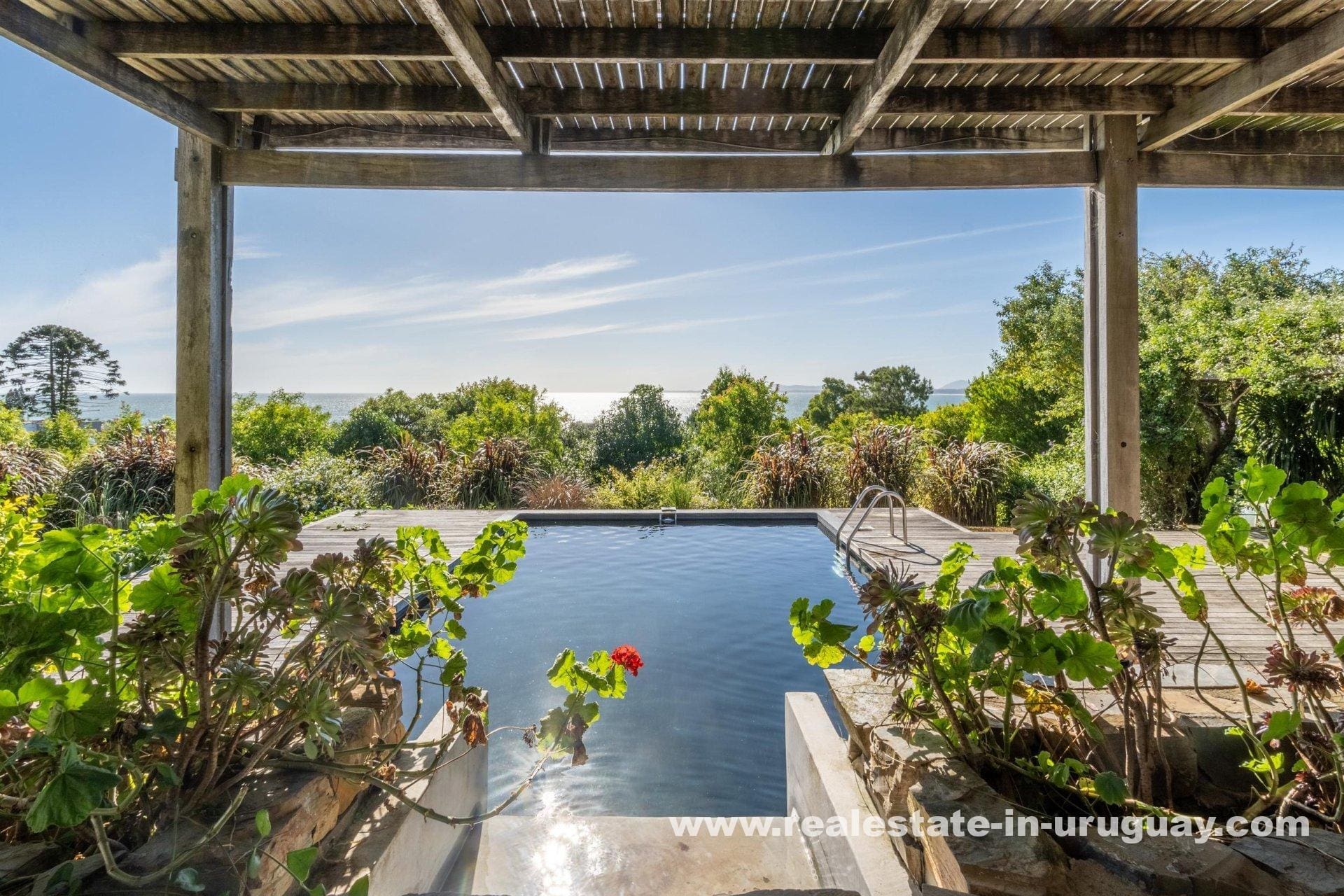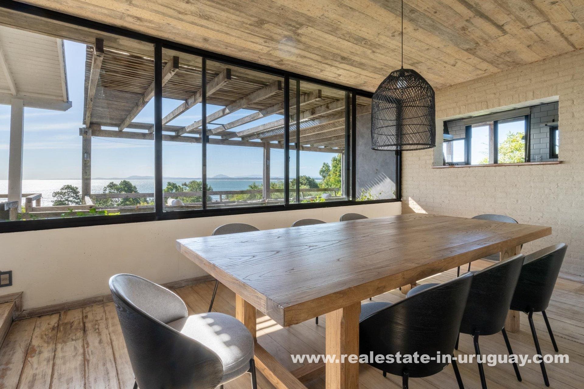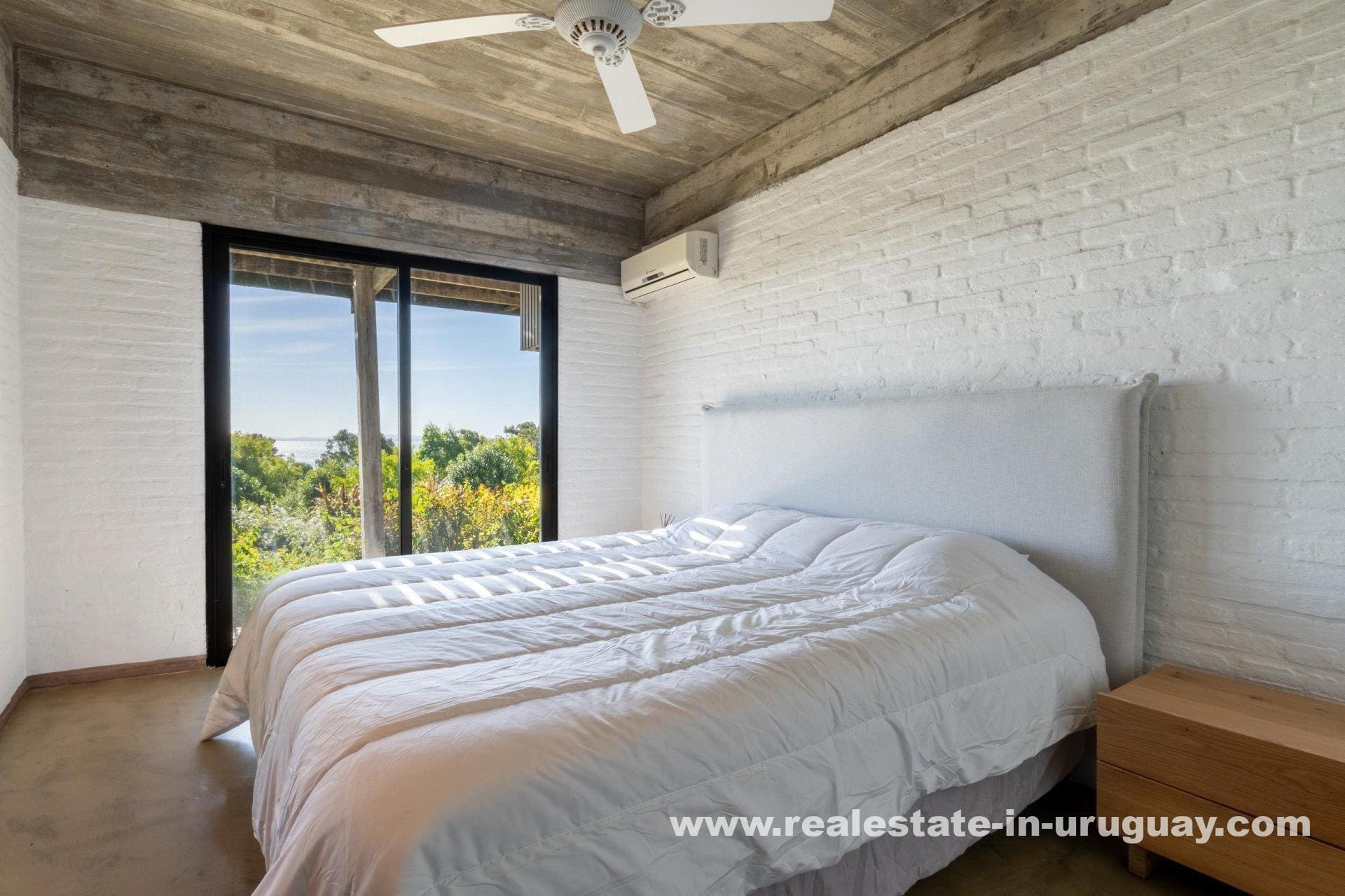 Explore a sophisticated haven in Punta Ballena, presenting breathtaking sea views and unparalleled luxury. This magnificent property features a spacious living/dining area complete with a wood-burning stove and a contemporary, fully-equipped kitchen. On the ground floor, indulge in two comfortable bedrooms each featuring en-suite bathrooms, while the exquisite master suite occupies the mezzanine, offering en-suite facilities and direct access to a versatile room presently serving as an office, yet equally adaptable as a fourth en-suite bedroom. Relish outdoor living with expansive exterior decks accessible from all rooms, culminating in an upper deck with a large lounge area that boasts stunning coastal vistas.