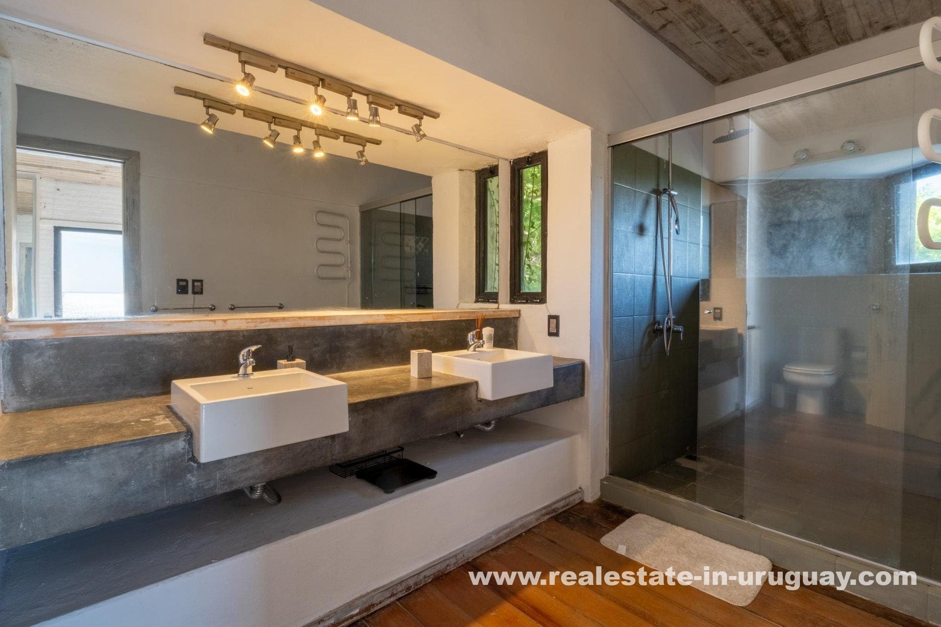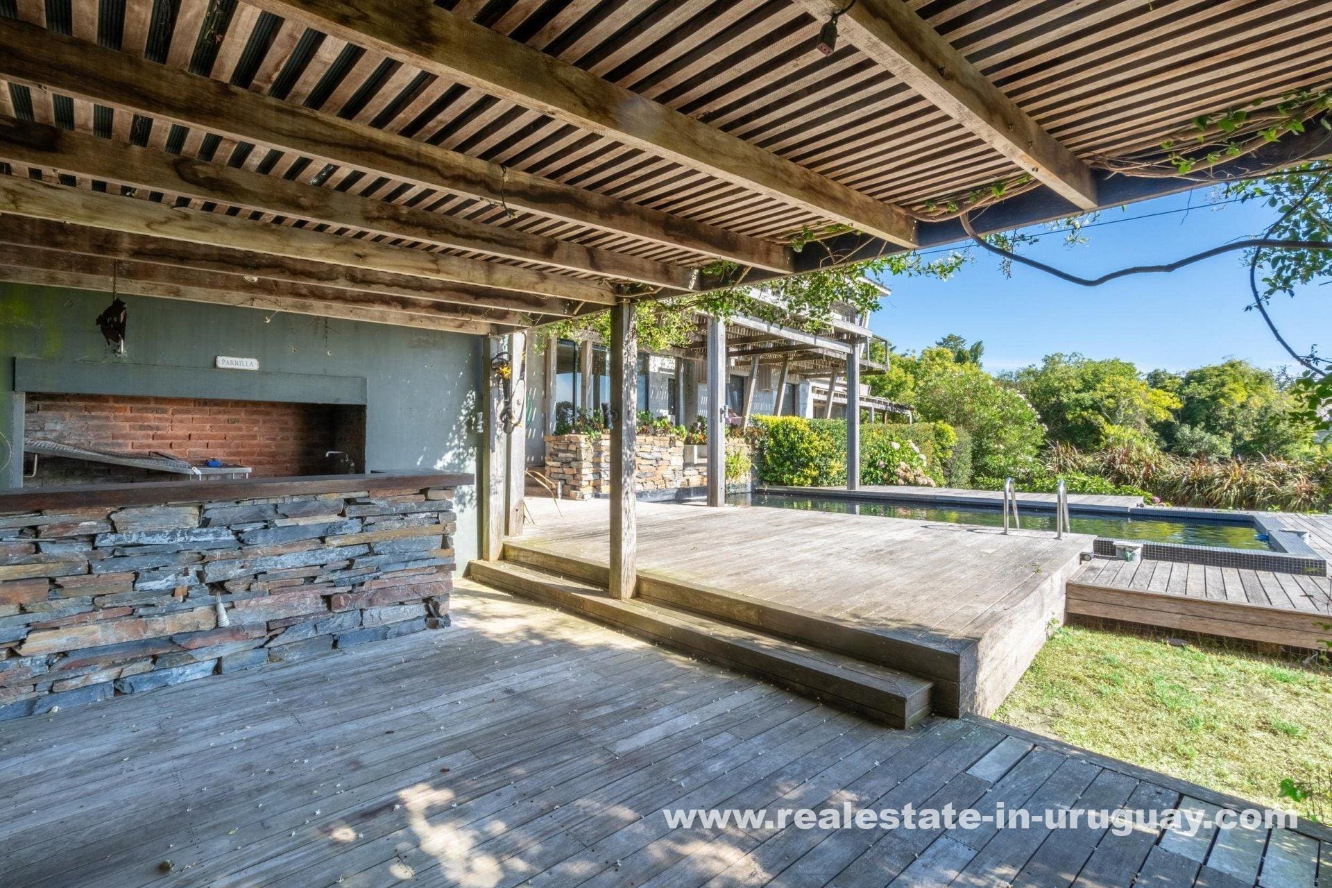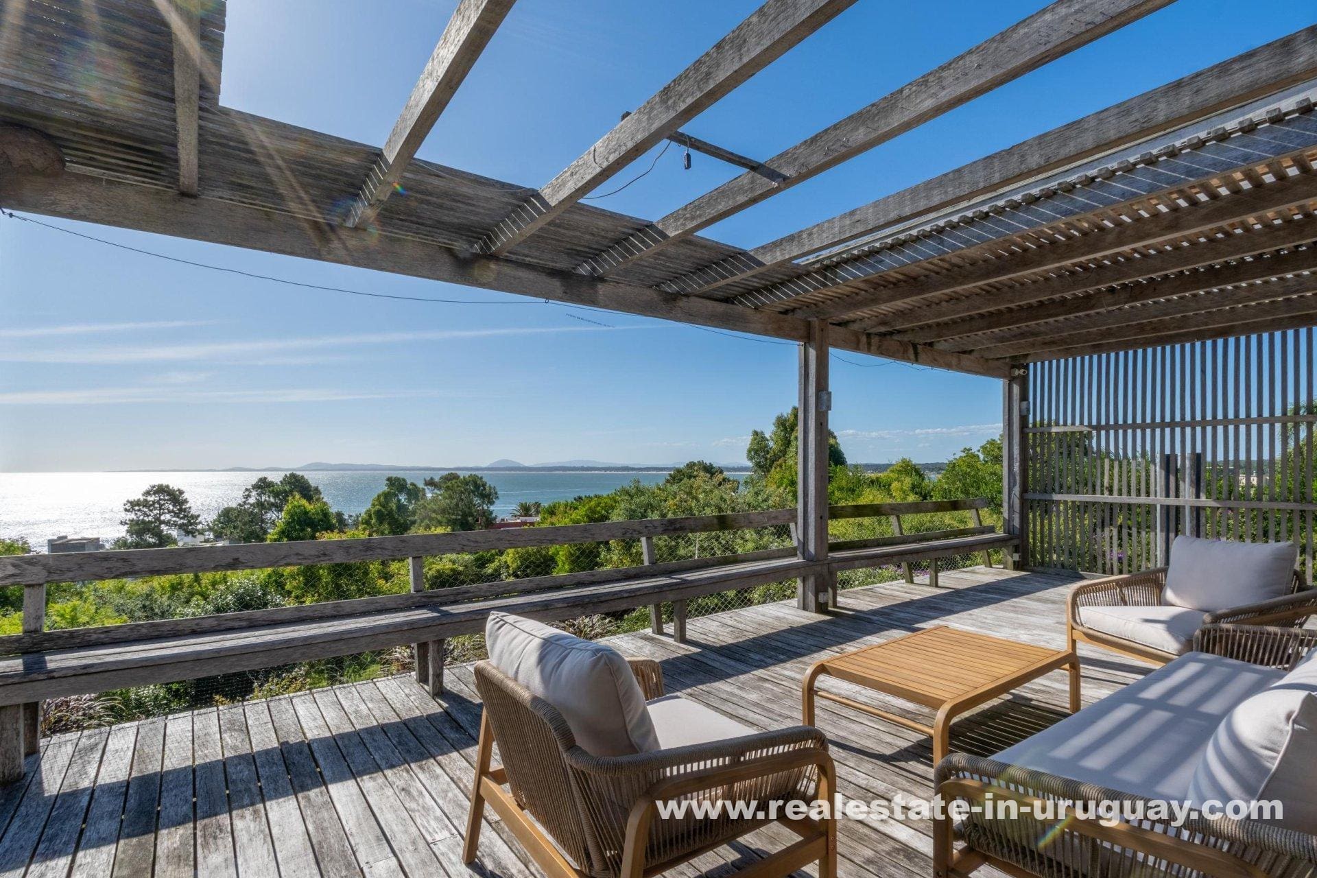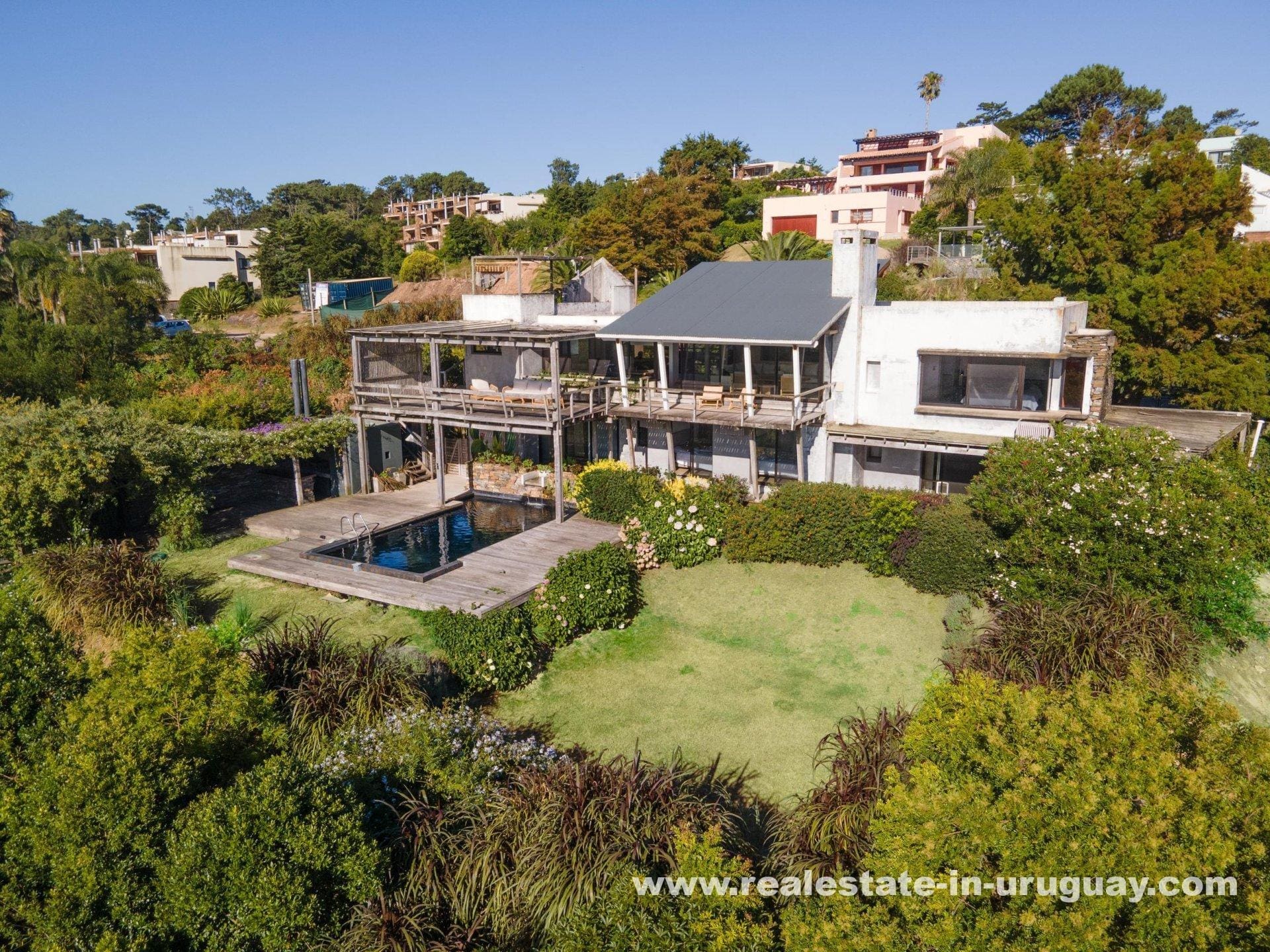Explore a sophisticated haven in Punta Ballena, presenting breathtaking sea views and unparalleled luxury. This magnificent property features a spacious living/dining area complete with a wood-burning stove and a contemporary, fully-equipped kitchen. On the ground floor, indulge in two comfortable bedrooms each featuring en-suite bathrooms, while the exquisite master suite occupies the mezzanine, offering en-suite facilities and direct access to a versatile room presently serving as an office, yet equally adaptable as a fourth en-suite bedroom. Relish outdoor living with expansive exterior decks accessible from all rooms, culminating in an upper deck with a large lounge area that boasts stunning coastal vistas.